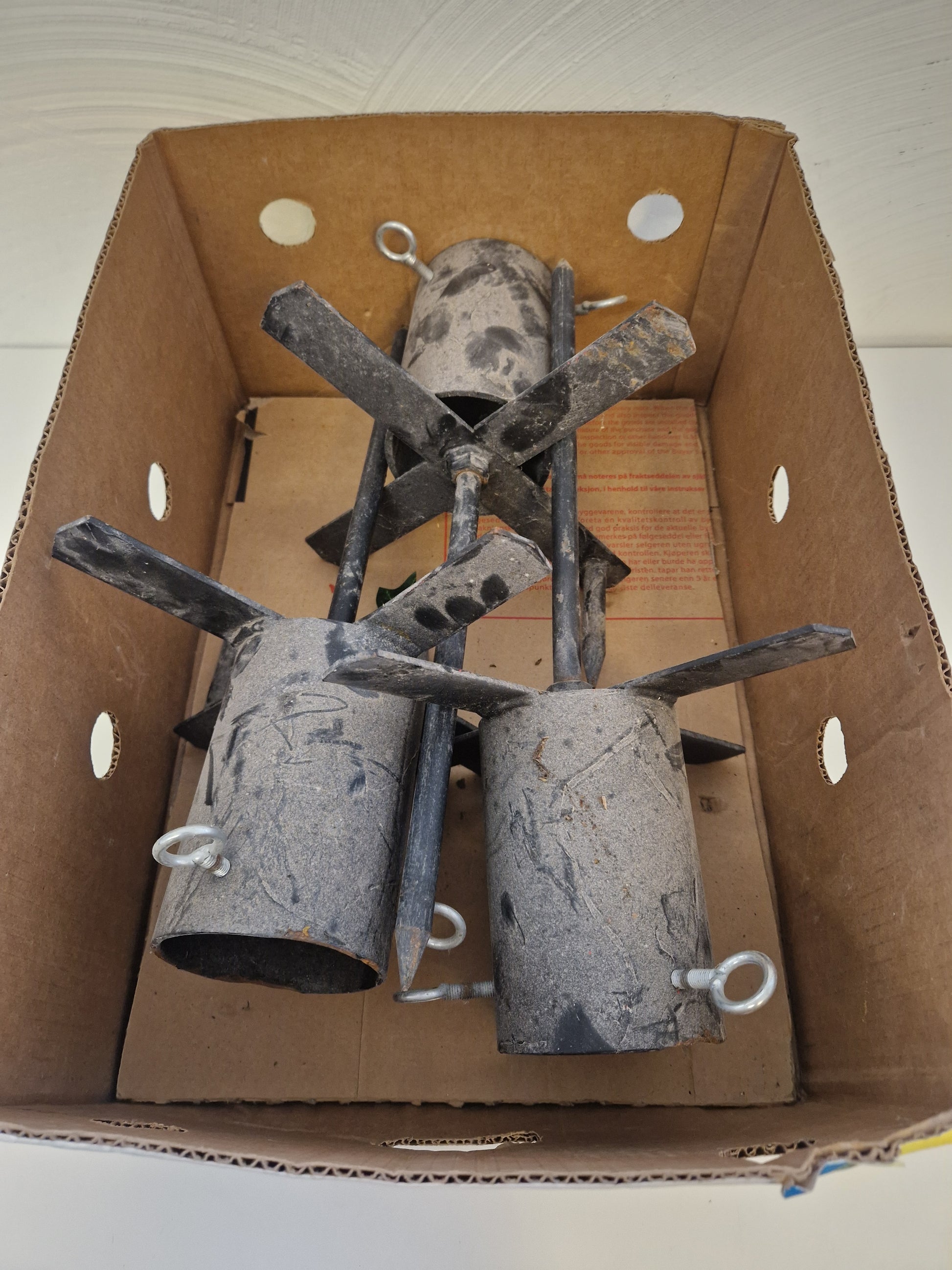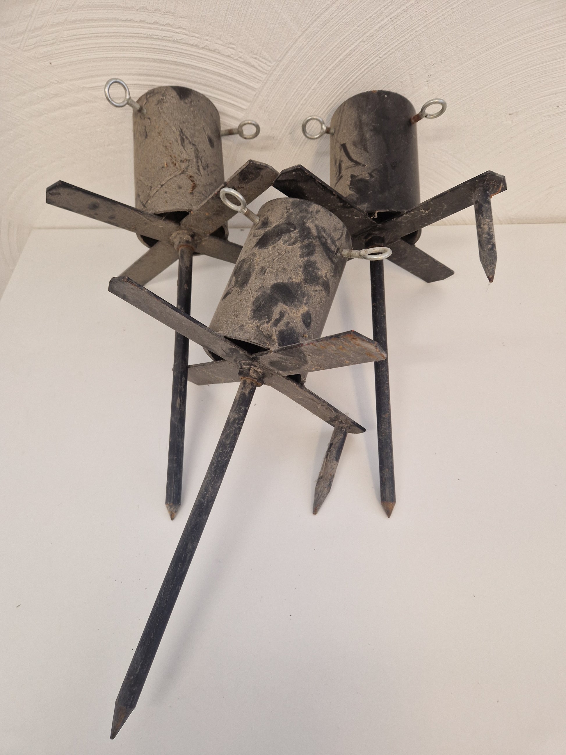 3st julgransfötter i svartmålat smide, med drygt 30cm långt "spett" att trycka ner i marken.