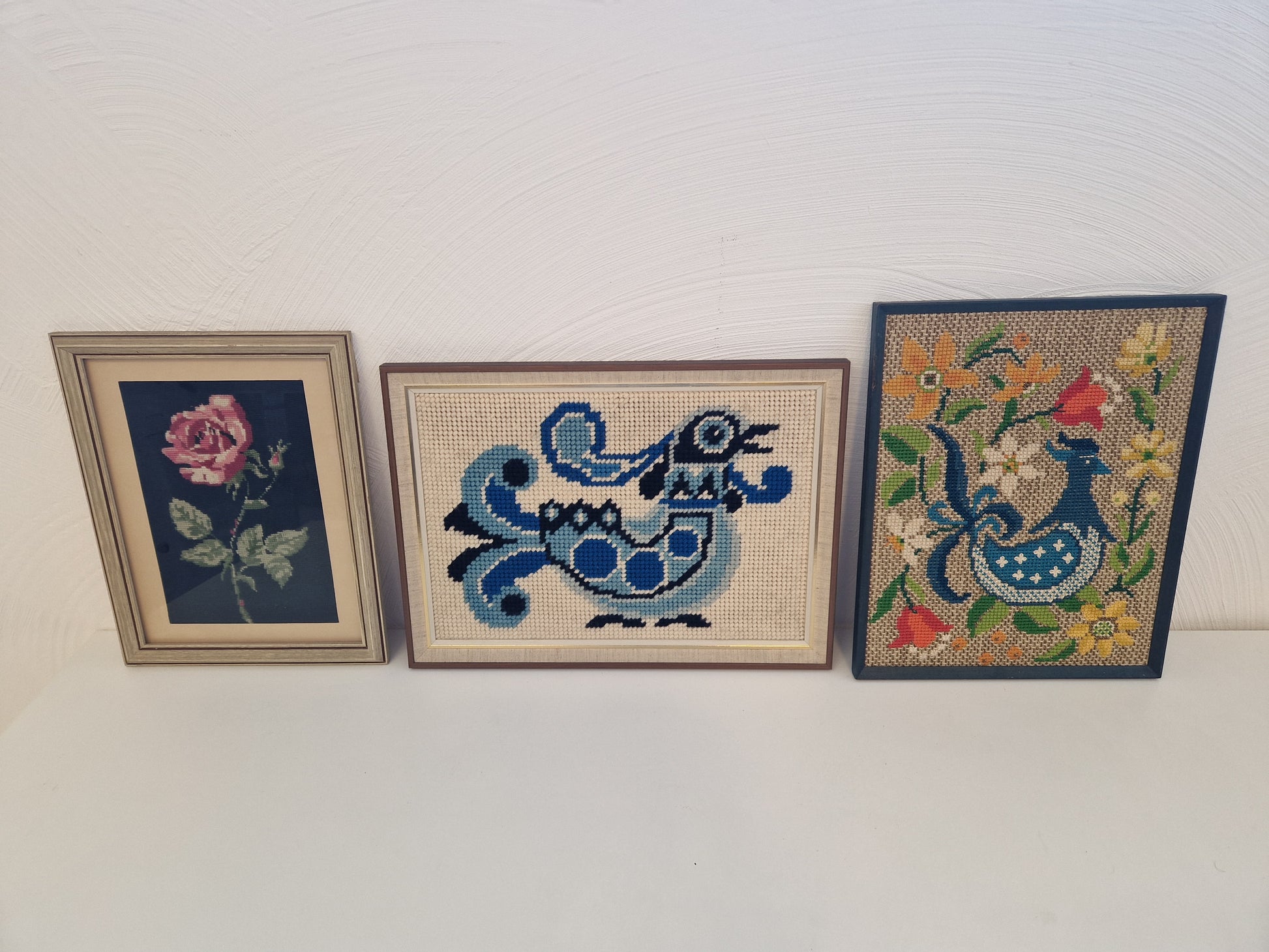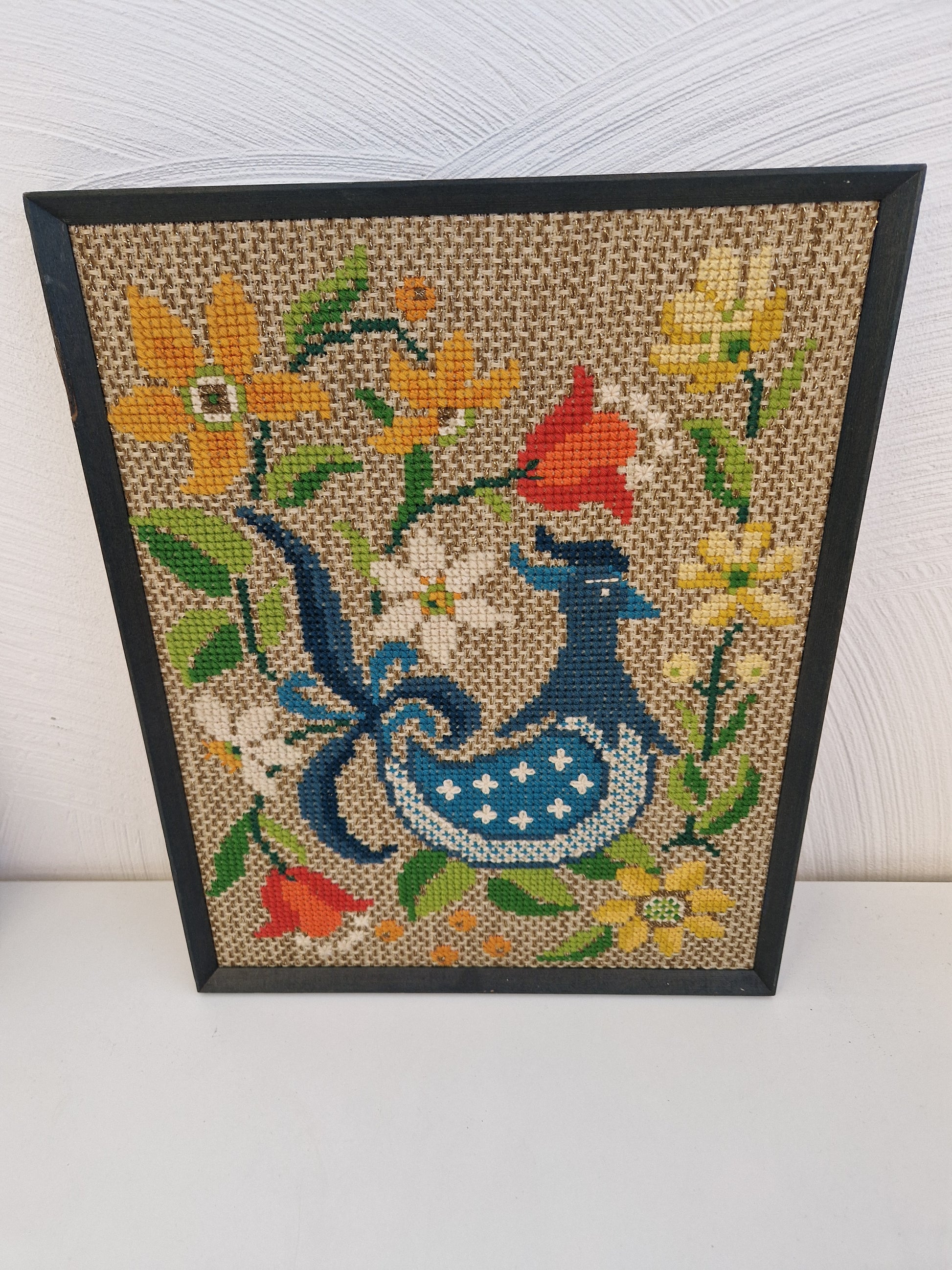 Bild 4, mått 32X40cm, fågel- och blommotiv, sign. saknas.