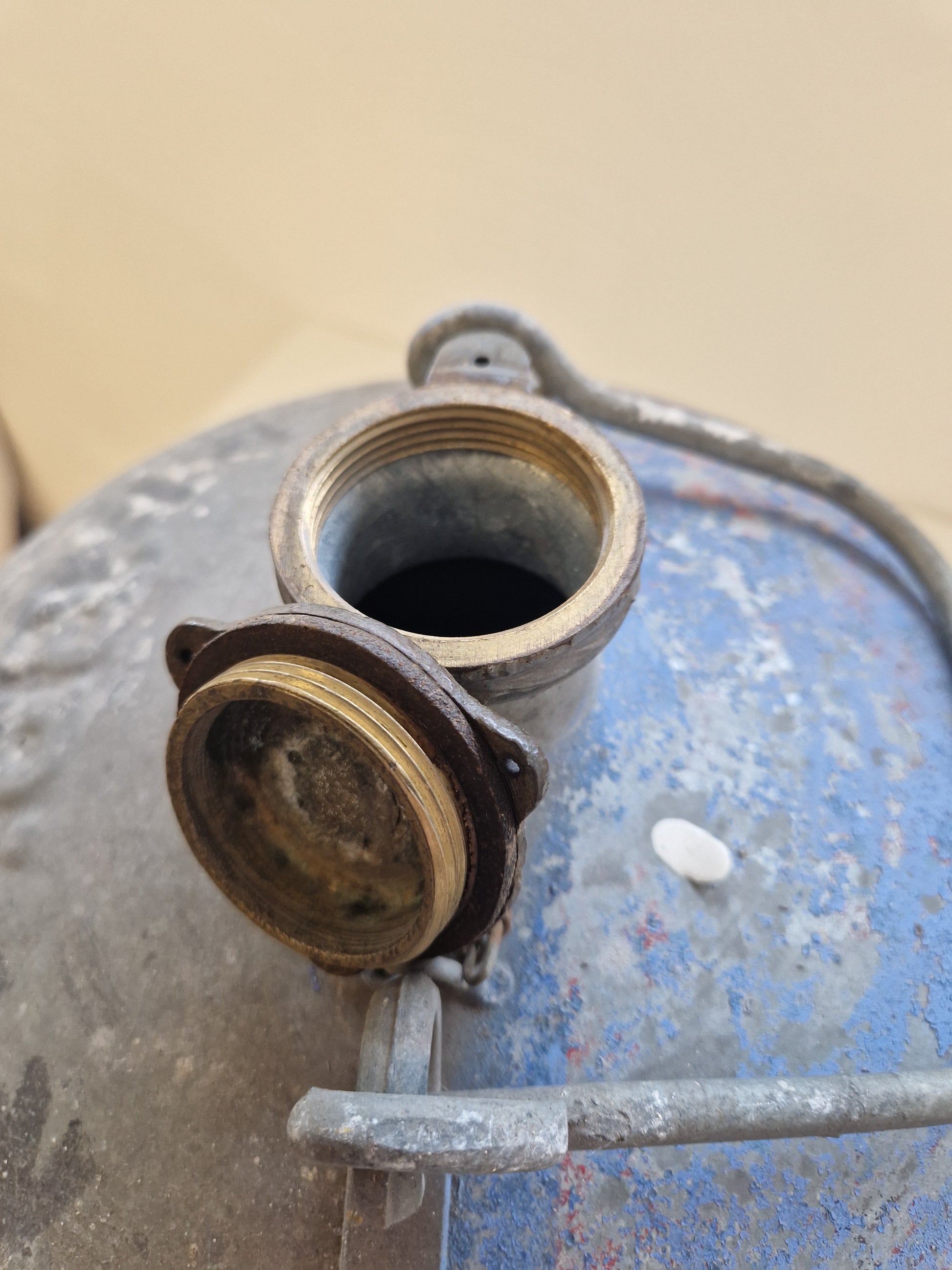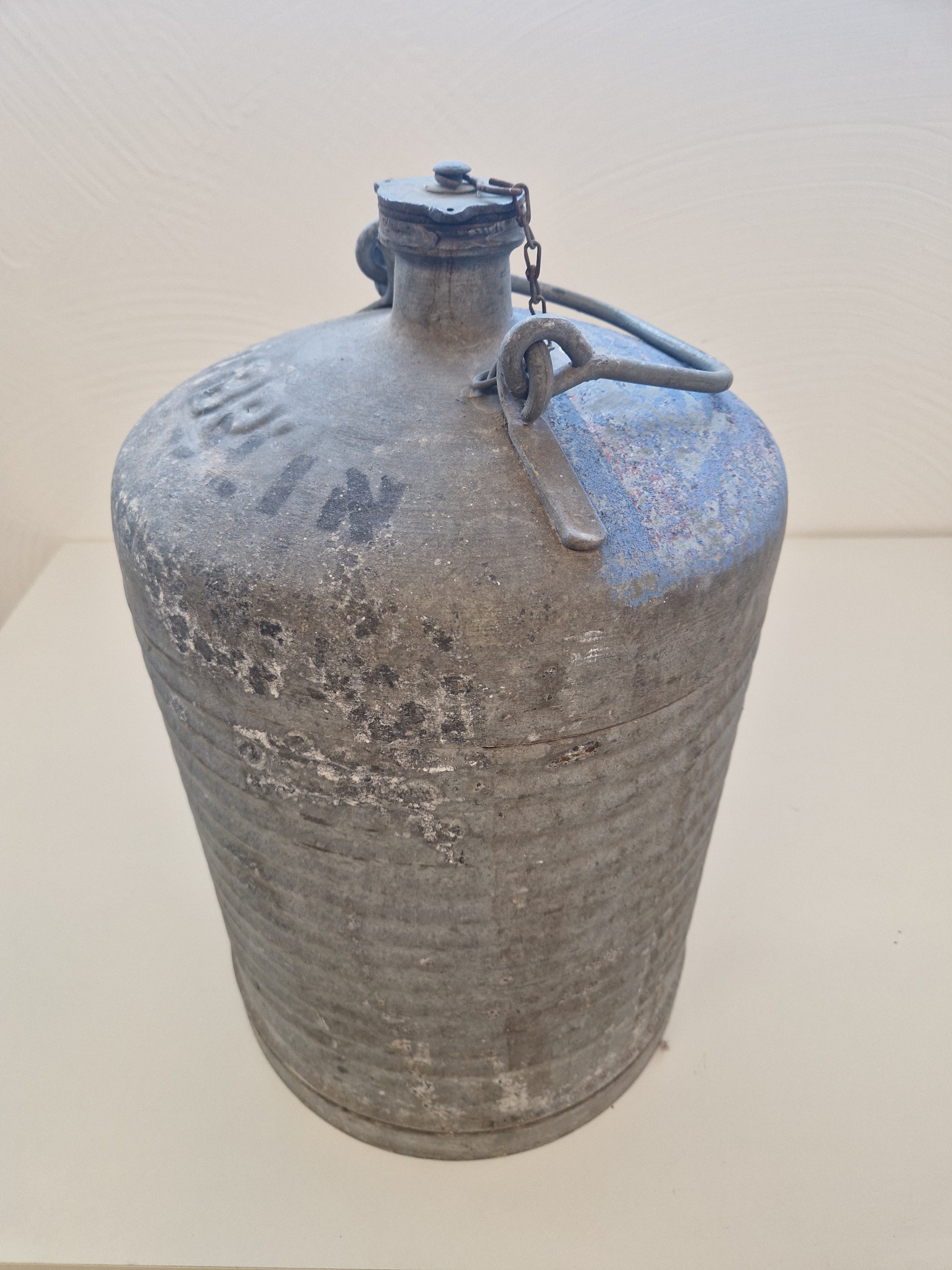 Bränsledunk i förzinkad plåt, ca 48cm hög med diam. på 30cm. Rymmer ca 20 - 25 liter.