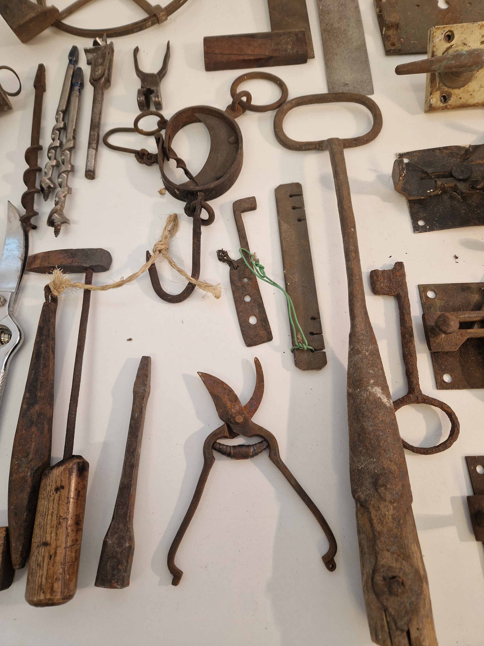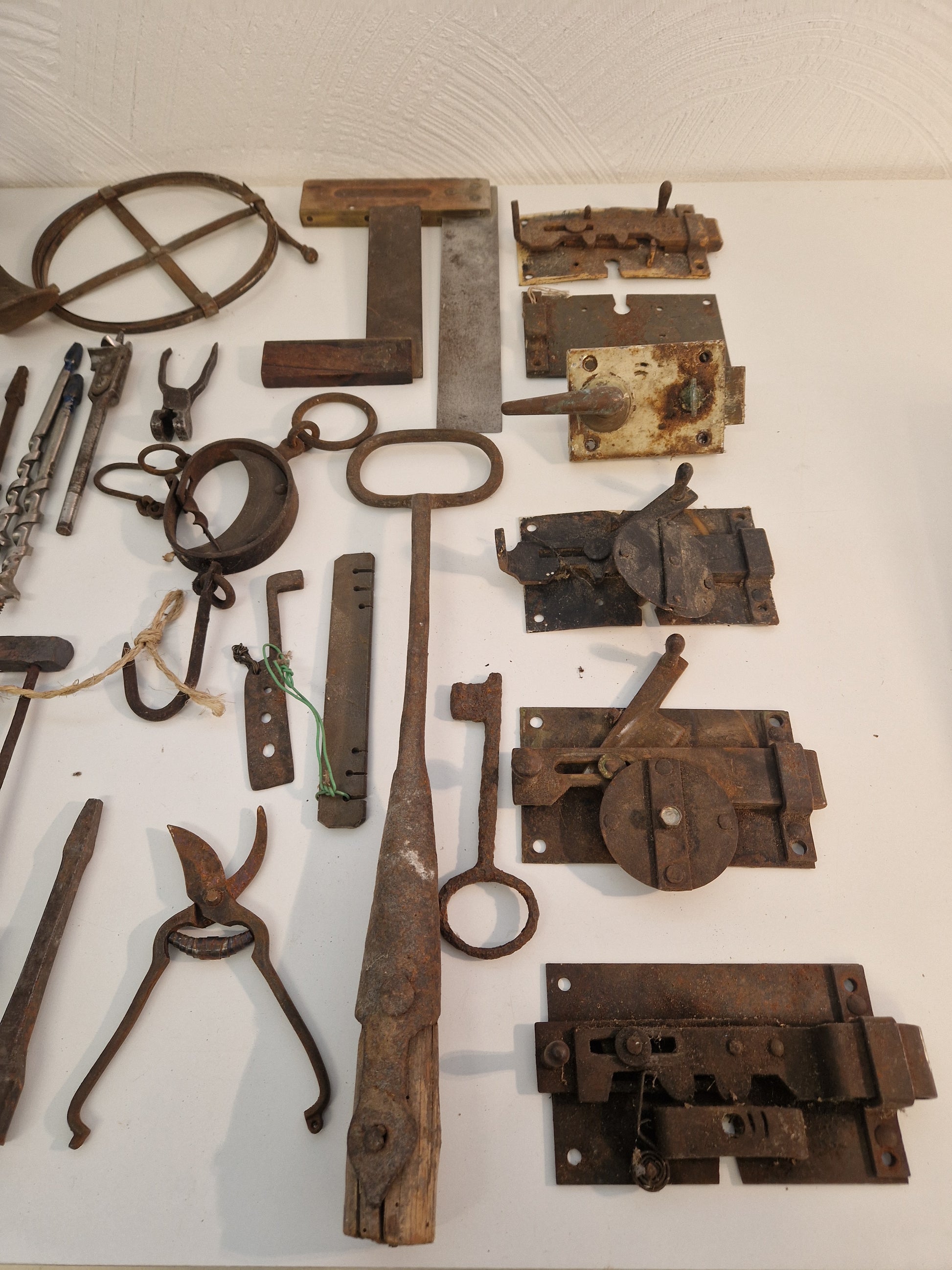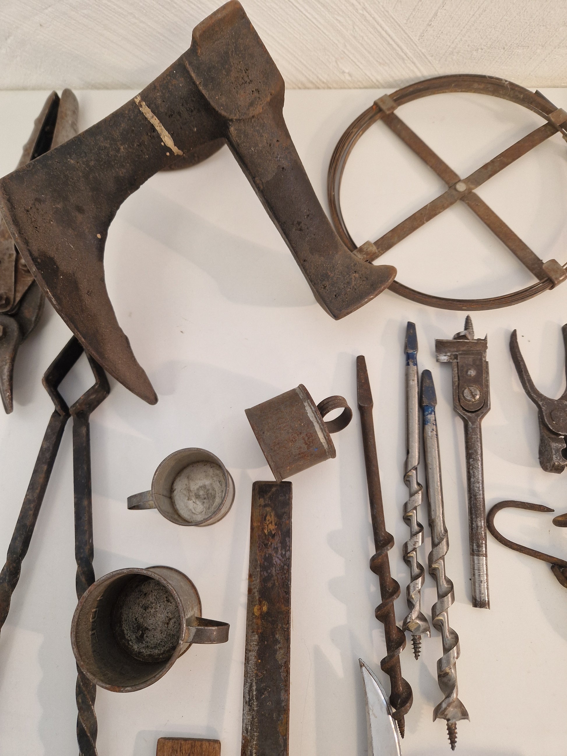 Innehåller bl.a. äldre vinkelhakar, smidestång, lästjärn (skomakarjärn), fågelsaxar, låskistor, våg, lödkolv, träborr mm.