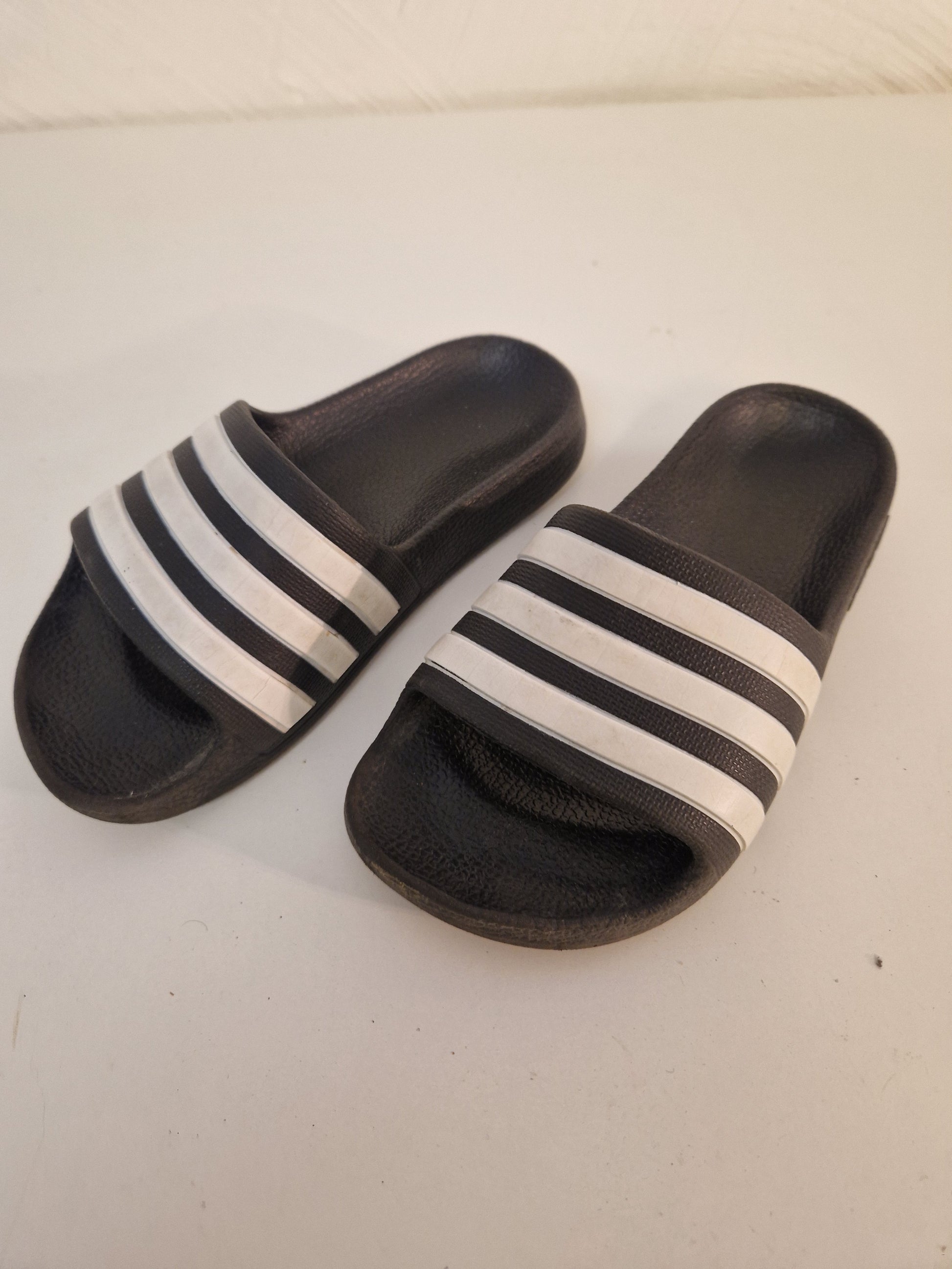 Ett par svartvita badskor från ADIDAS i stl. 28 som är i bra skick.