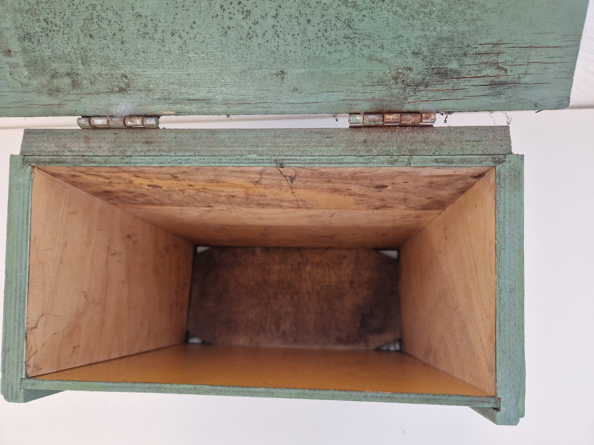 Brevlåda i bemålat trä med motiv
