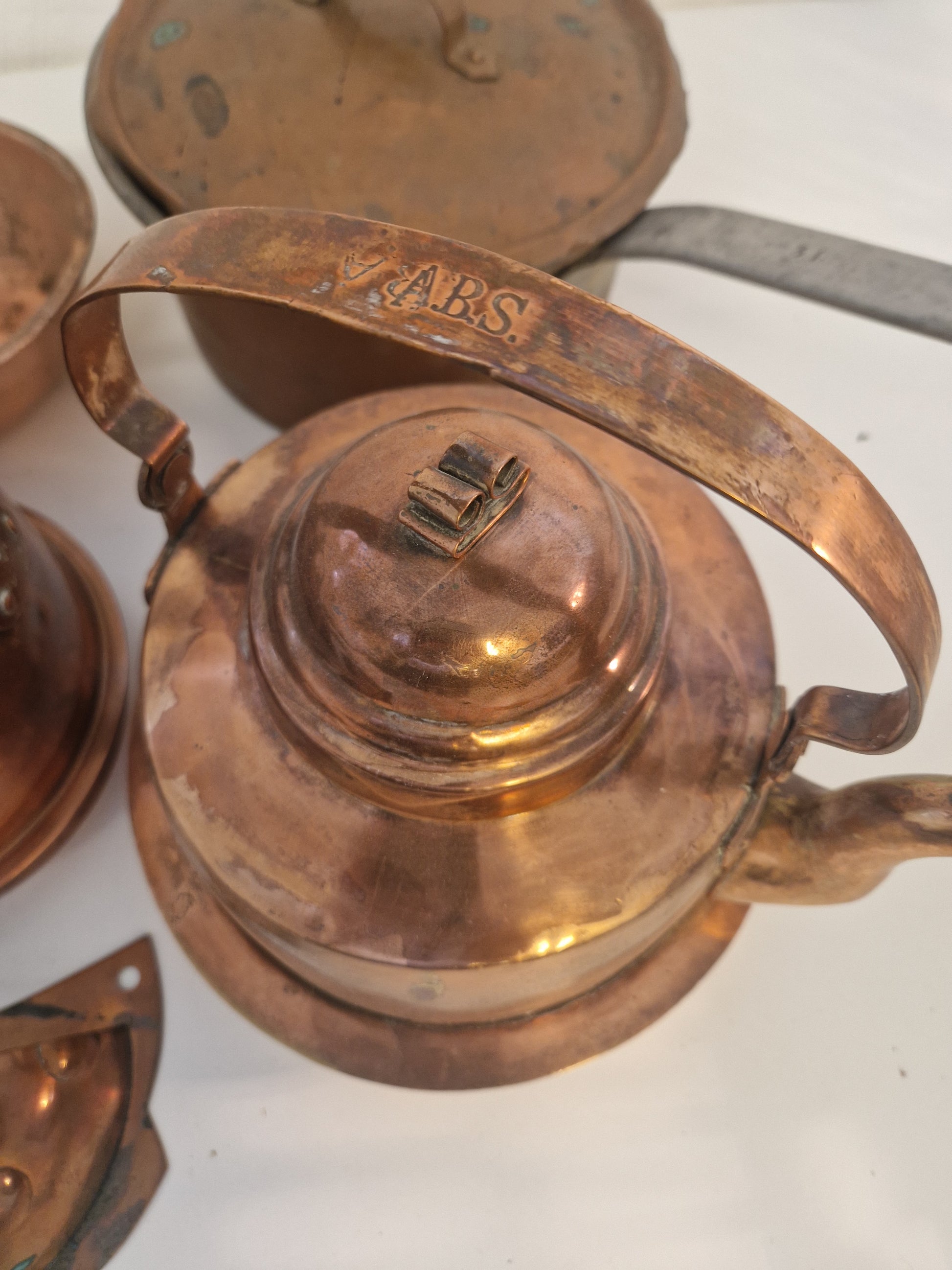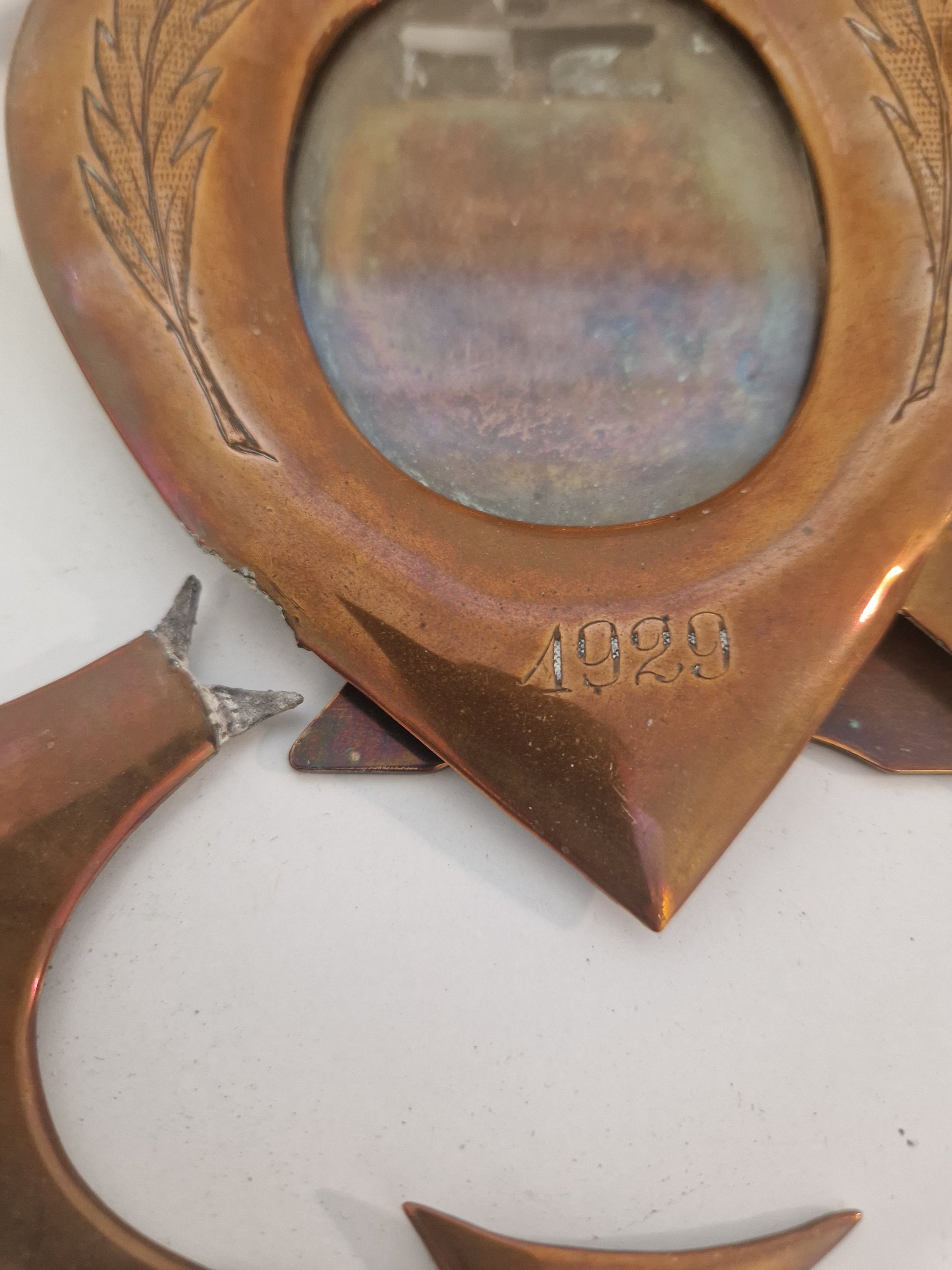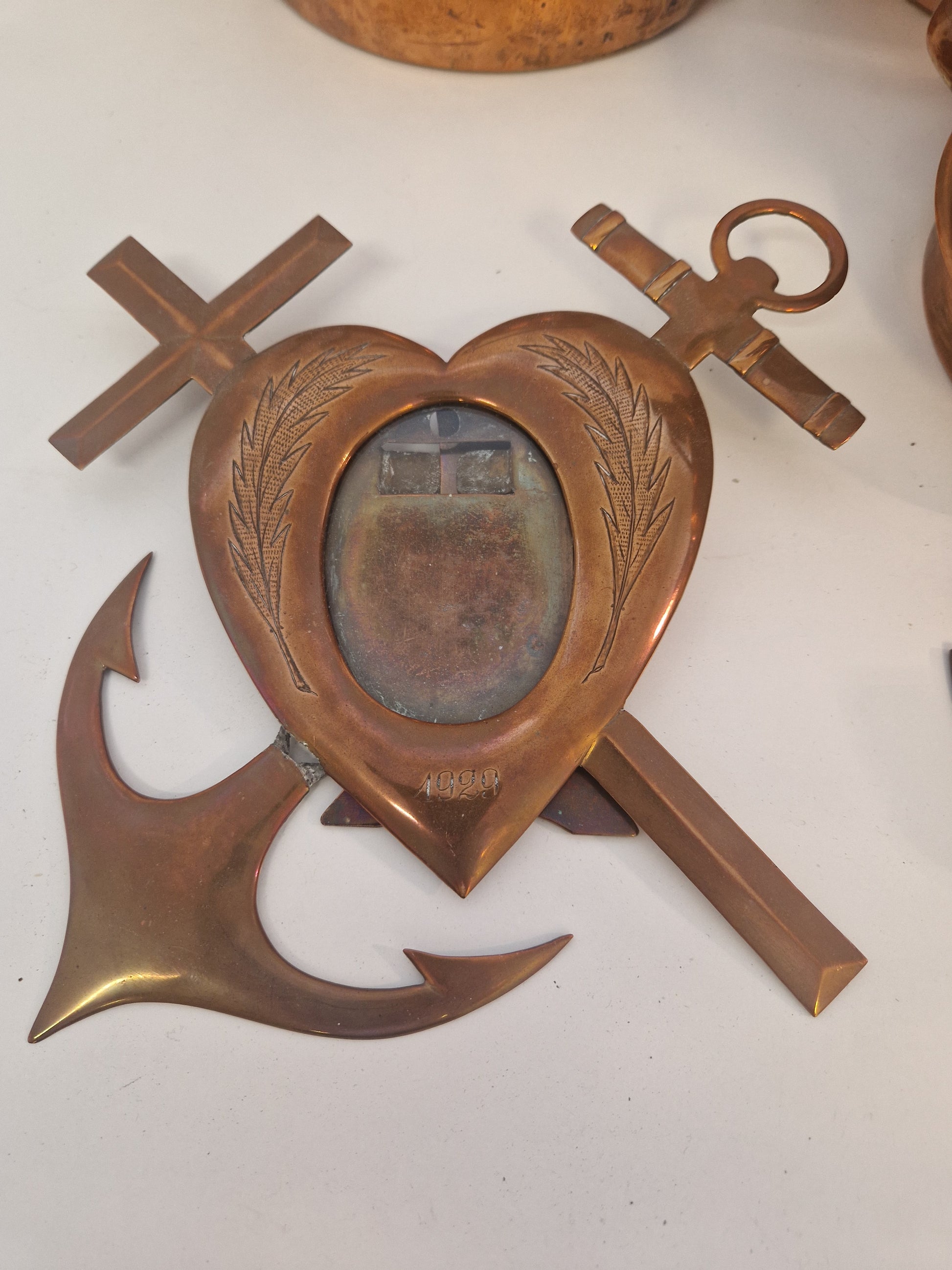 3st kopparkannor varav en märkt A.B.S, 1st gryta märkt med 31, 1stskål, 1st fotoram med skada på ankaret samt 1st väggförvaring, även den märkt med 1929.