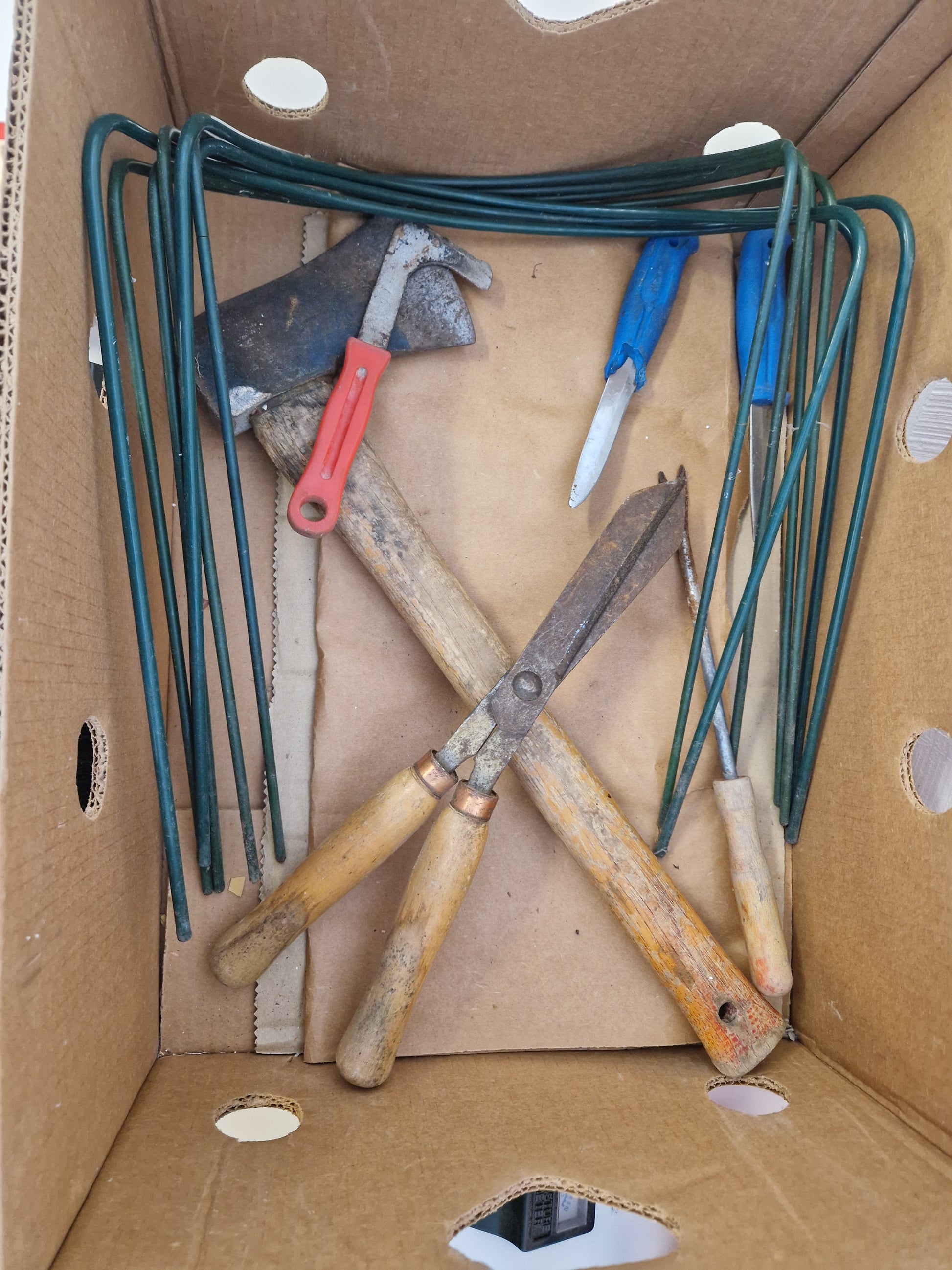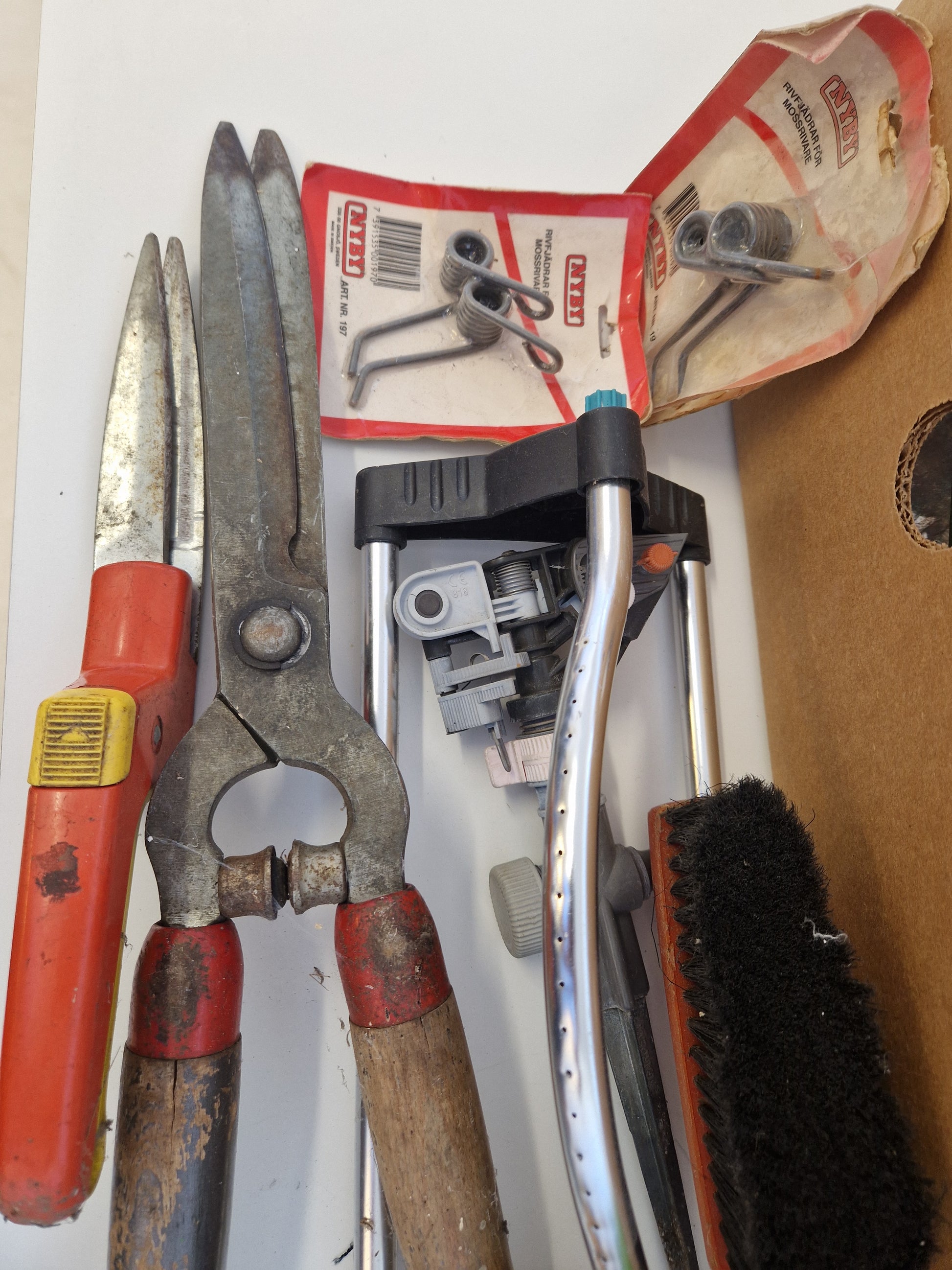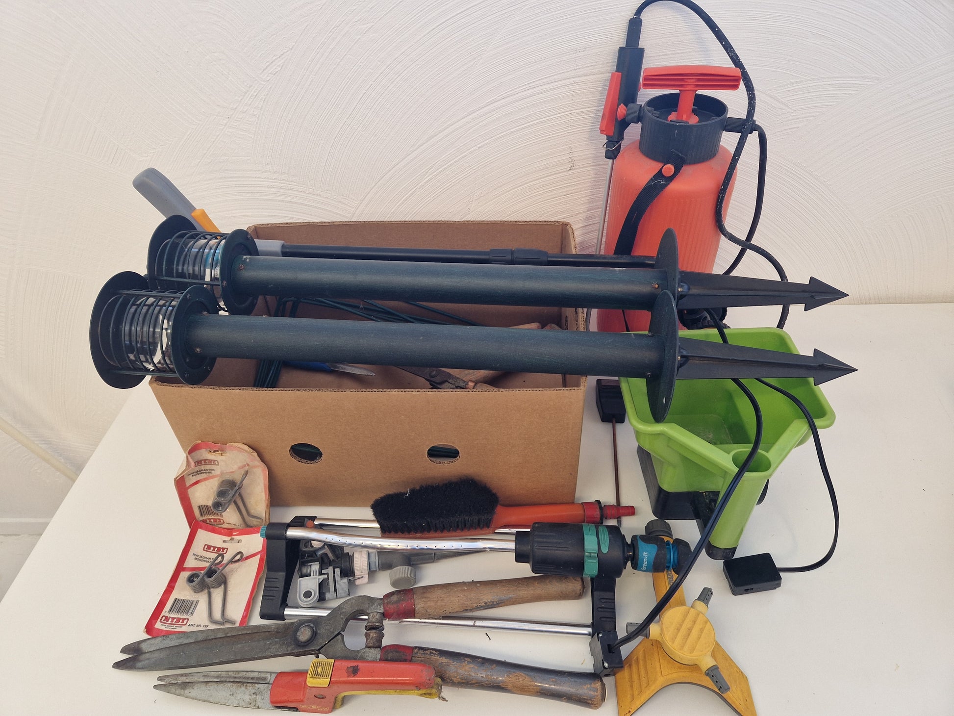 Tryckspruta, gödningsspridare, vattenspridare, häcksax, växtskydd, vattenslang 20 + 16 meter, fuktmätare mm.