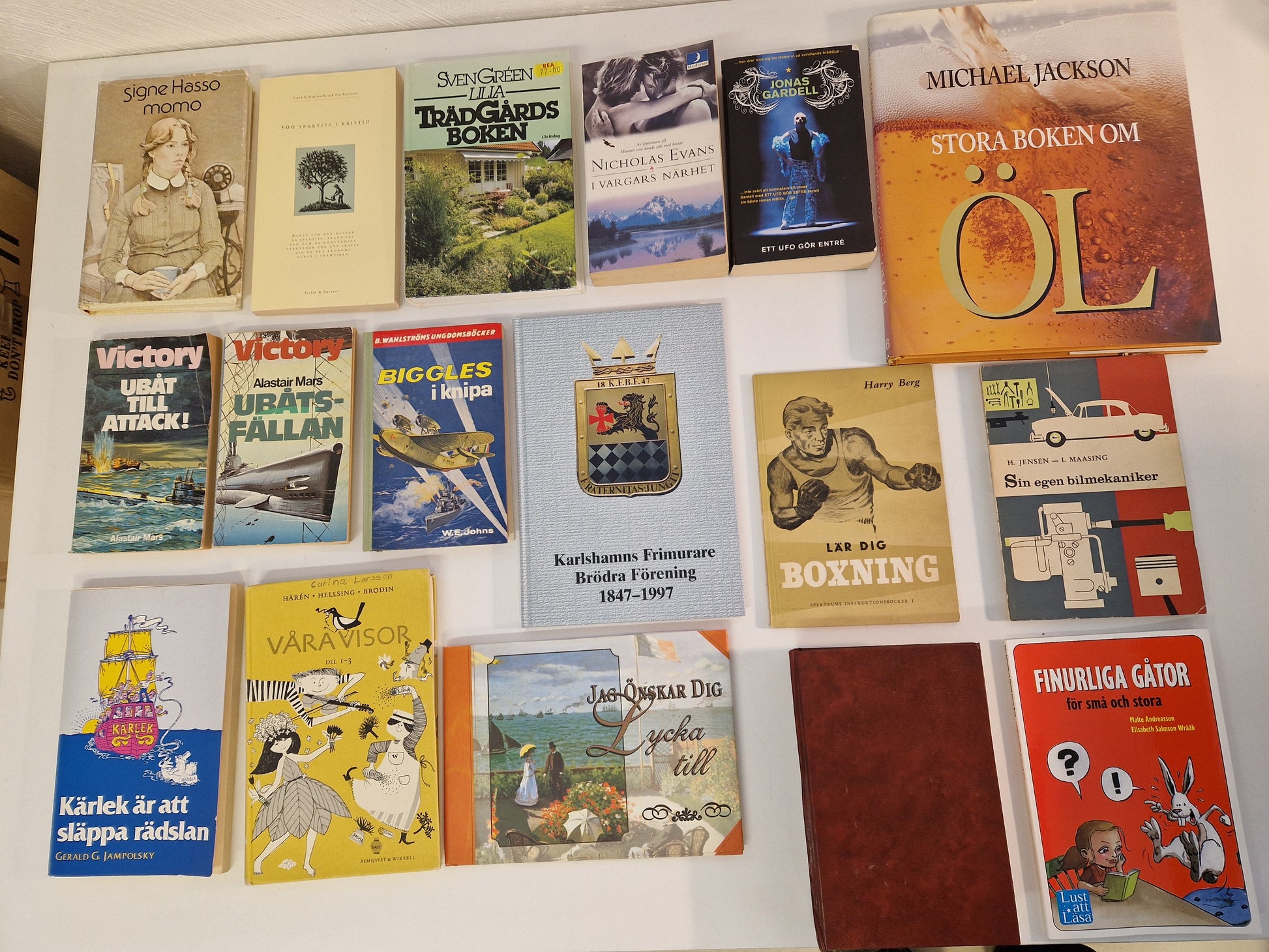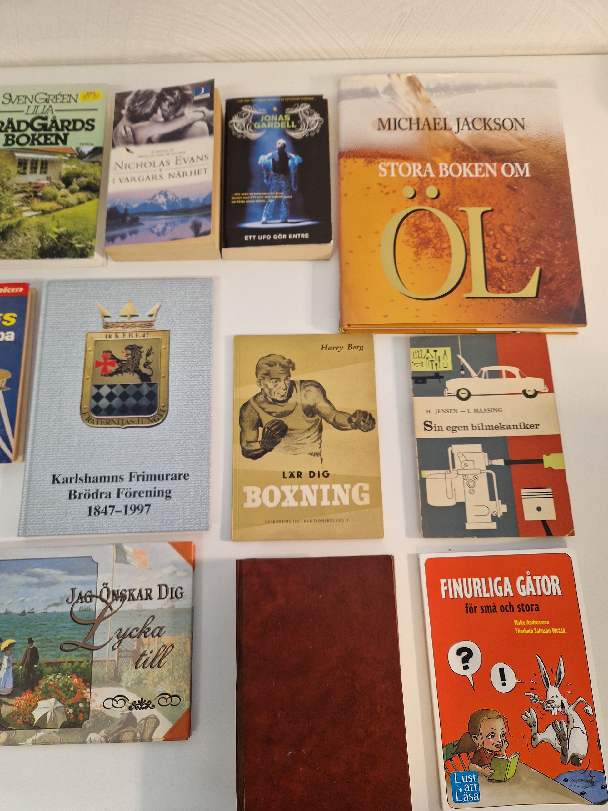 Böcker i olika kategorier, bl.a. Stora boken om öl🍻
