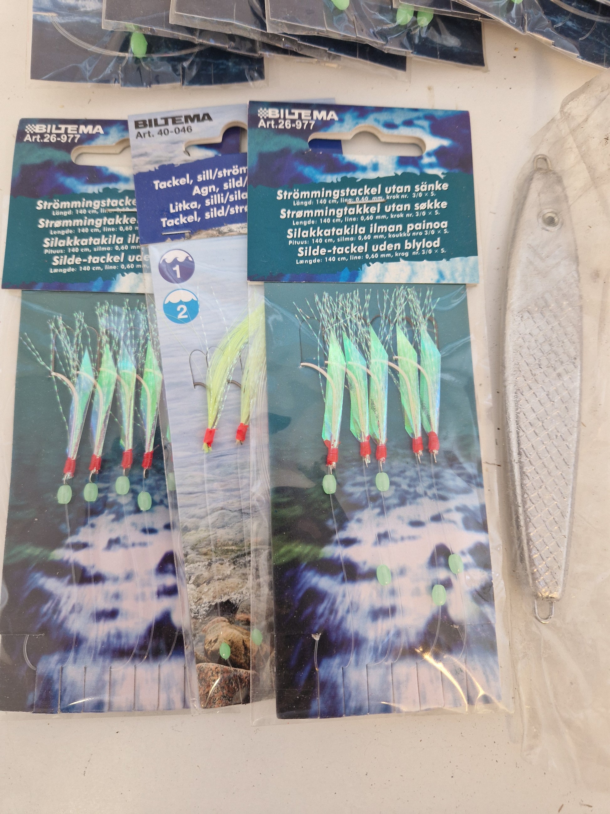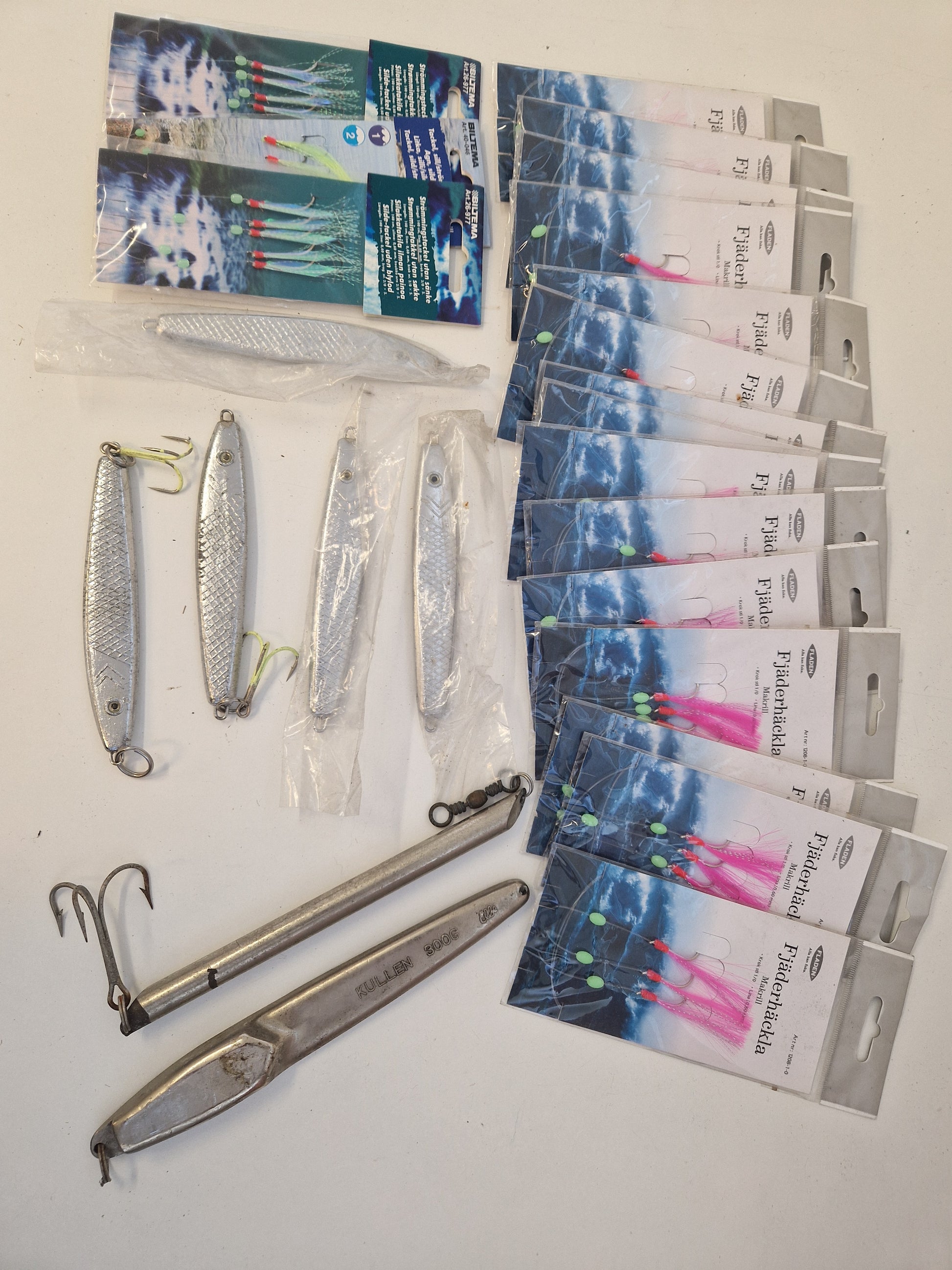 Innehåller 15st fjäderhäckla för makrill, 3st tackel för sill/strömming samt 7st pilkar för torsk.