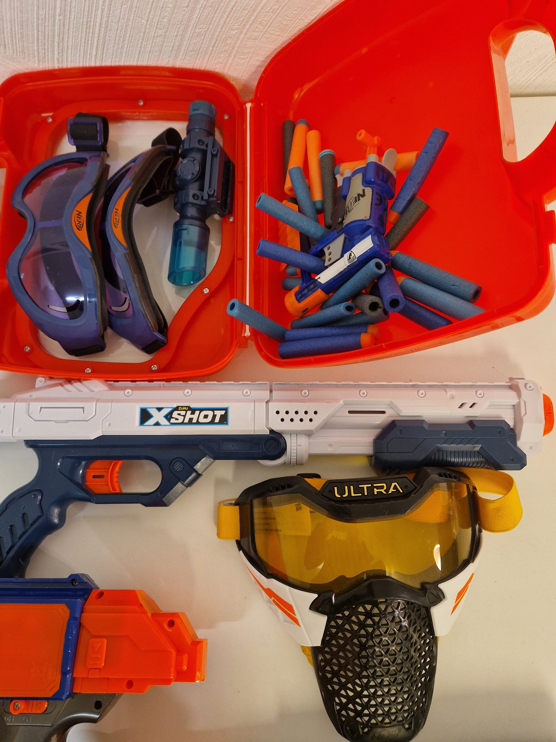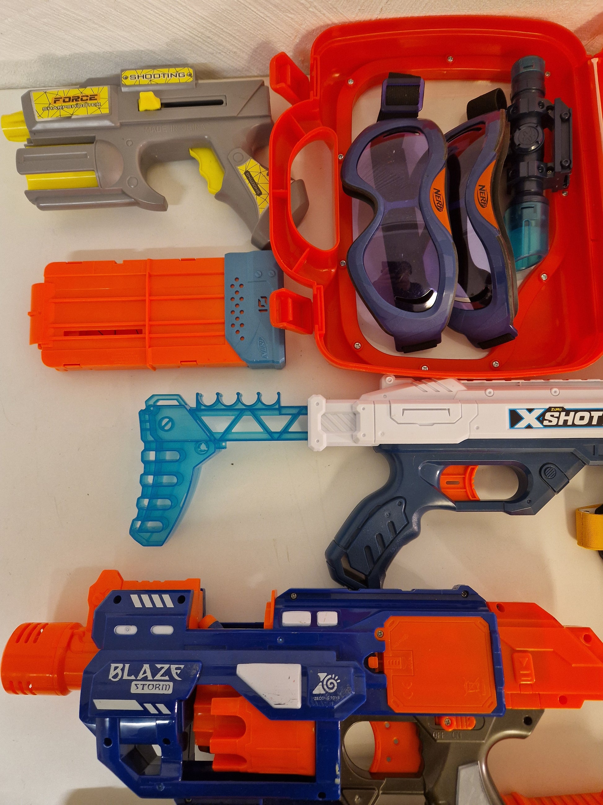 Diverse leksaksvapen, skyddsmasker och ammunition enligt bilder.