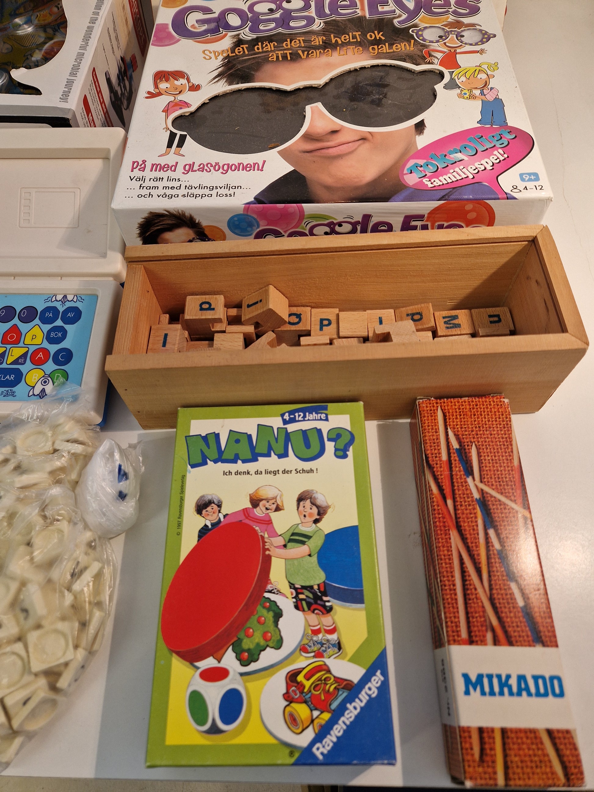 Flipperspel, Yatzy, Luffarschack, Kinaschack, Plockepinn, Albins memorera, bokstavsspel, Bajsspelet, Bokstavsjakt mm.