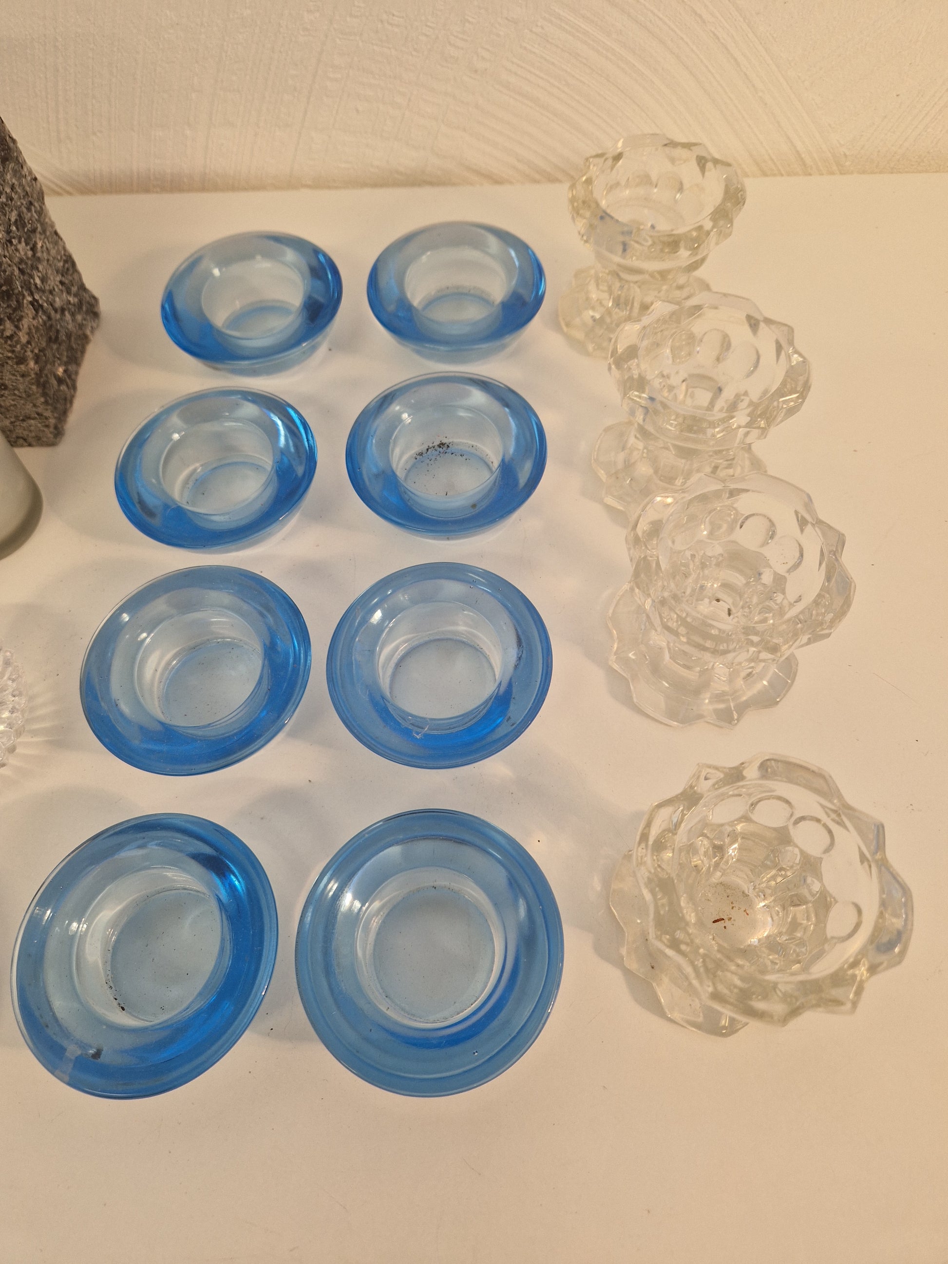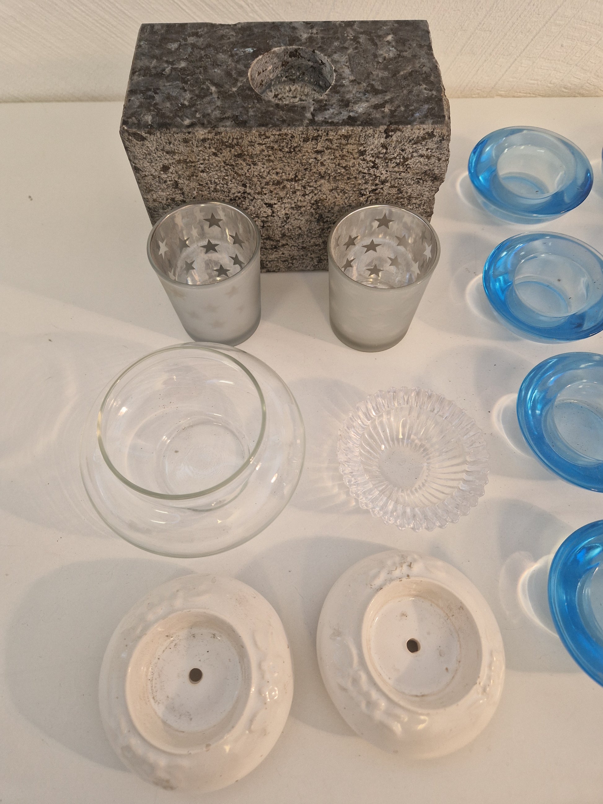 19st hållare för värmeljus, varav en i delvis slipad sten.