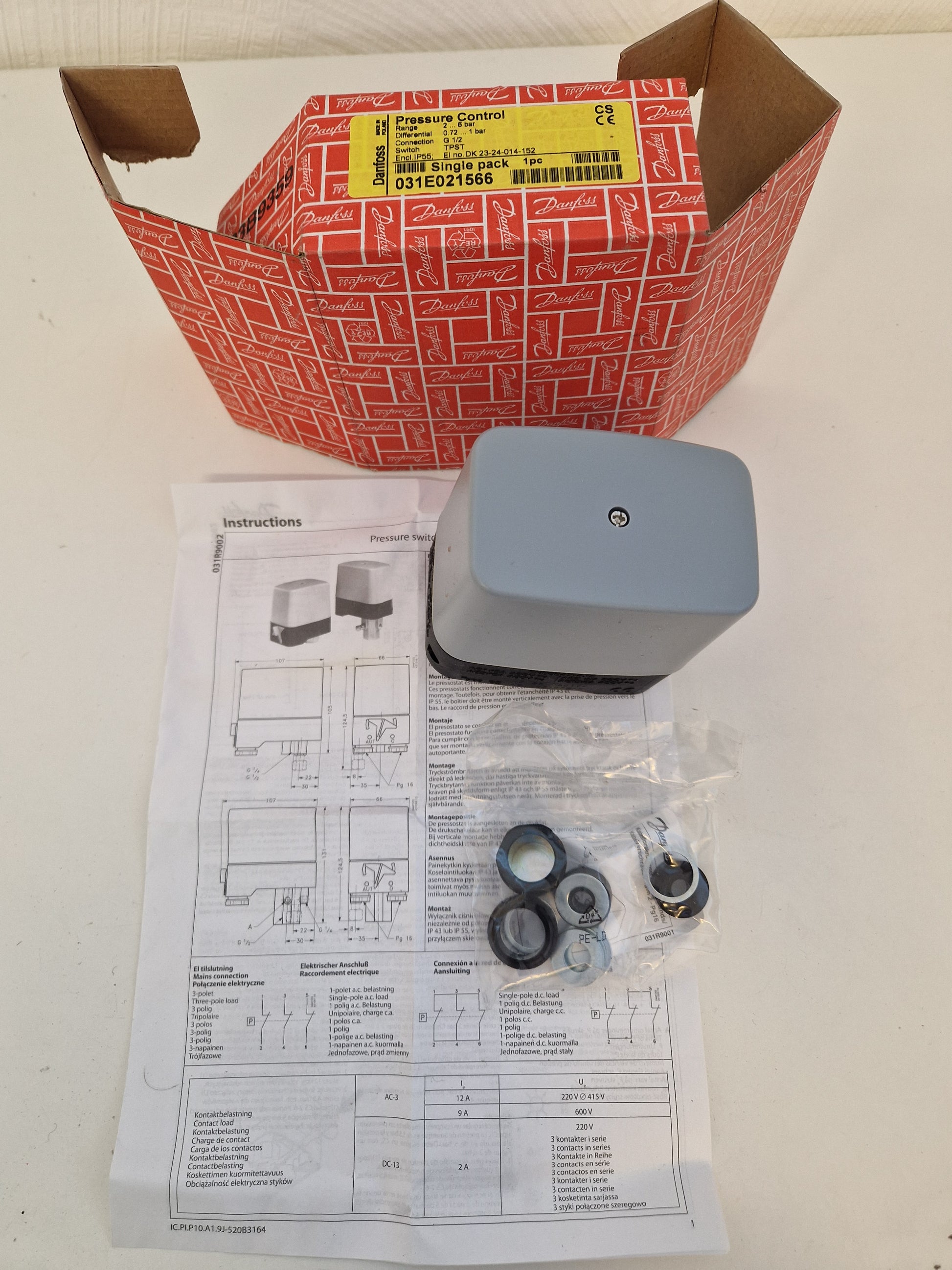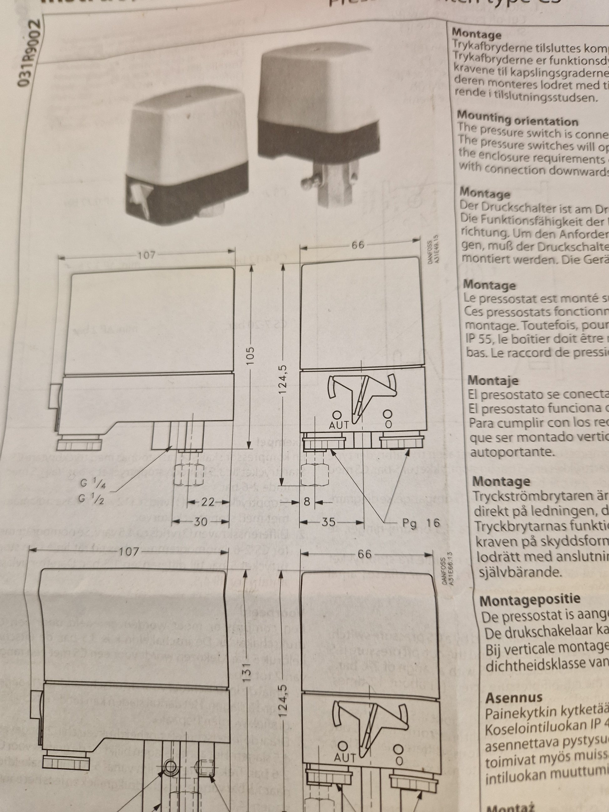 Danfoss tryckbrytare gänga G 1/2".