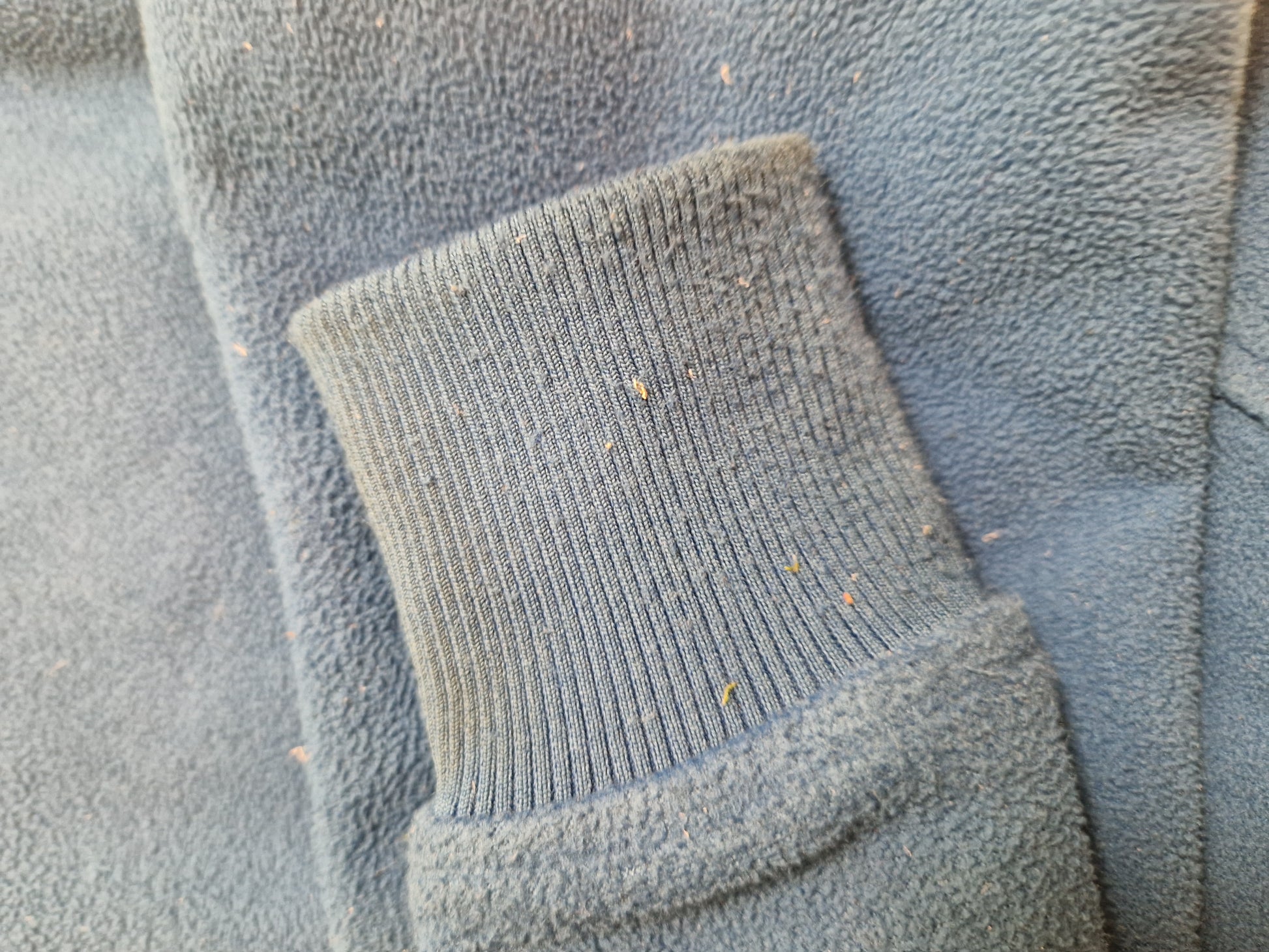 Blå fleecejacka från Polarn O. Pyret i storlek 122/6-7år. Flockig, nopprig och smutsig i armmuddar.