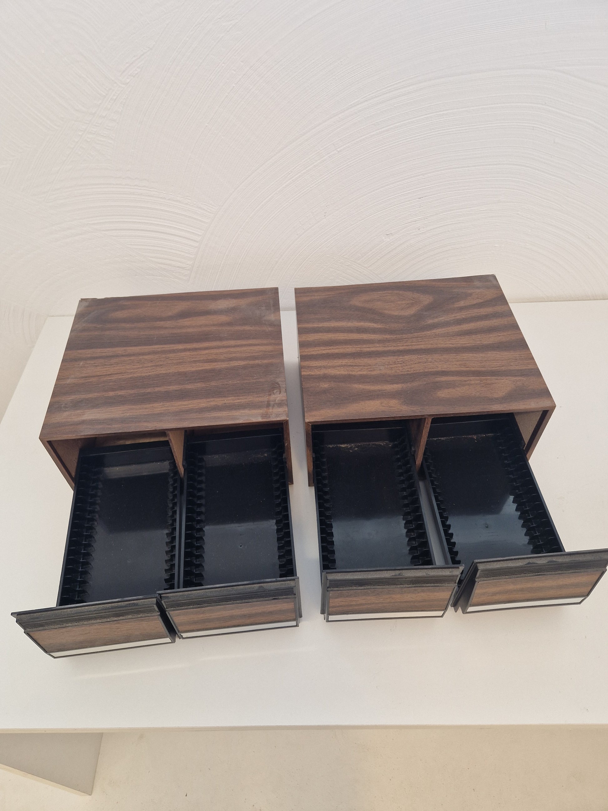2st förvaringslådor med plats för 20 skivor i varje låda, alltså plats för totalt 80st CD-skivor med fodral.
