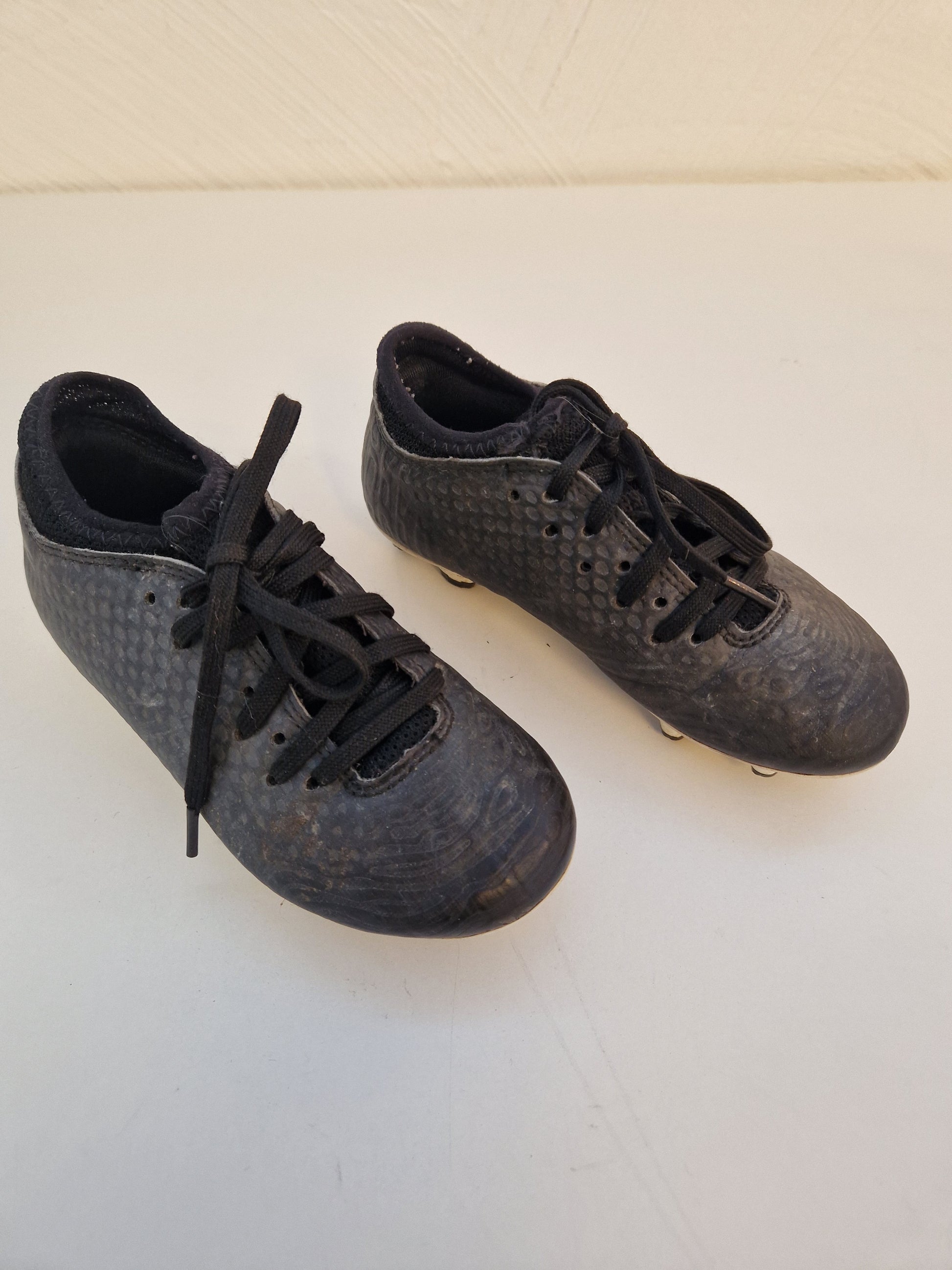 Ett par svarta fotbollsskor från PUMA i stl 28 och i oputsat men annars bra skick, med fler mål kvar att leverera.