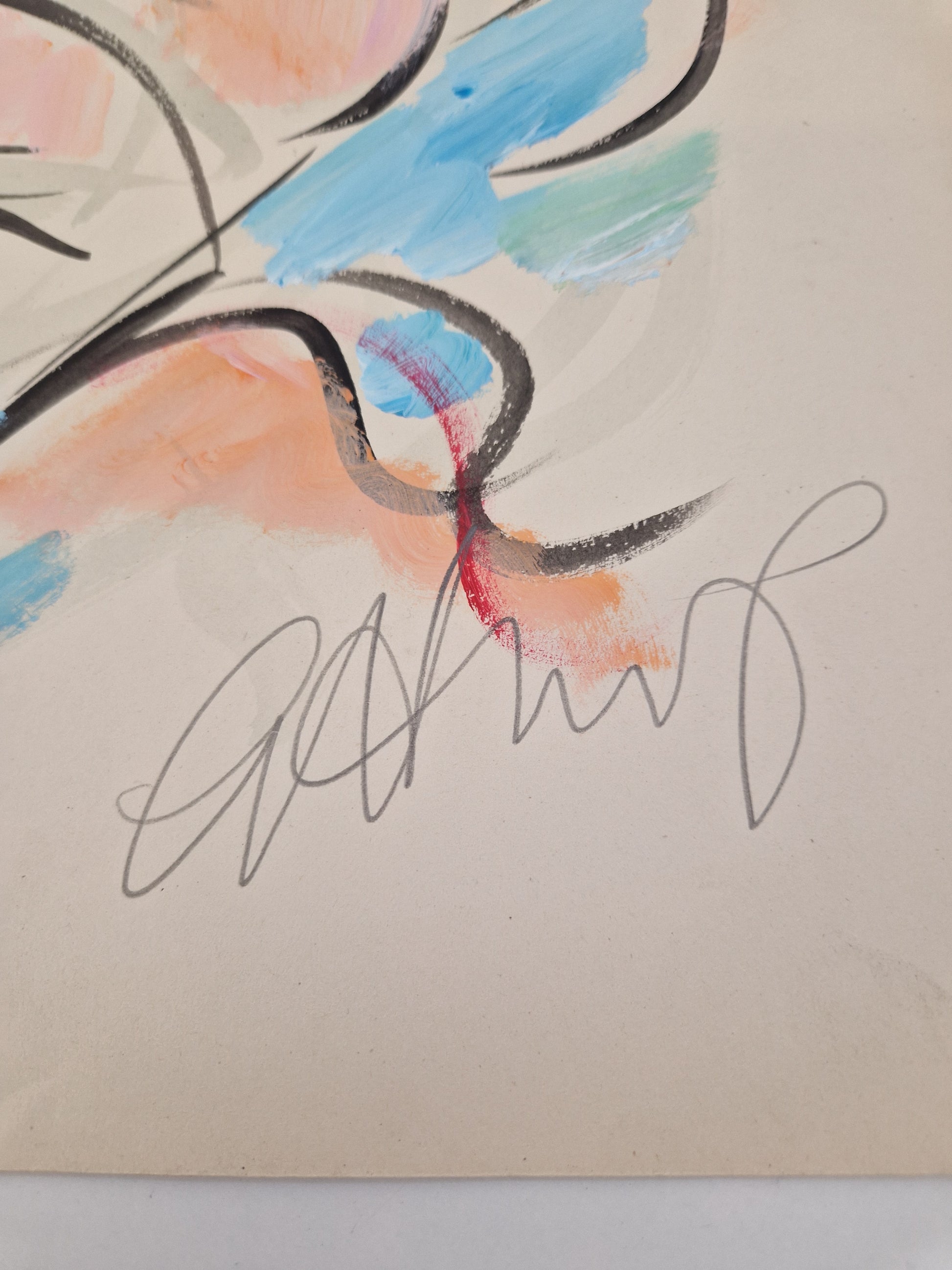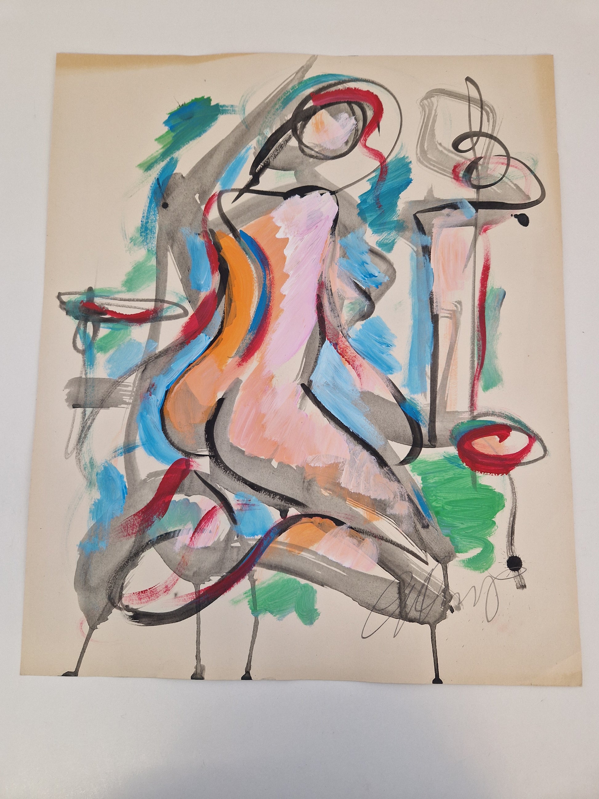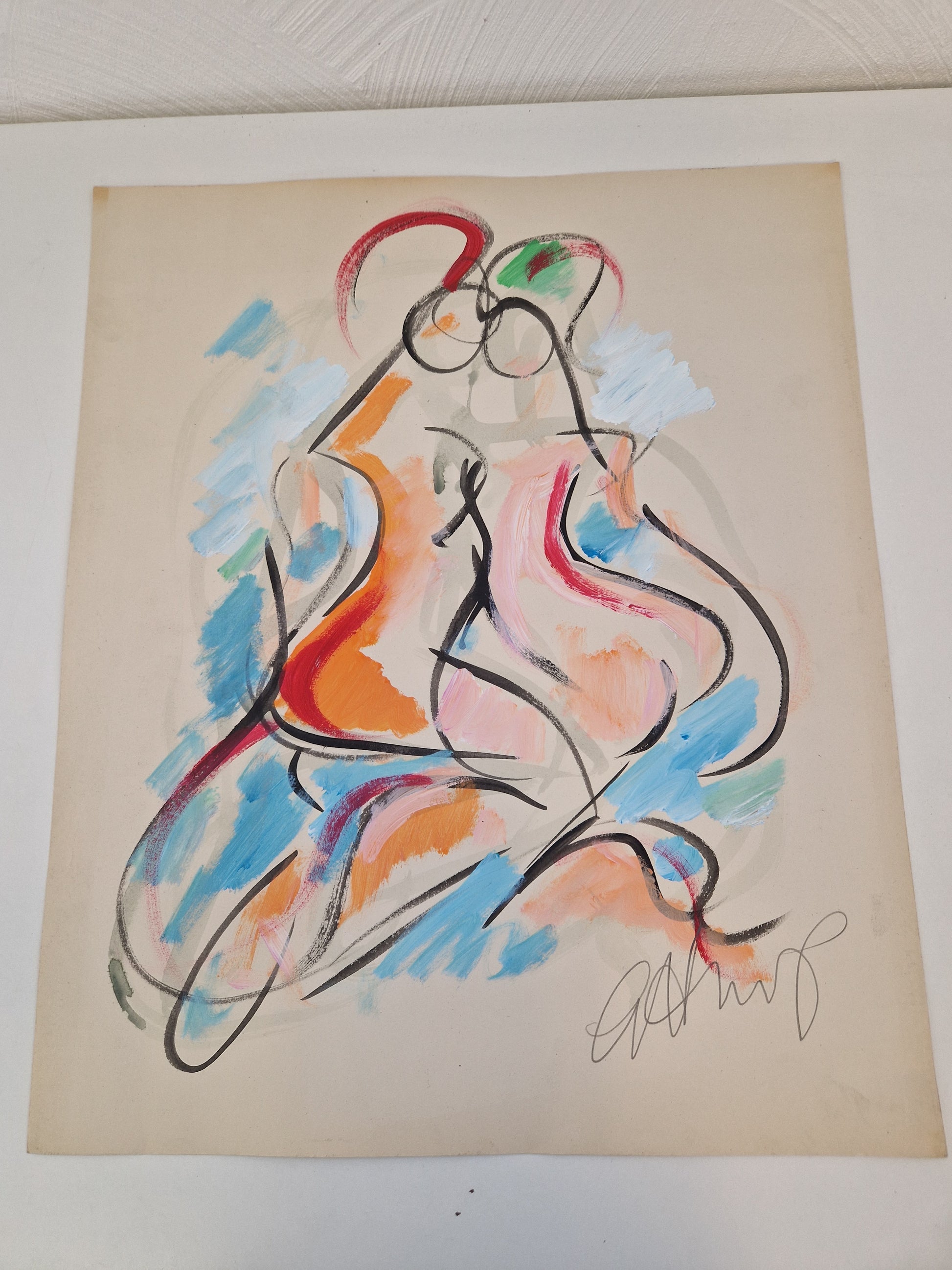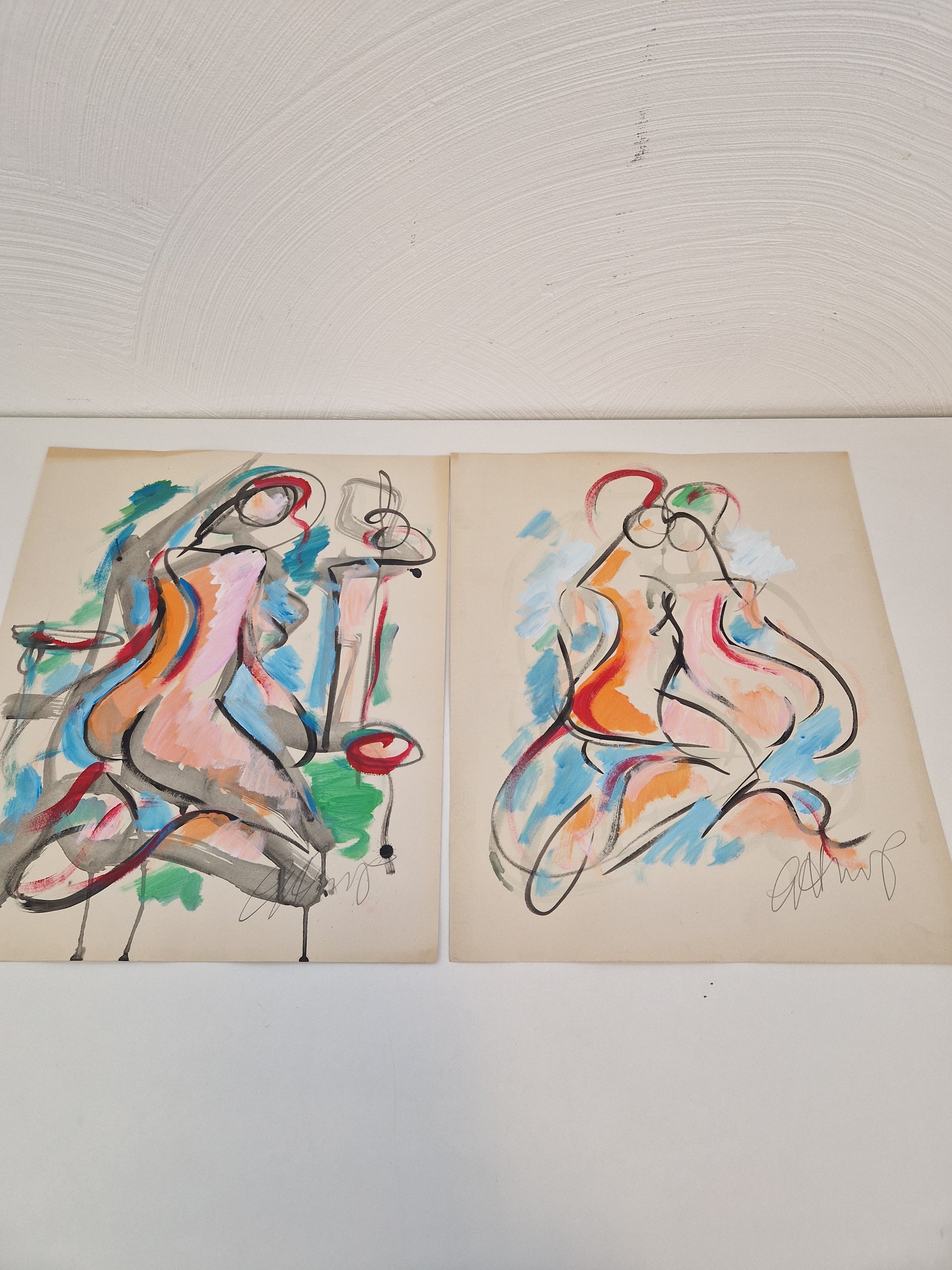 2 målningar i akryl? på papper av Göran Hausenkamp.