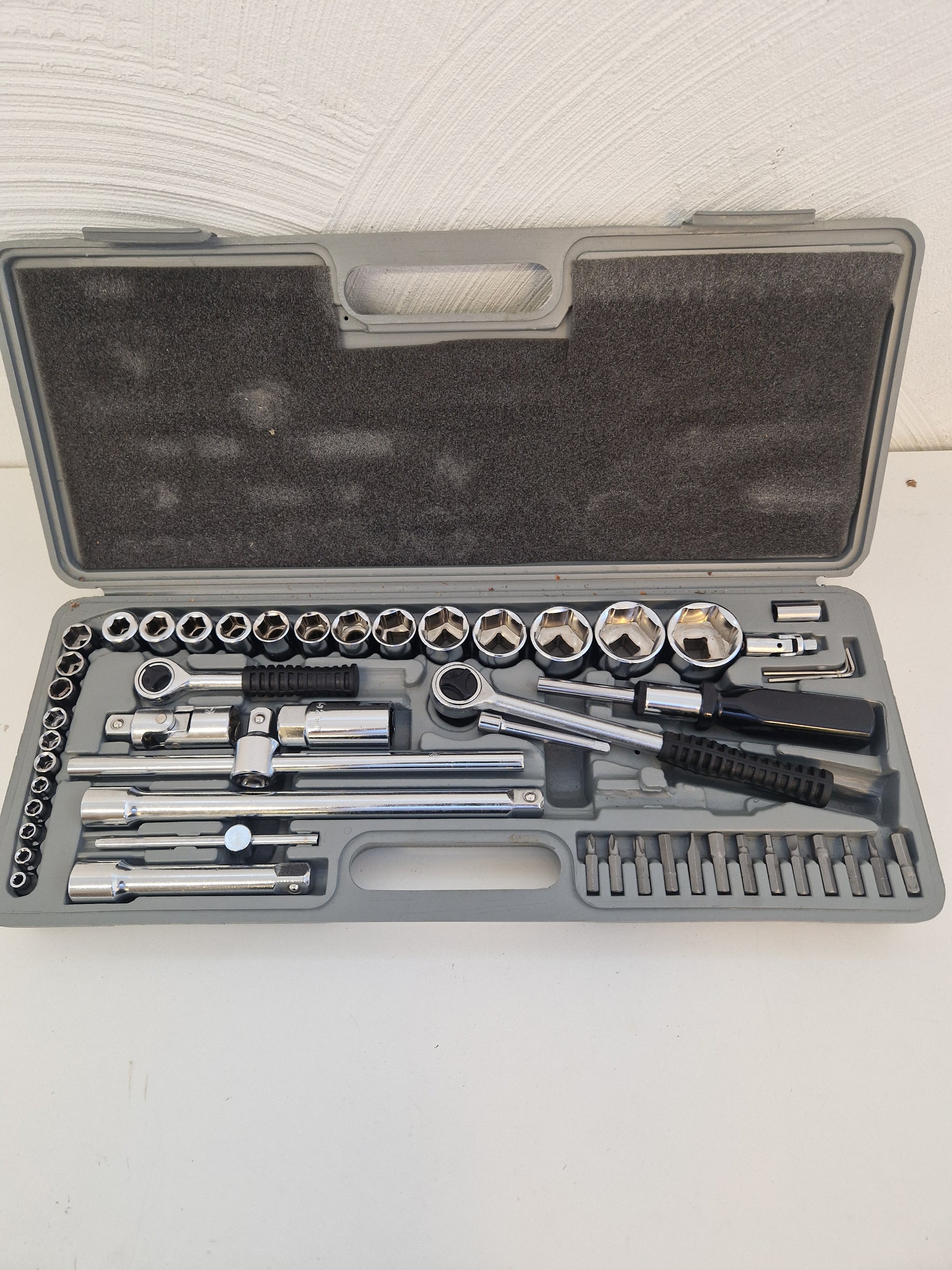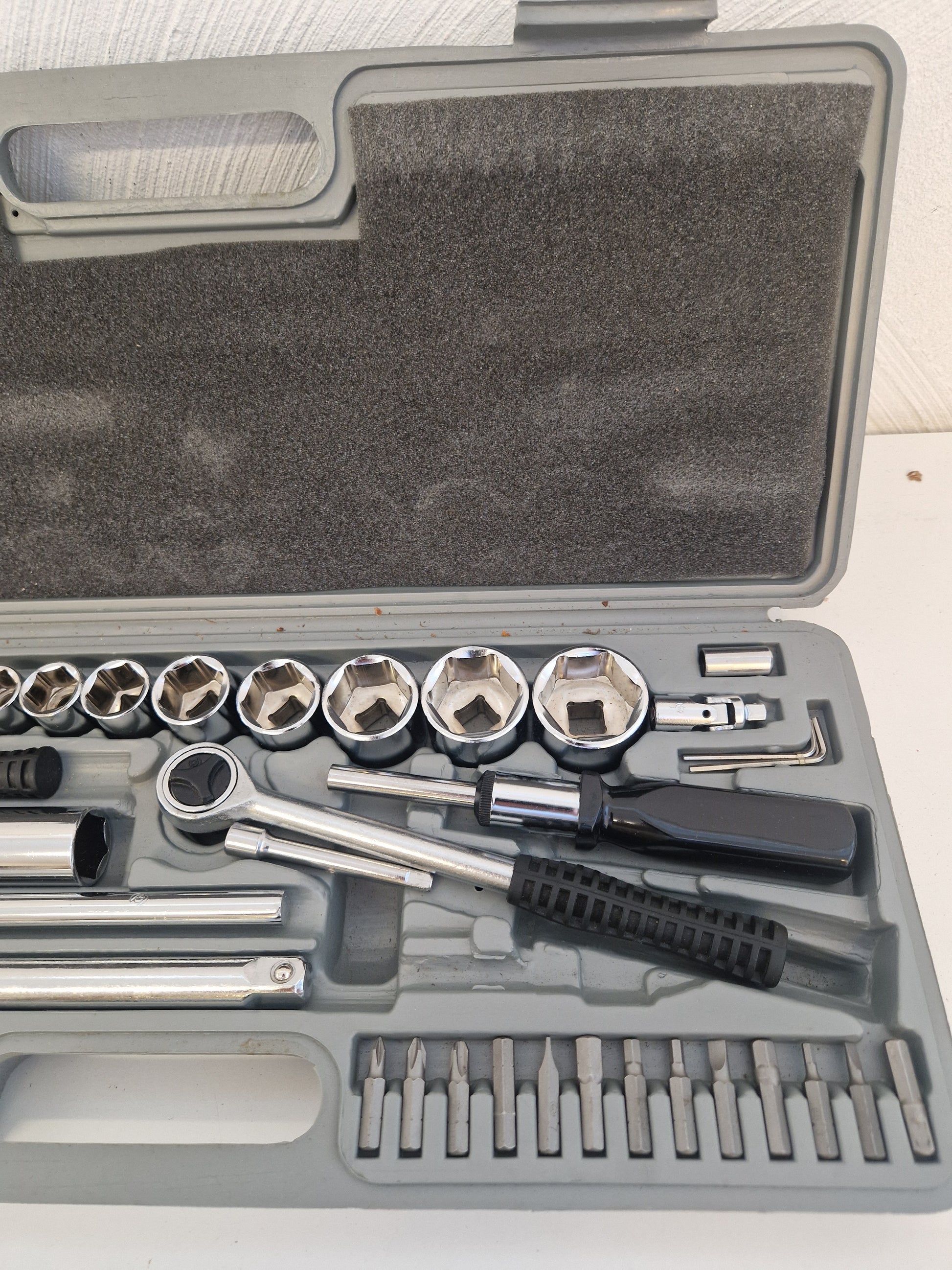 Hylsnyckelsats med sexkantshylsor o bits i mycket gott skick. Tillsynes obegagnat.