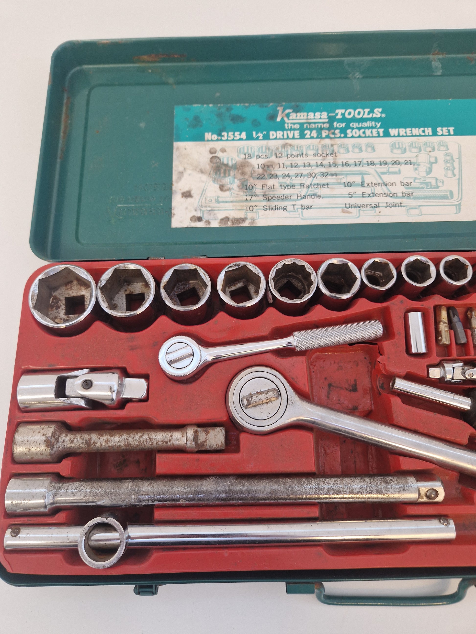 Lådan är märkt med "Kamasa Tools" men långt ifrån allt är från originallådan.