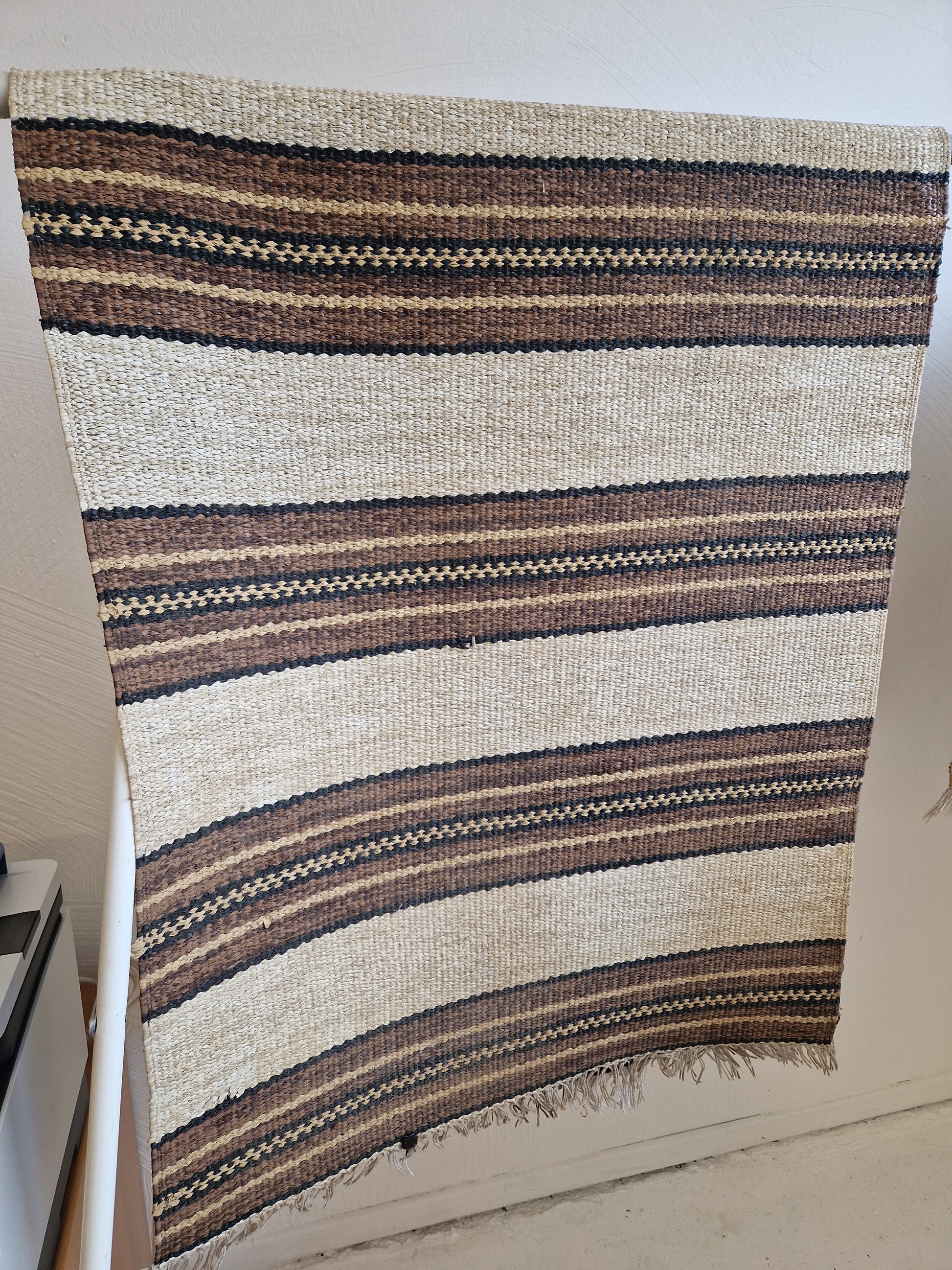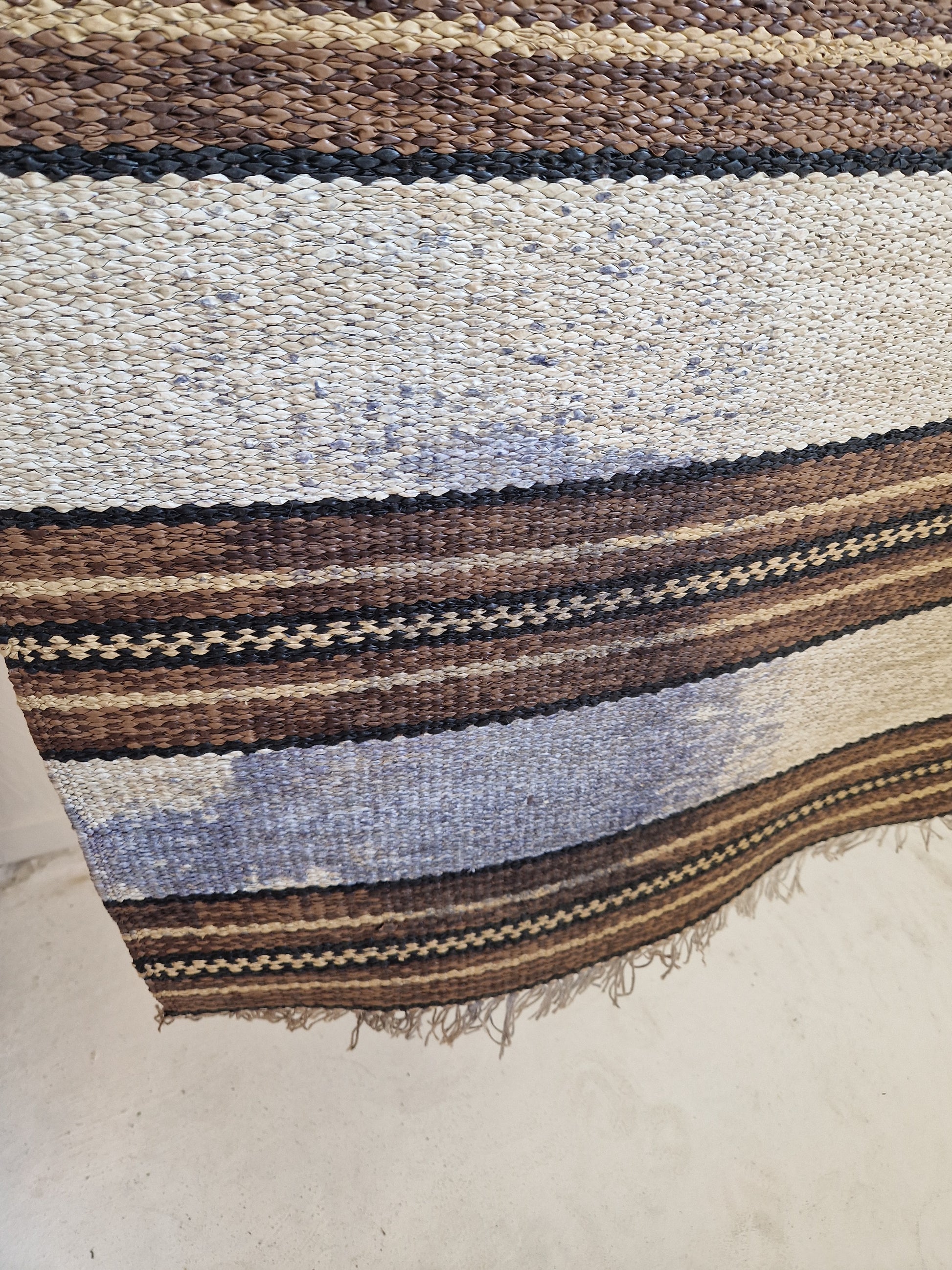 Bild 1: Längd ca 175cm, ej fransar, och bredd ca 69cm. Stor lila färgfläck, se sista bilden.