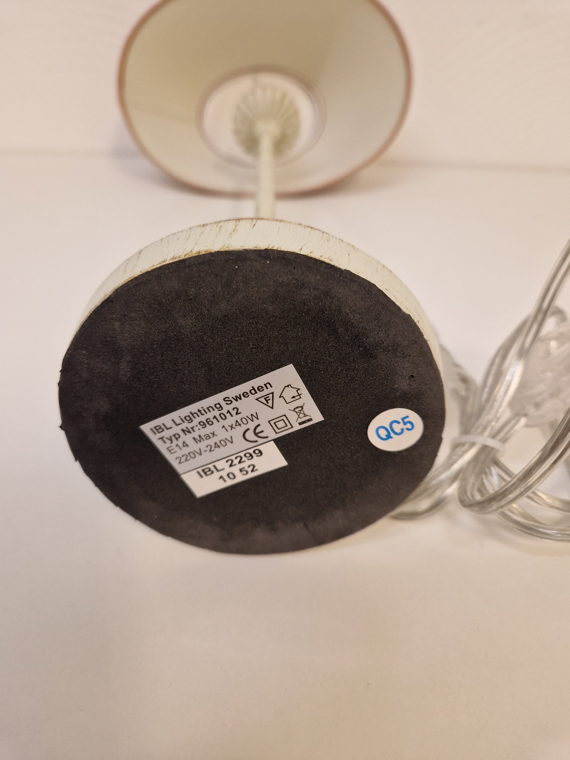 Bordslampa med vitmålad träfot i "Chabby chic " utförande.