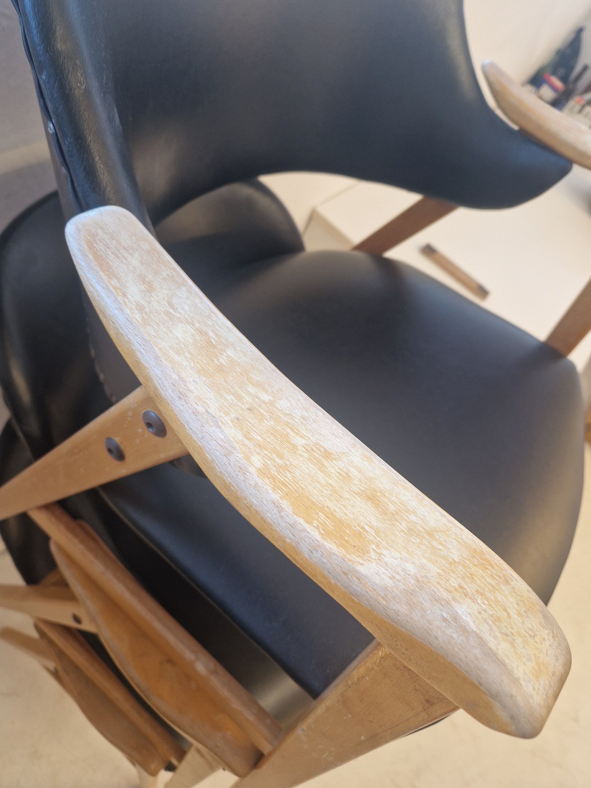 "Skinnklädseln" har inga större skador, visst något skav, ett litet hål lite smuts men i det stora hela fina stolar med tanke på ålder.