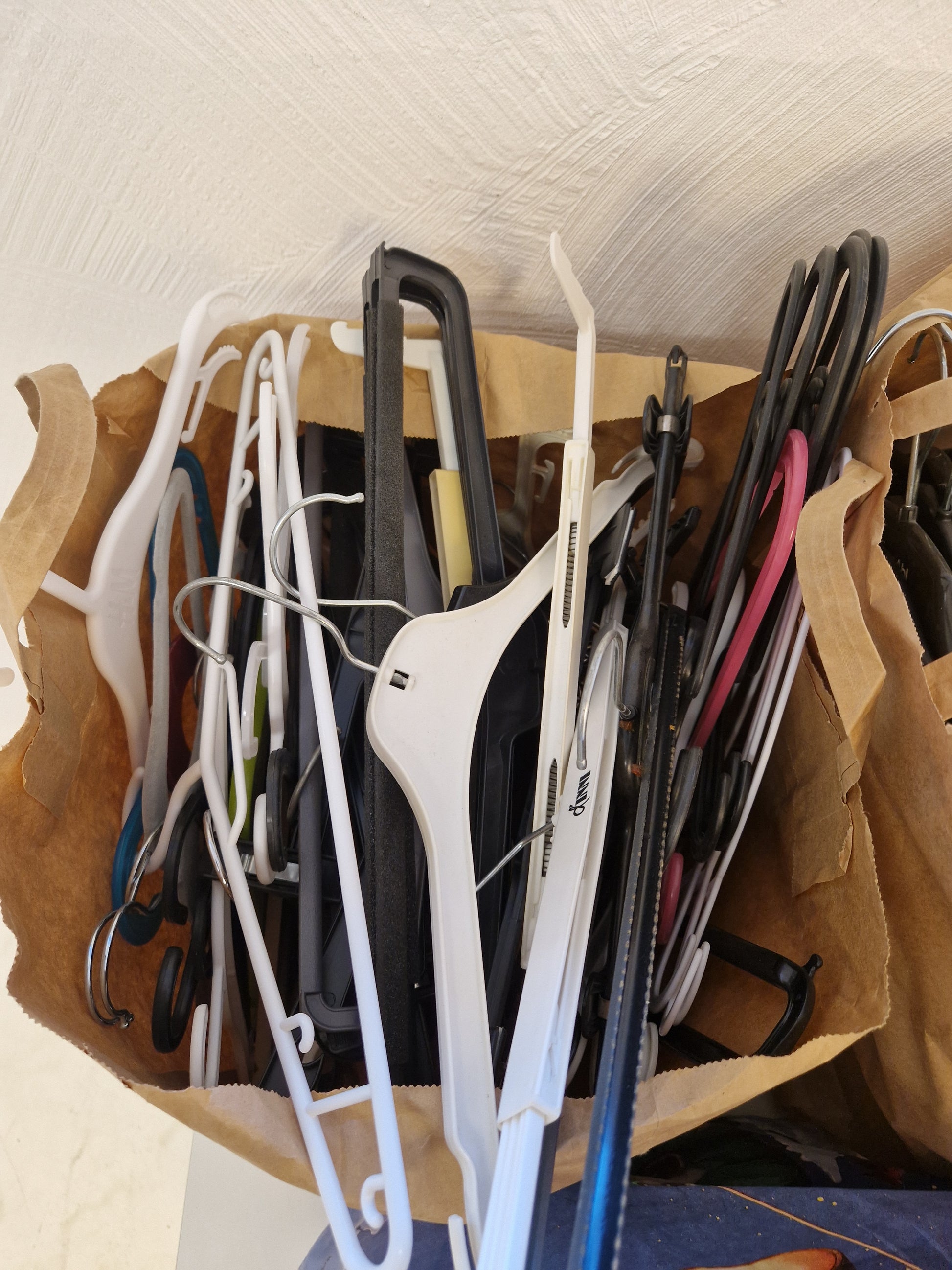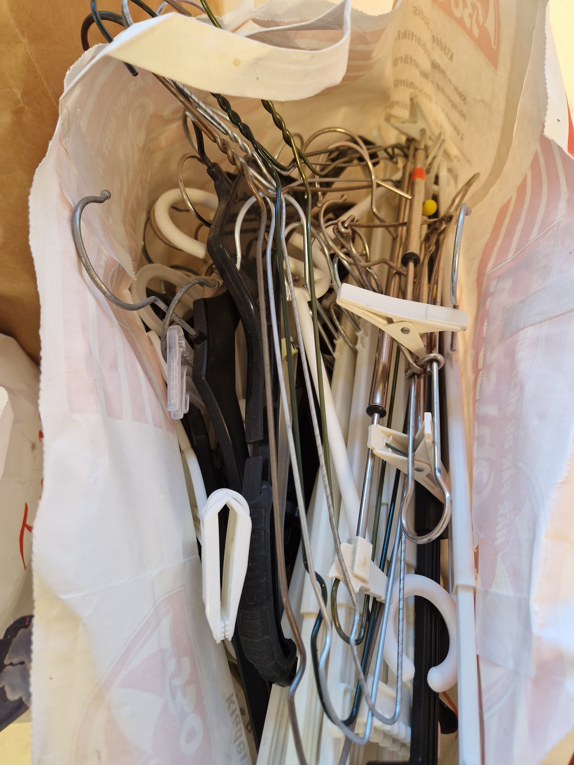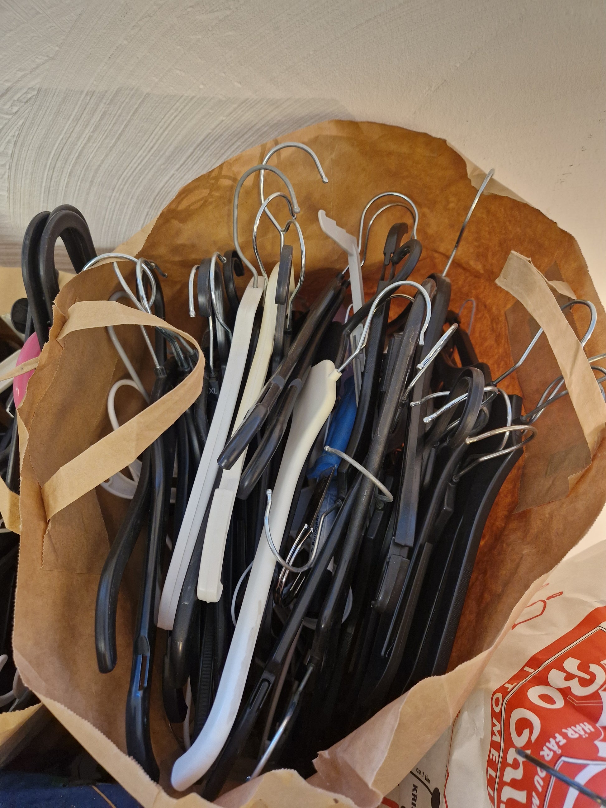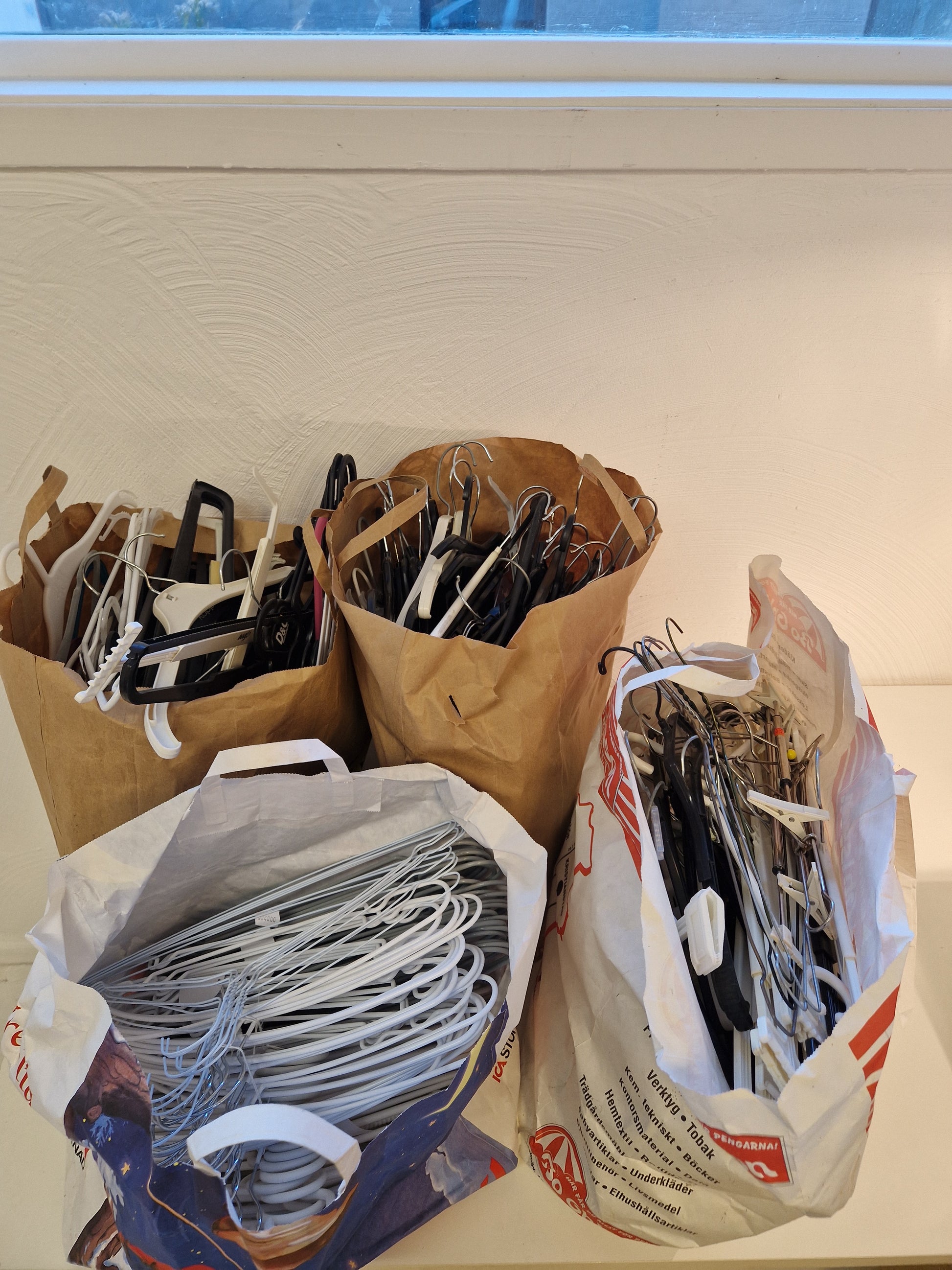 Drygt 200st klädhängare och galgar i olika utförande. (Baserat på vikten, ej räknade)