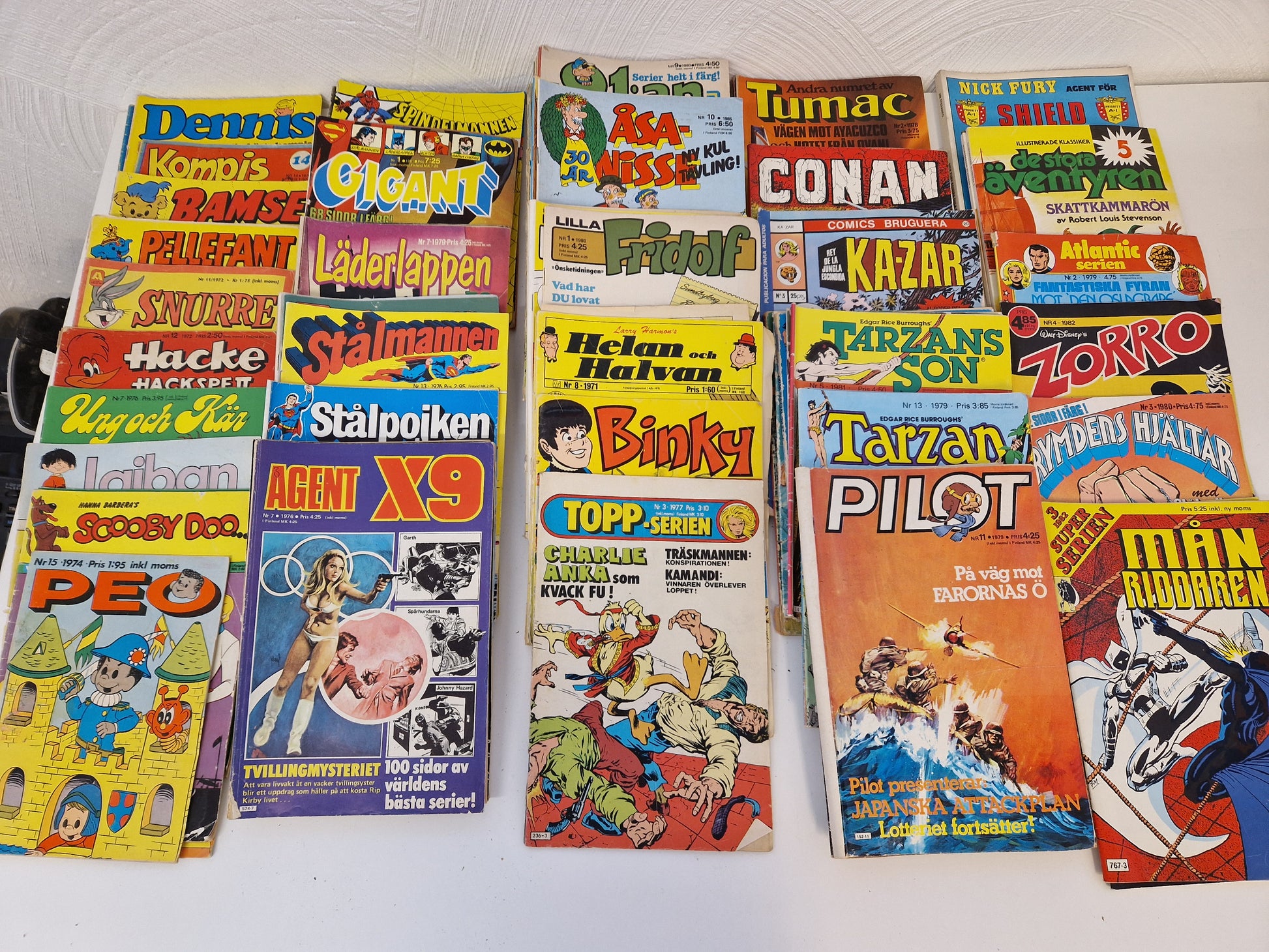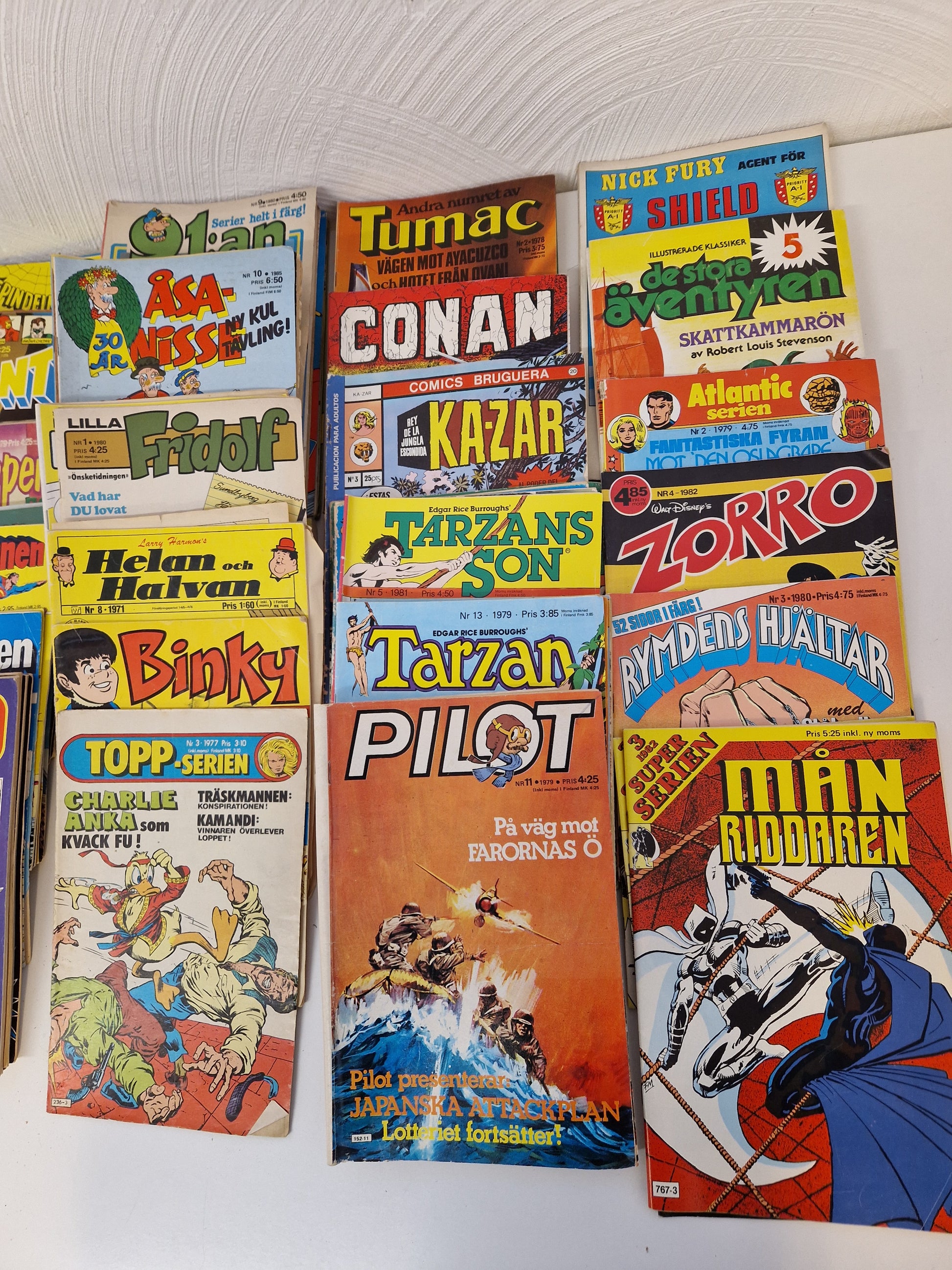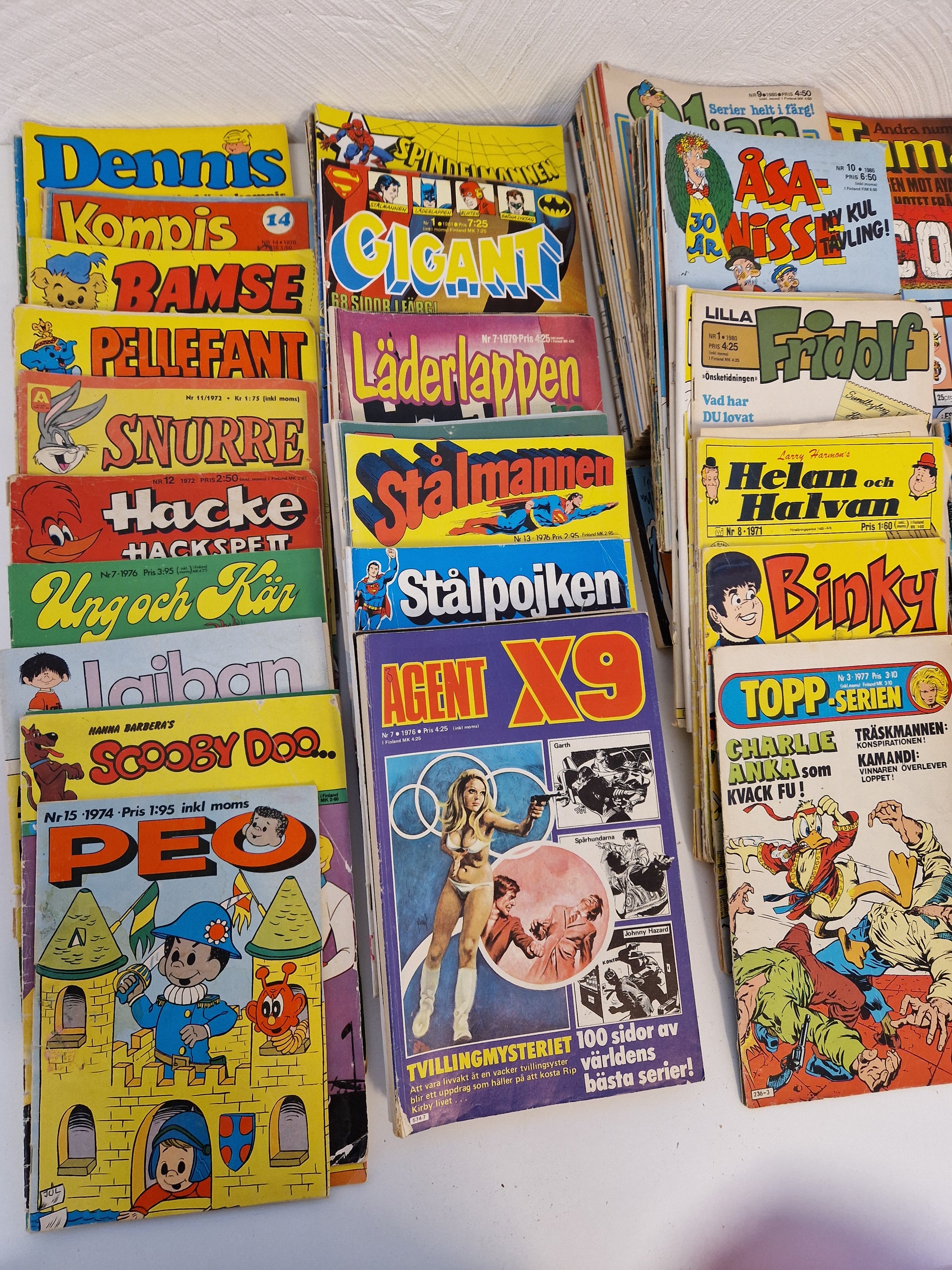 Blandade serietidningar, mestadels 70-tal. Läsvärdet är säkert högre än samlarvärdet då skicket är från dåligt till ok men intressenter bör besöka oss för visning och egen bedömning. Kanske finns det något fynd🤔🌞