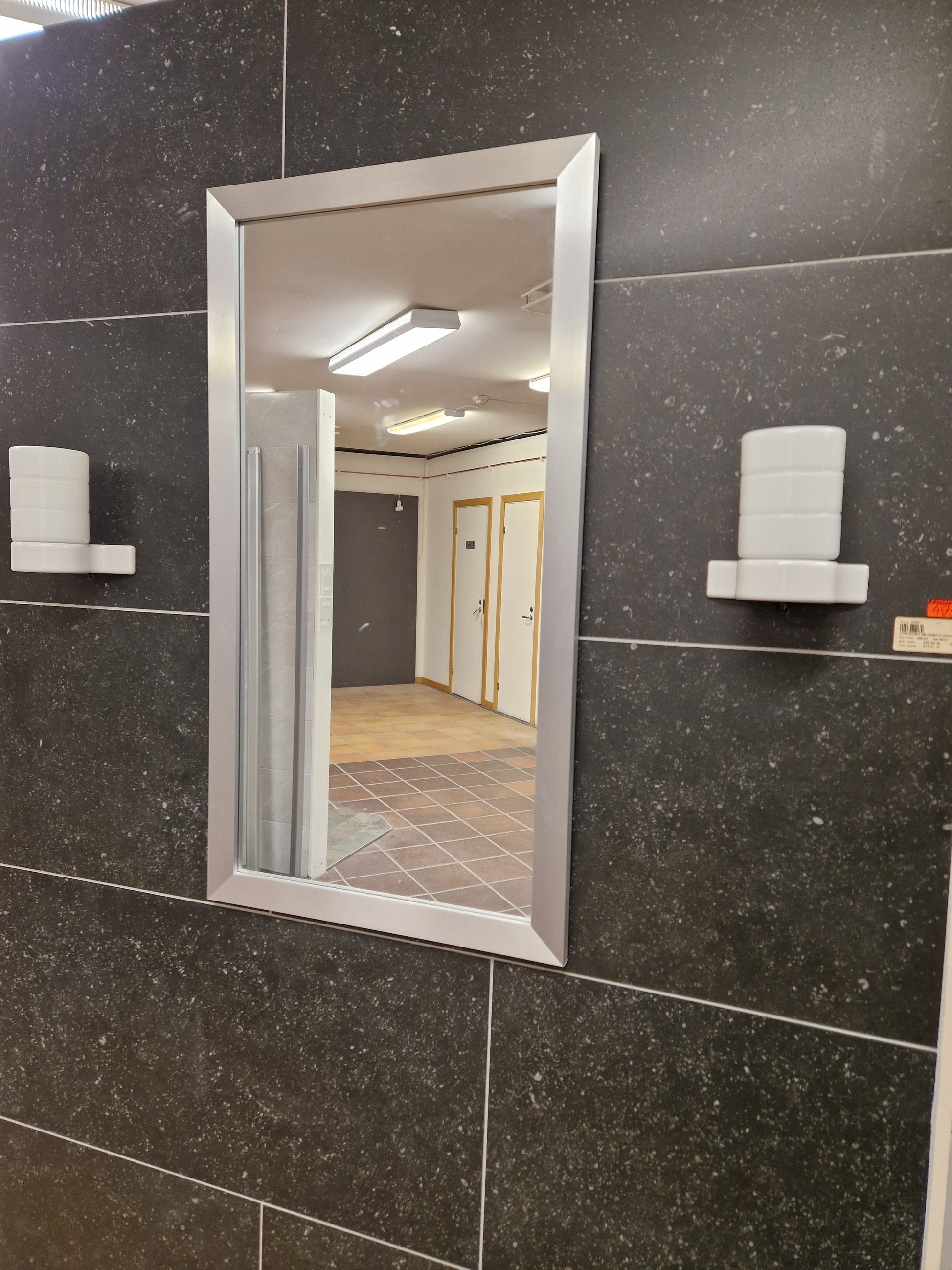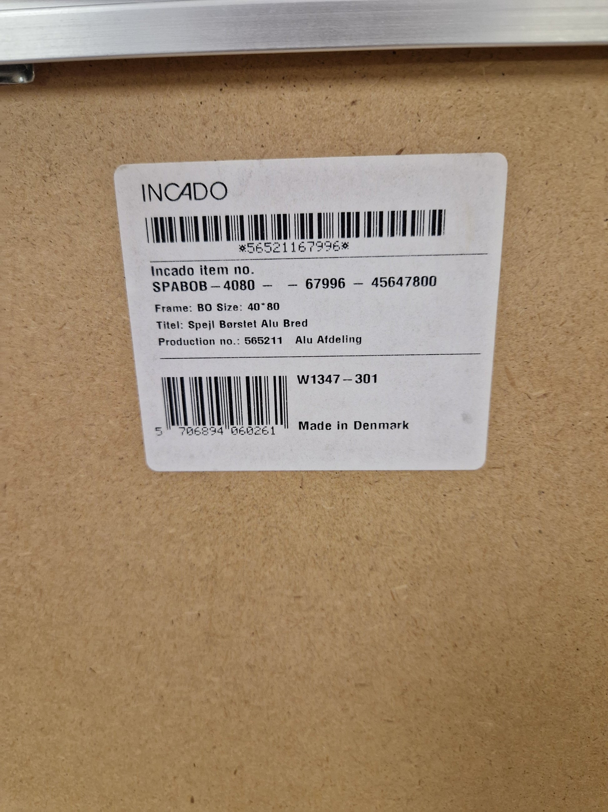 Spegel i borstad aluminium. Spegelns bredd 40cm och höjd 80cm.