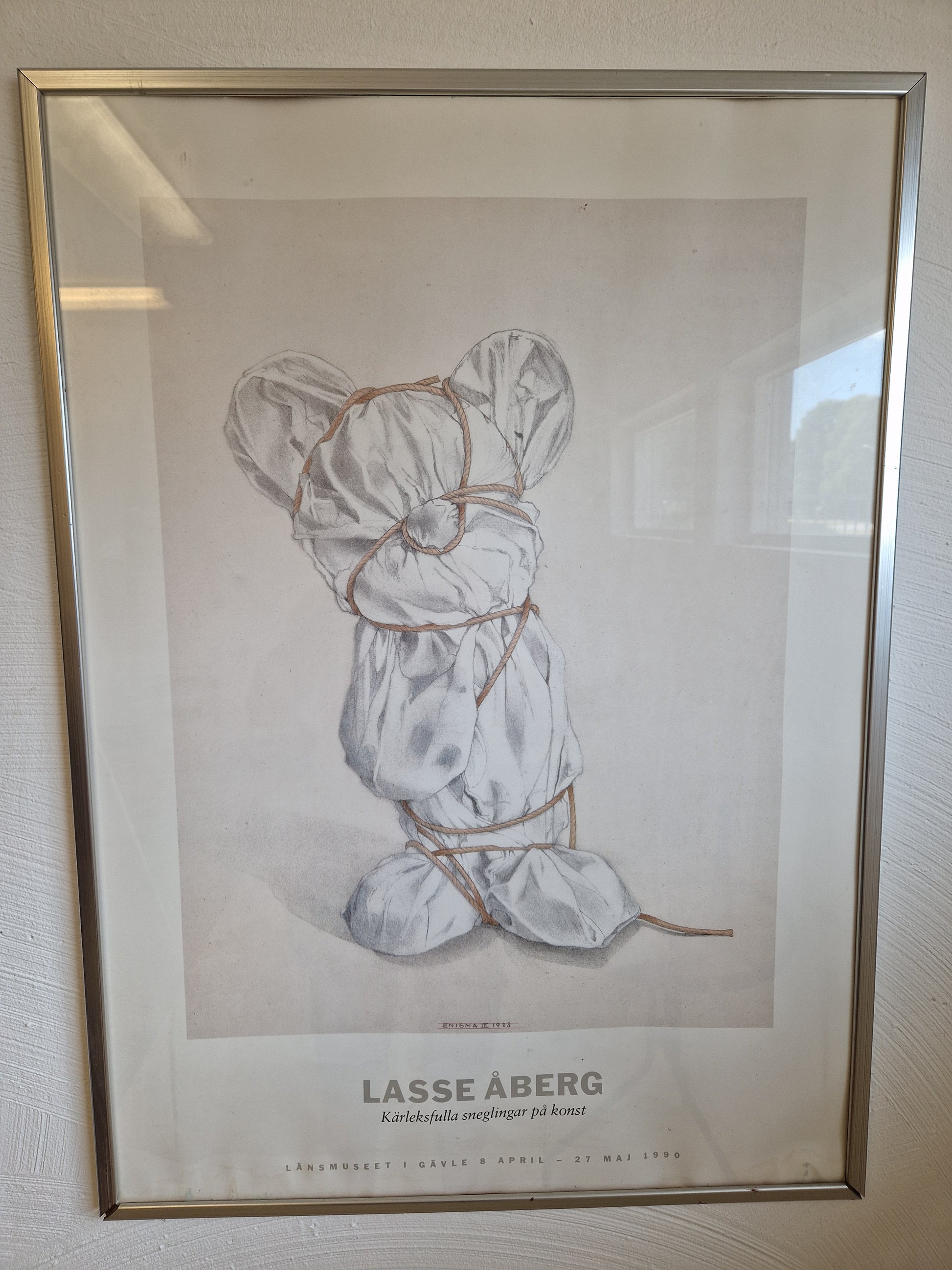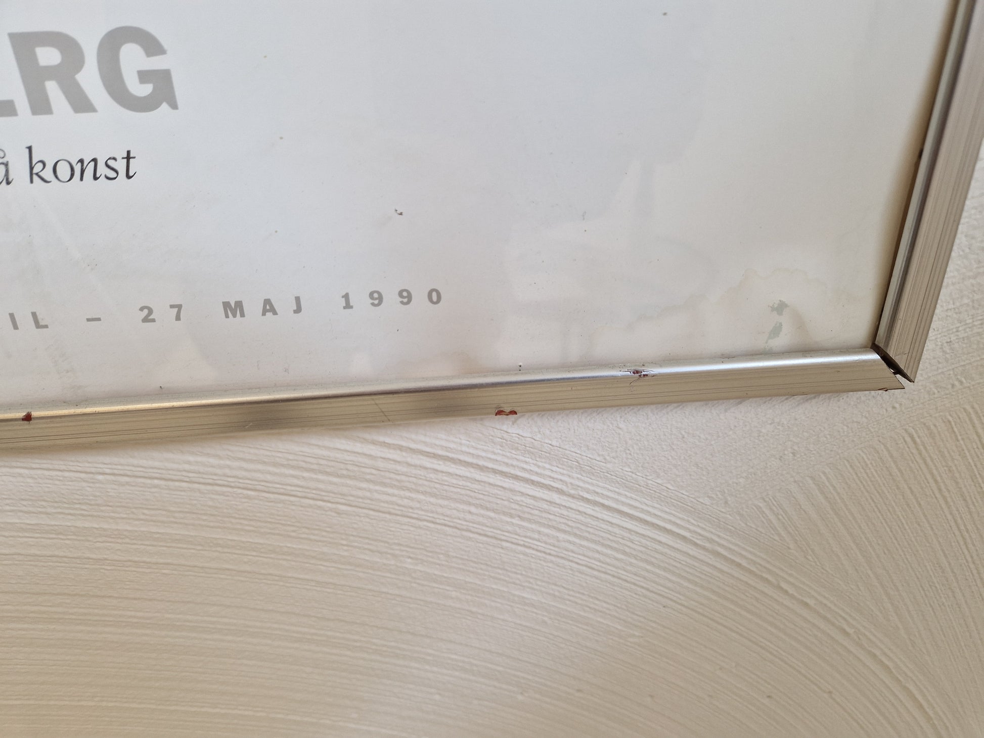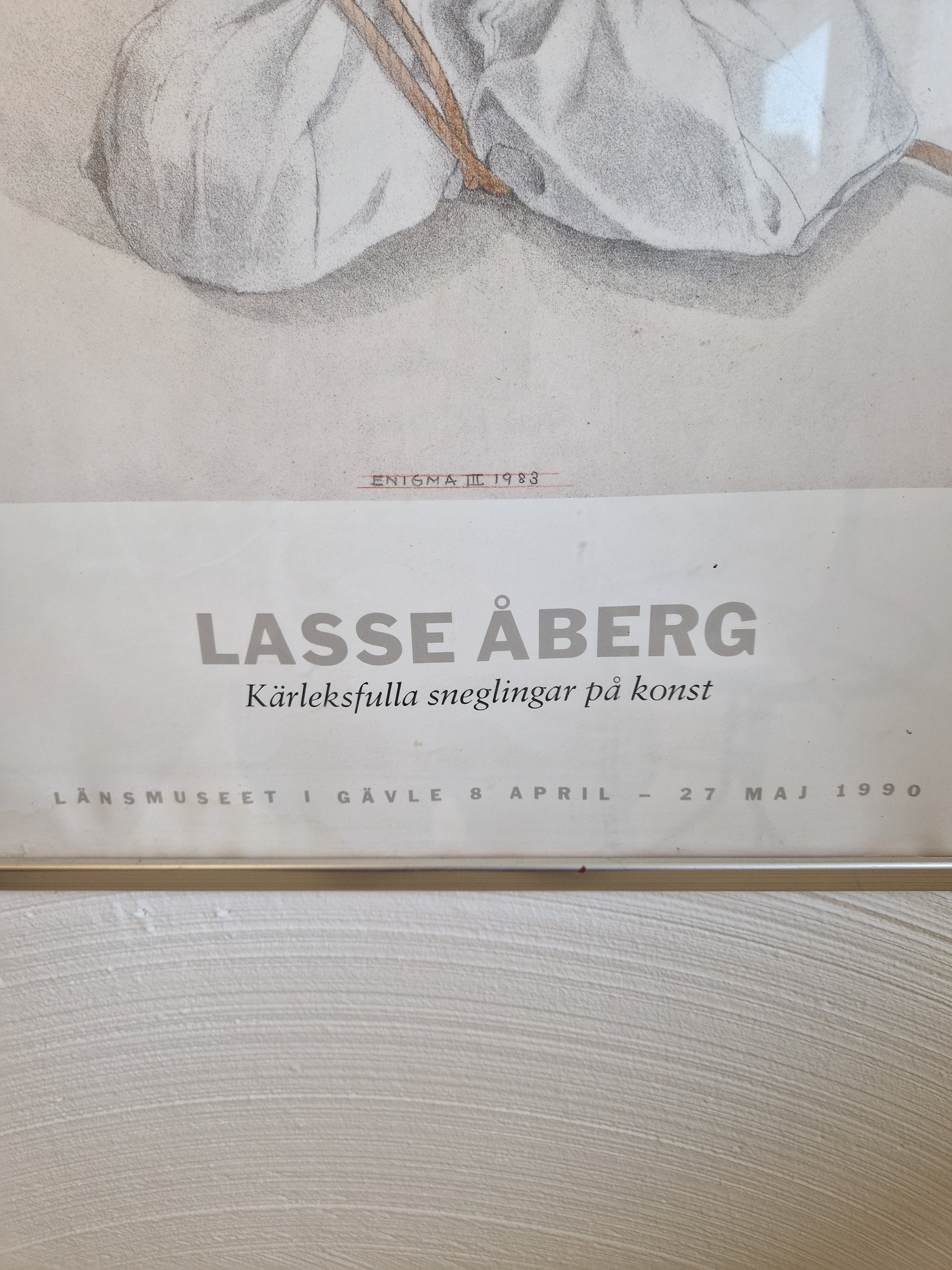 Inramad Lasse Åberg affisch "ENIGMA III 1983! Tyvärr med fuktskada längst ned.