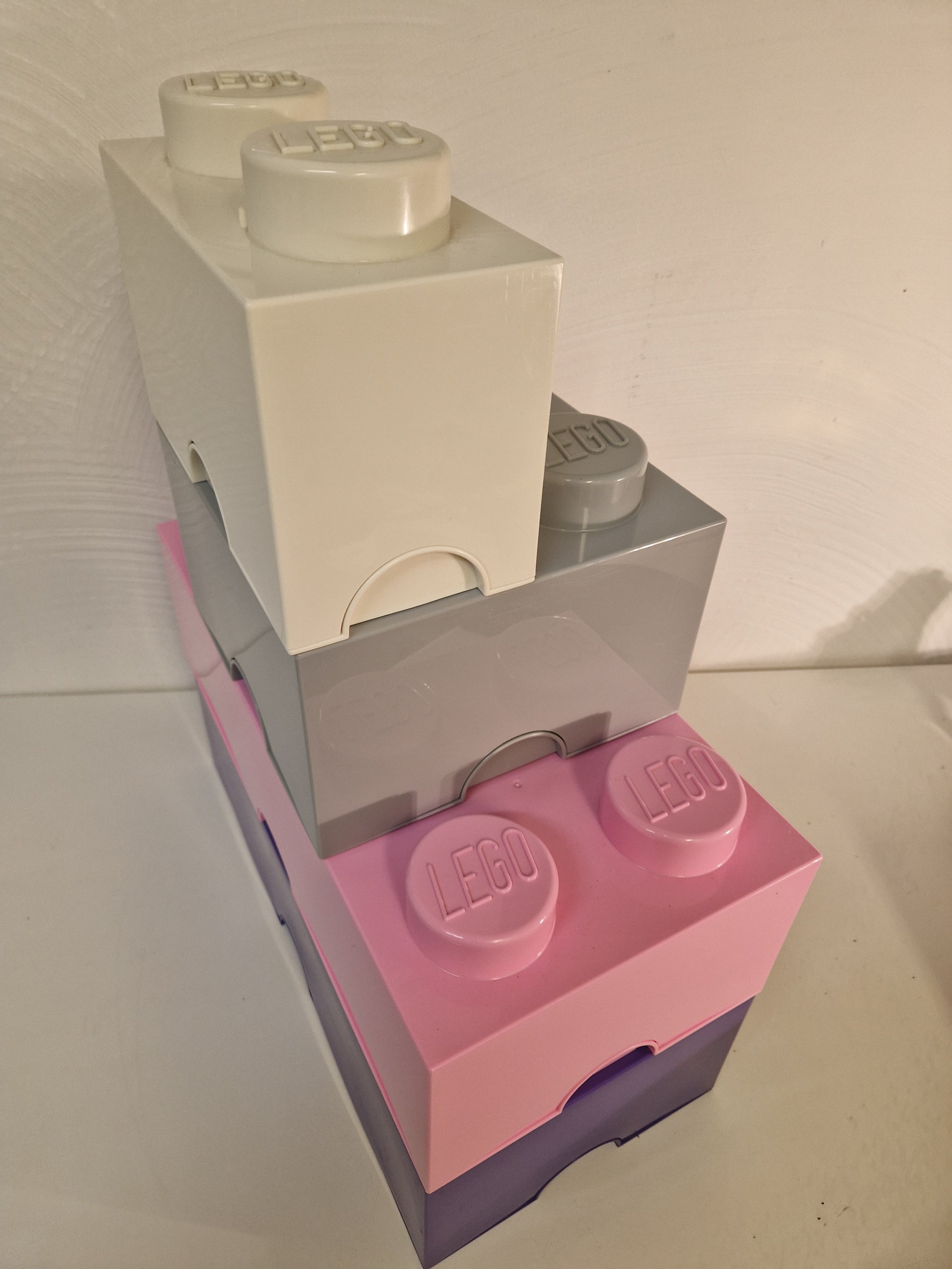 Lila och rosa med längd ca 50cm, bredd ca 25cm och höjd ca 15cm.