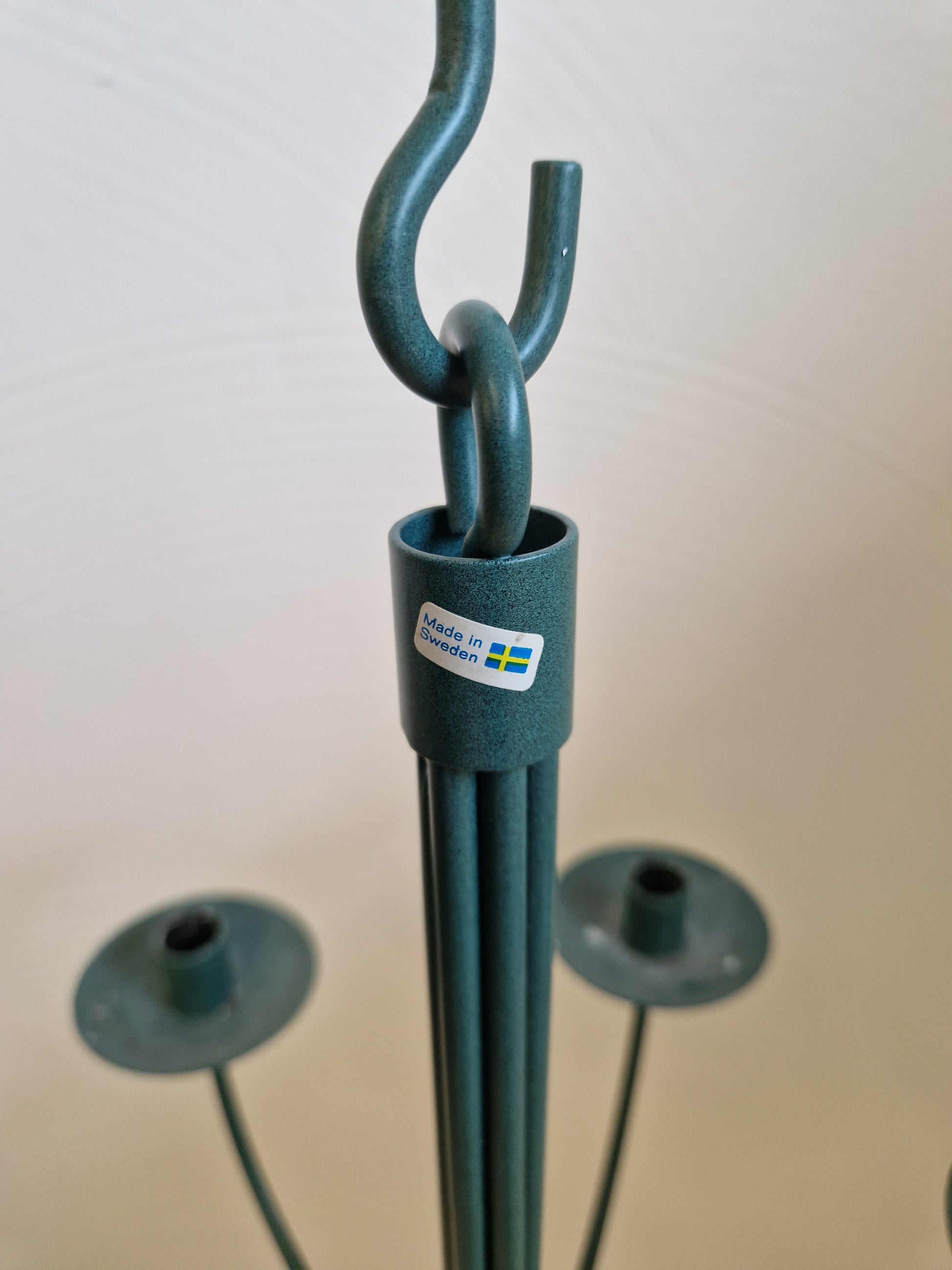 Höjden på själva kronan är ca 38cm och diametern är ca 44cm. Med kronan följer 5st krokar som vardera mäter ca 19cm, vilket gör det möjligt att justera höjden med upp till ca 95cm.