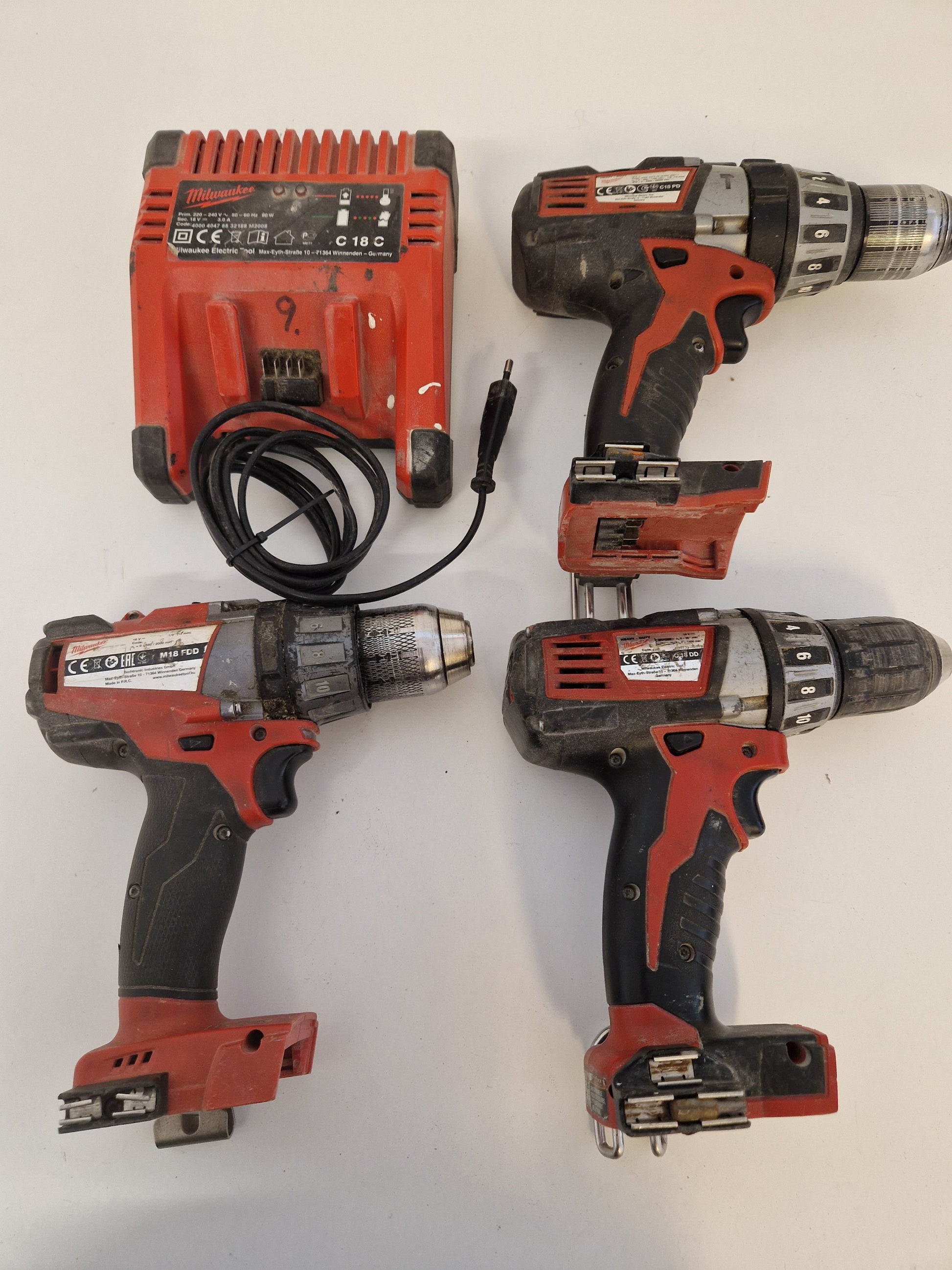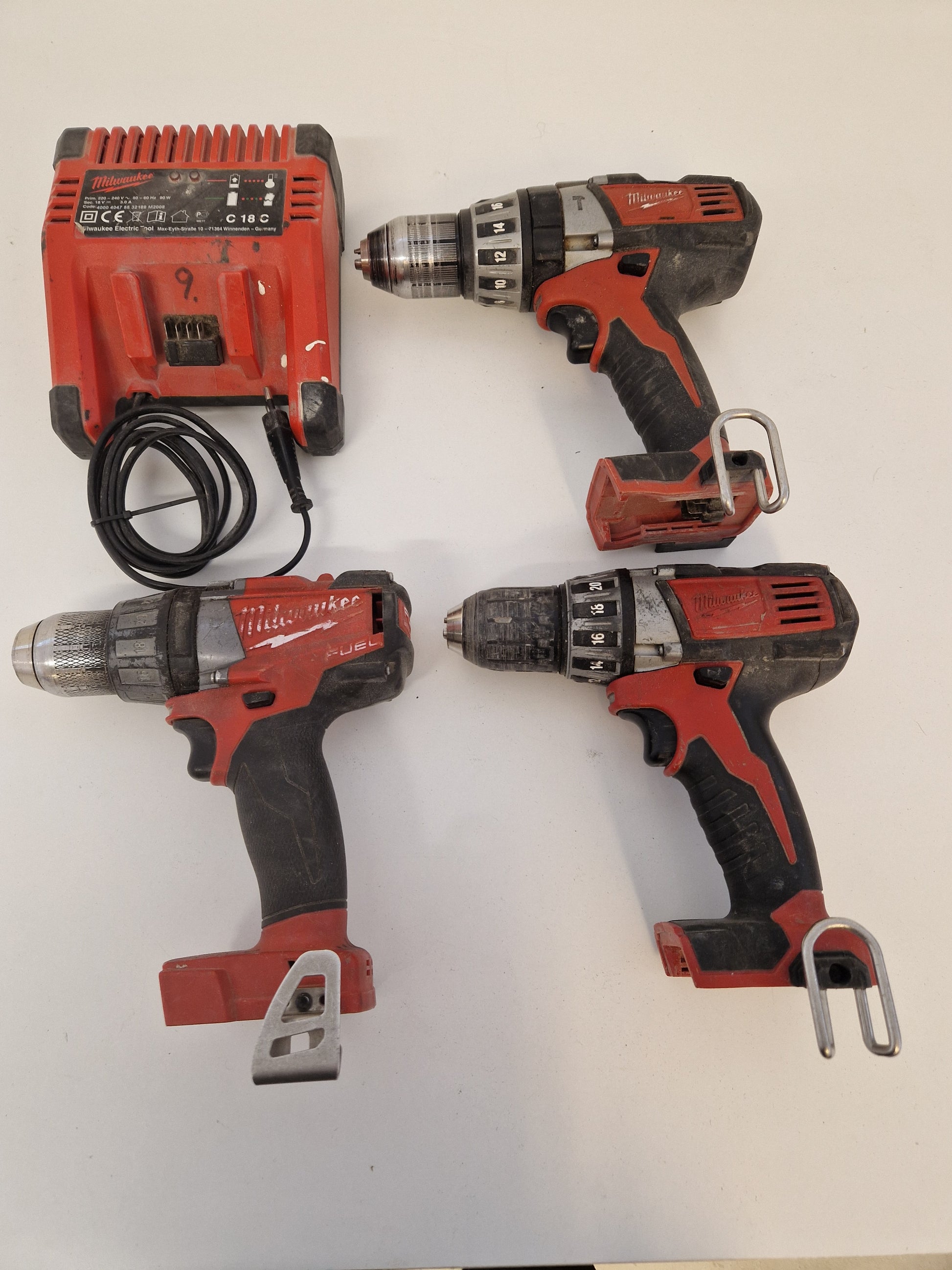 Milwaukee skruvdragare, 3 olika modeller enligt följande; C18PD, M18FDD & C18DD.