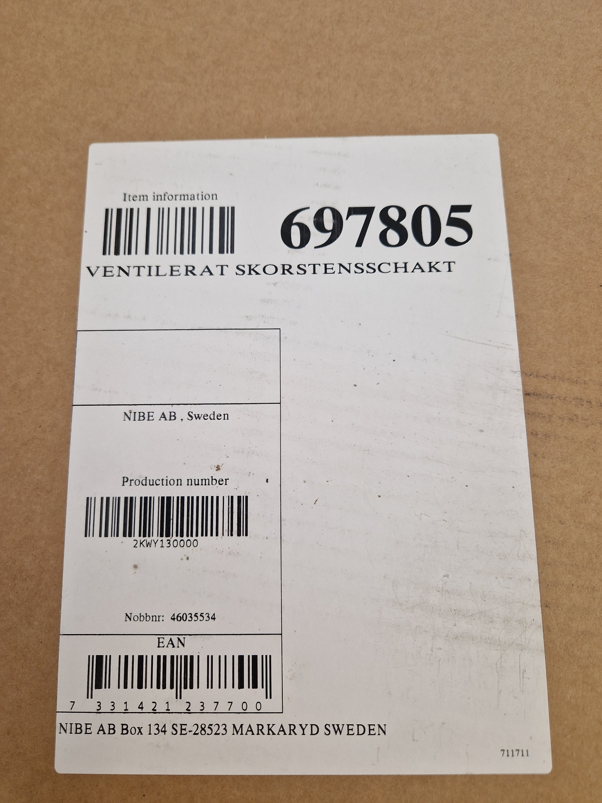 Nytt ventilerat skorstensschakt från NIBE i Markaryd, med mått ca 40X40x 100cm.