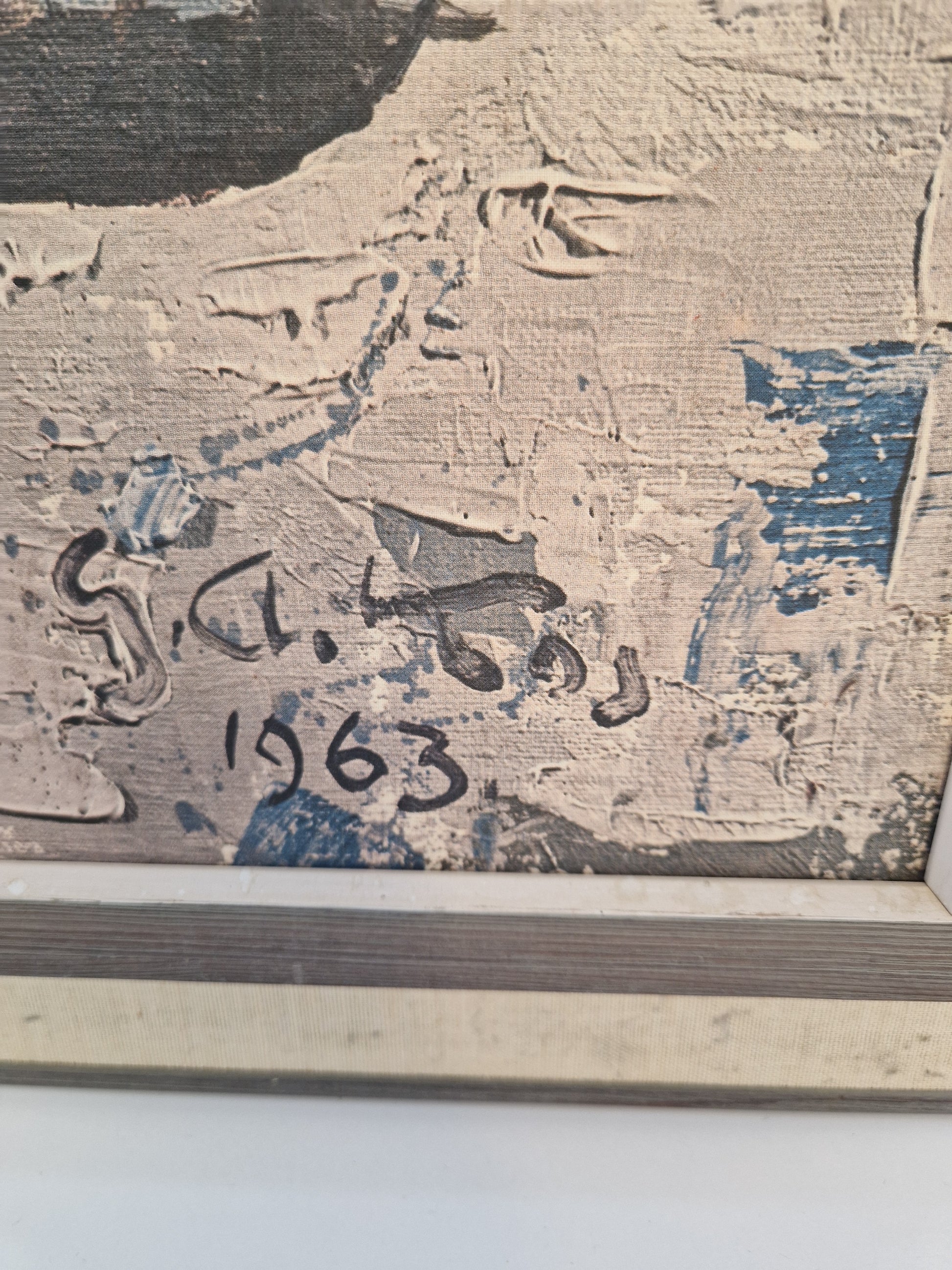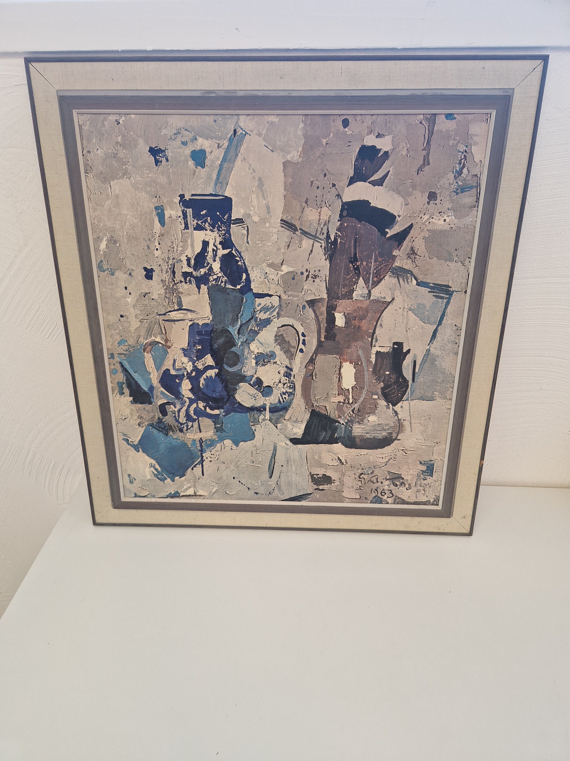 Bild 2+3, mått 68X74cm, motiv med vaser, kannor och glas, olja på canvasväv, otydlig sign. Men daterad 1963.