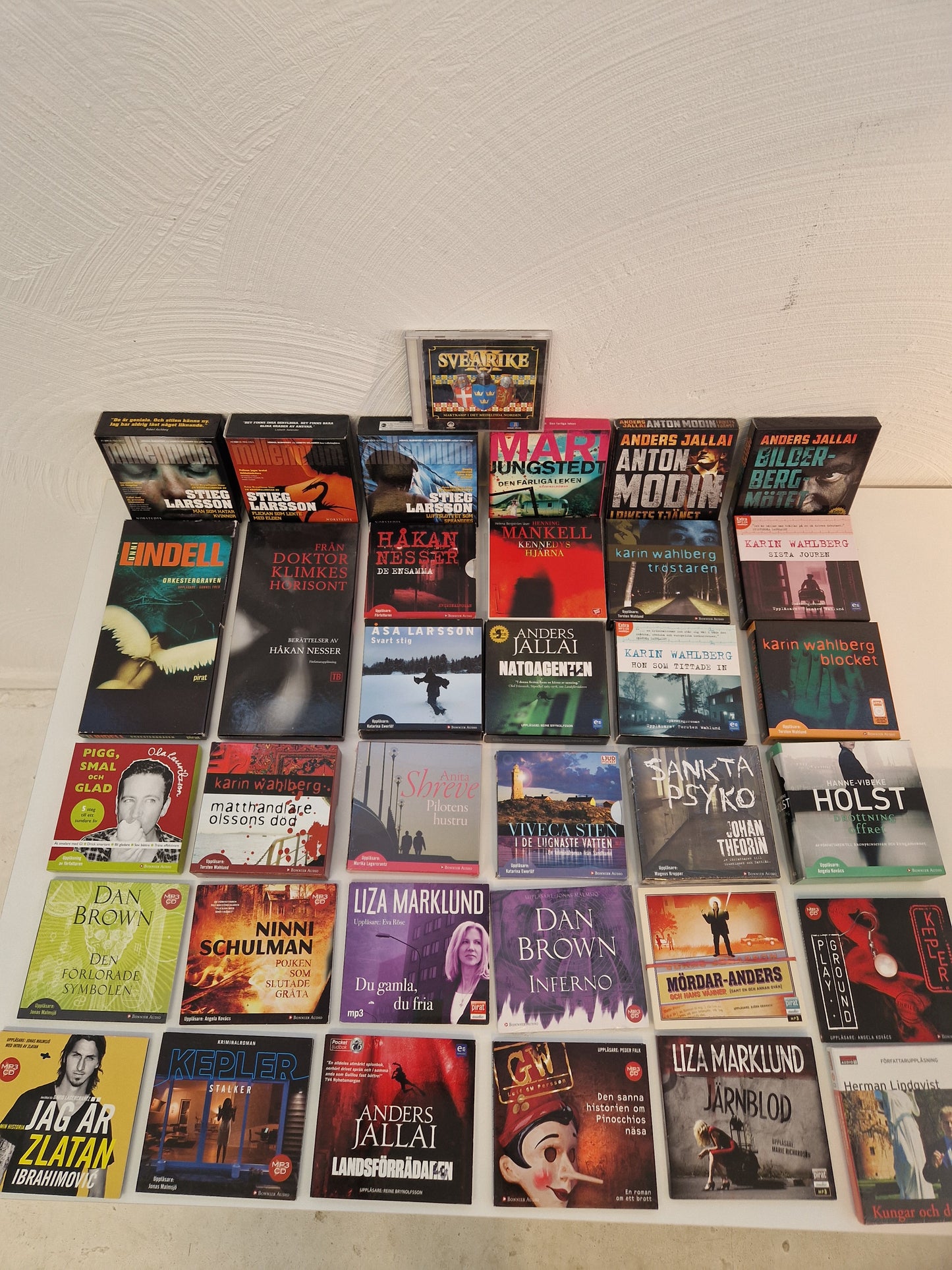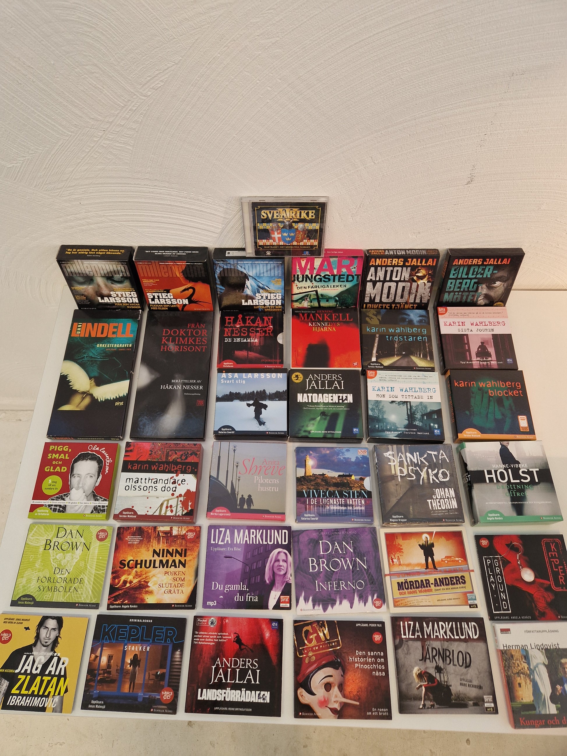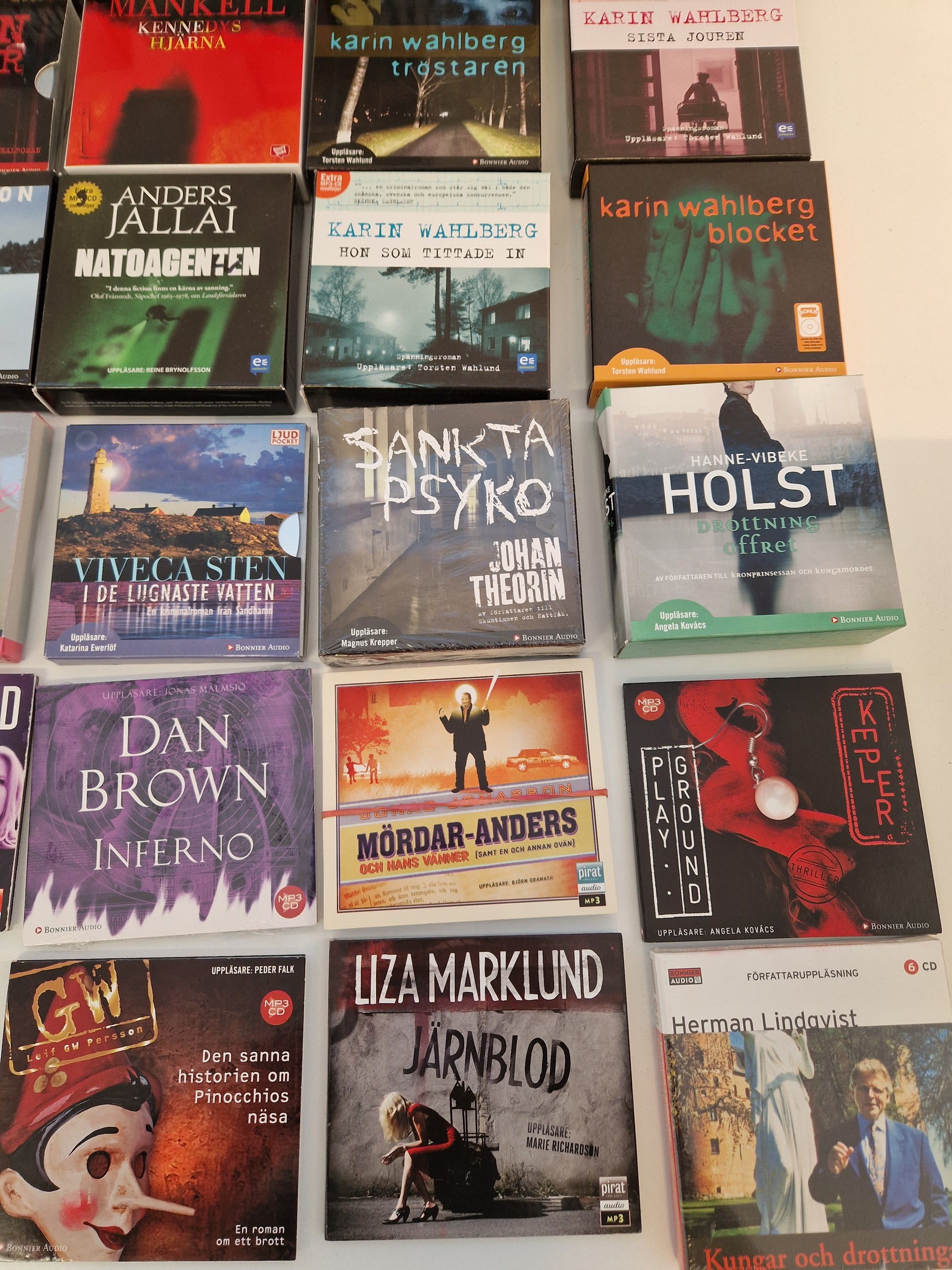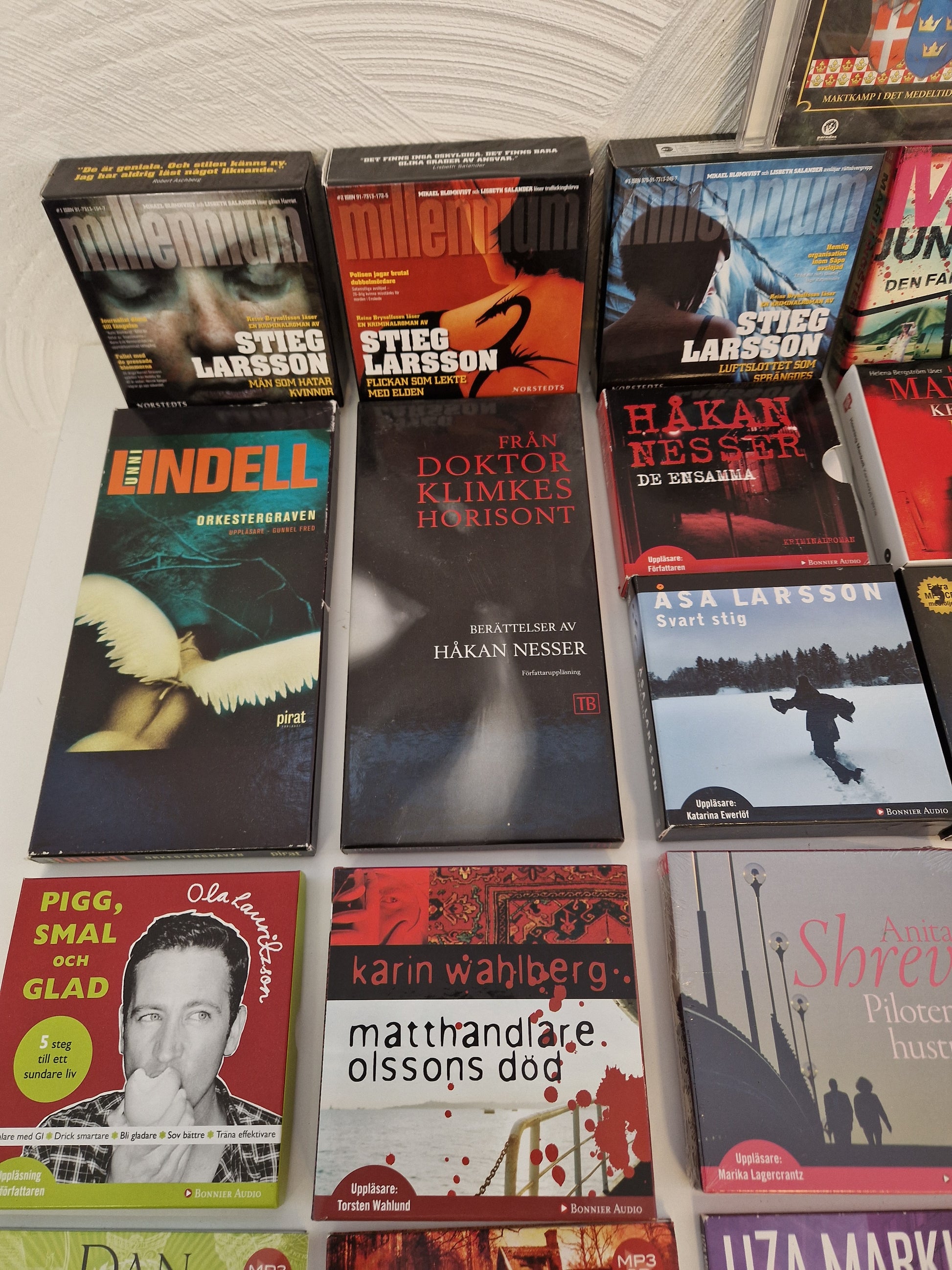 34st ljudböcker av varierande författare och uppläsare, bl.a. Millenniumtriologin.