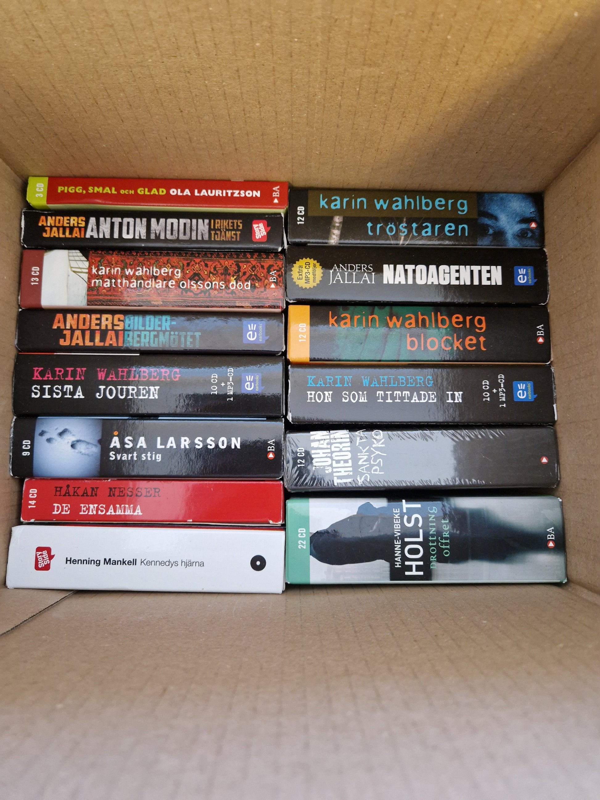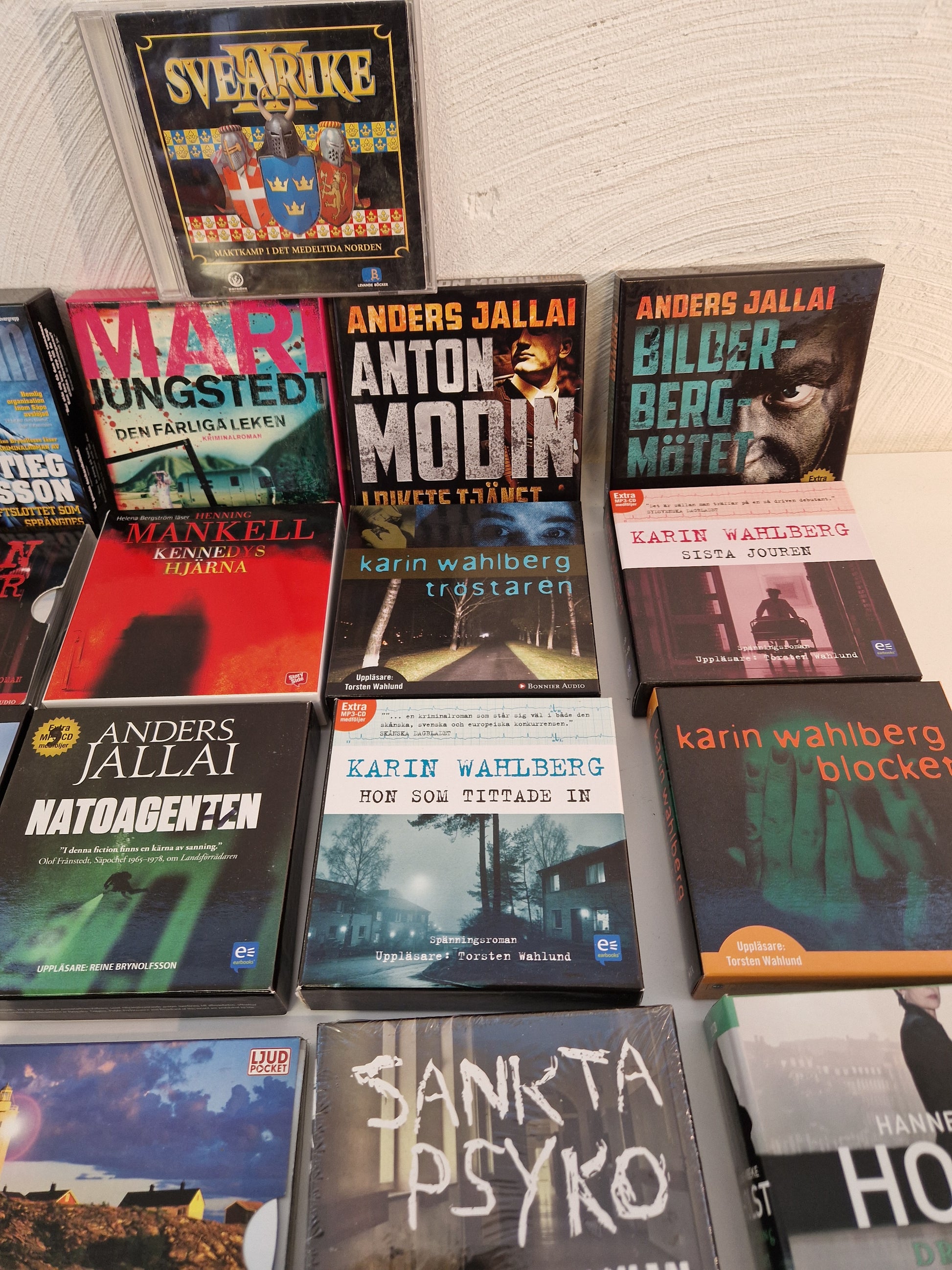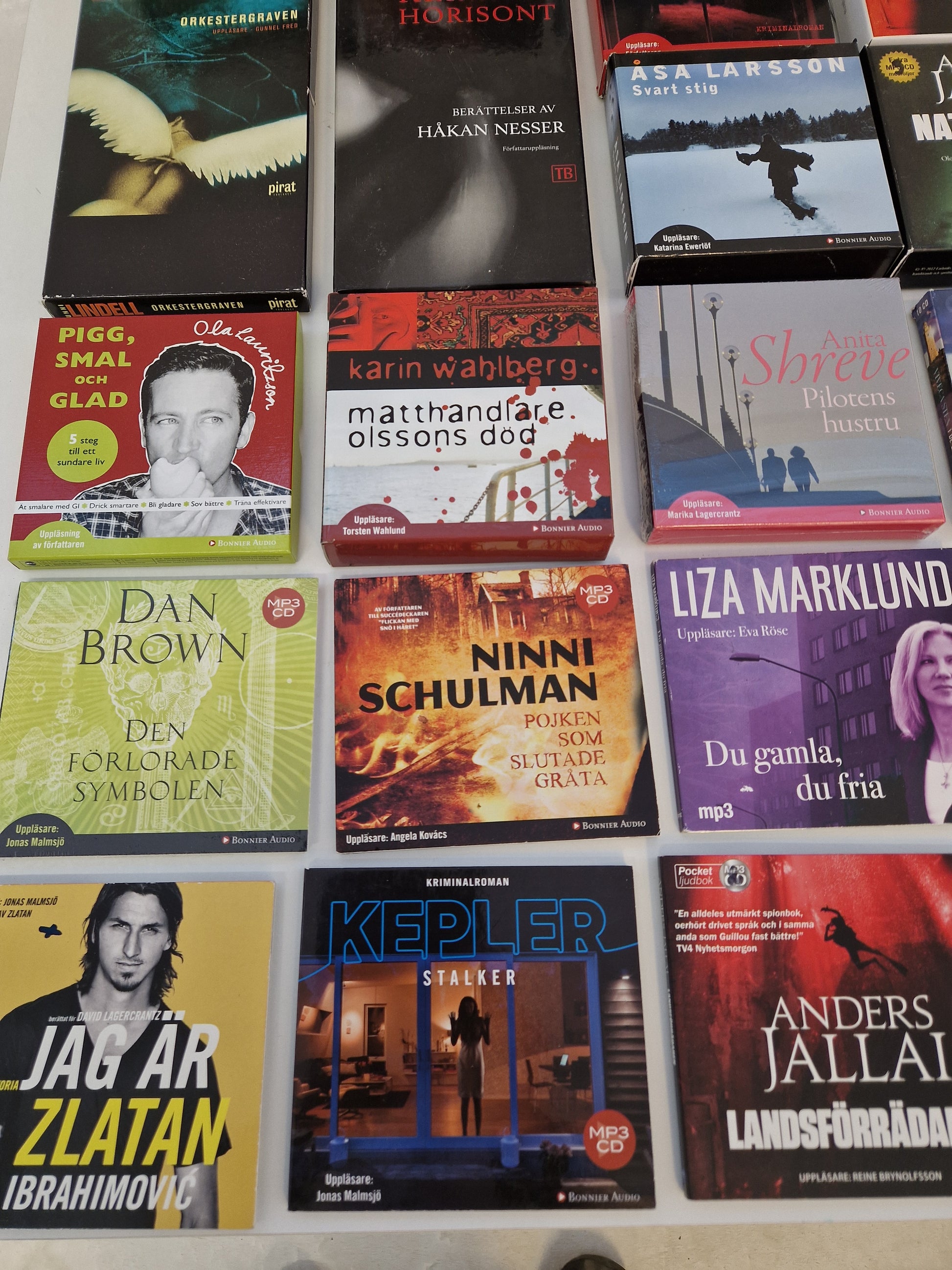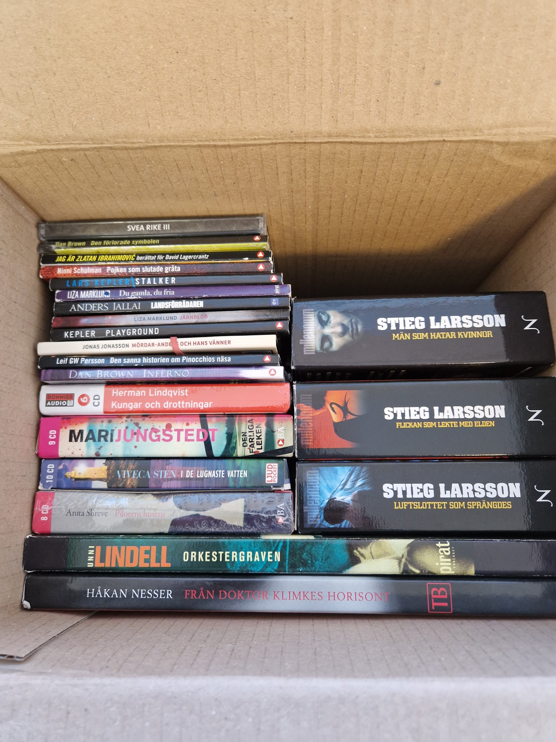 34st ljudböcker av varierande författare och uppläsare, bl.a. Millenniumtriologin.