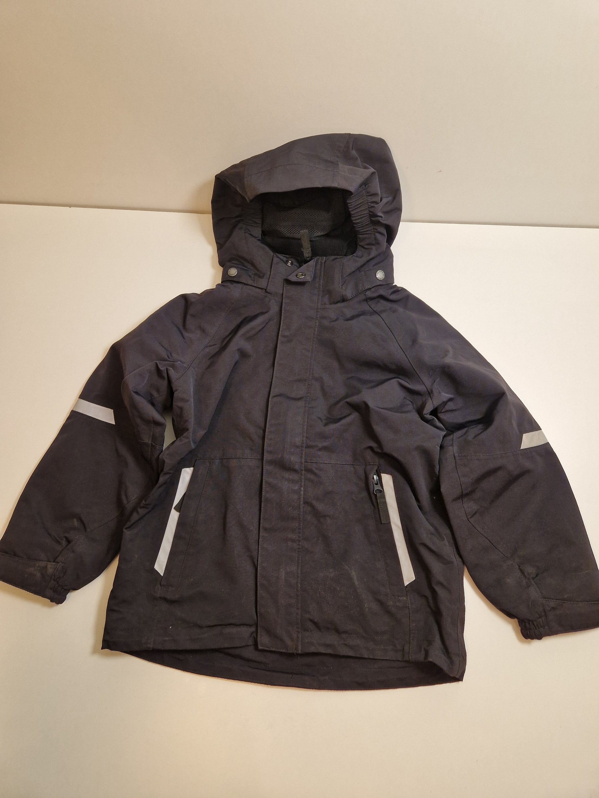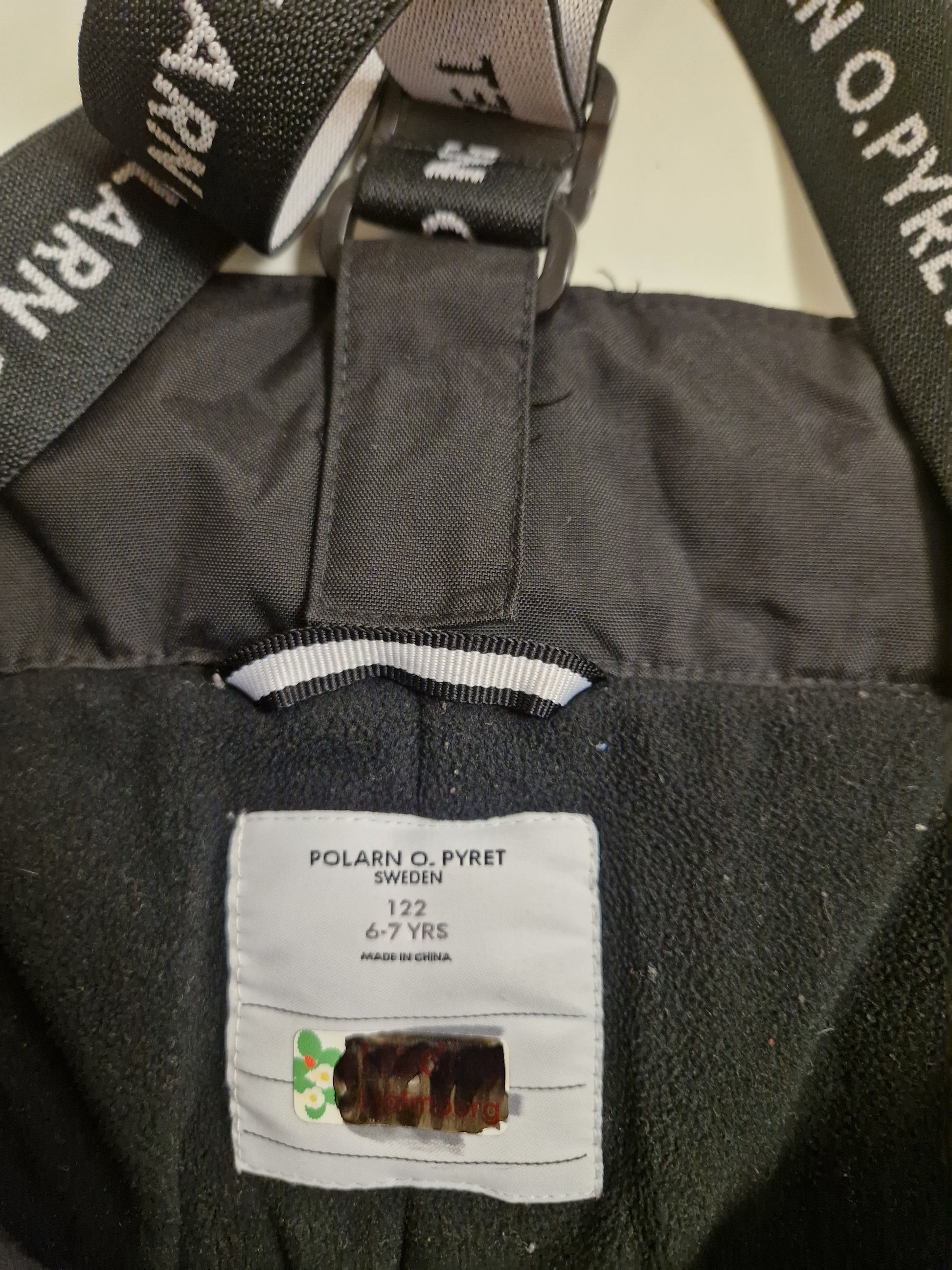 Svart jacka och byxa från Polarn O. Pyret i storlek 122/6-7år. Bra skick men slitet i benslut.