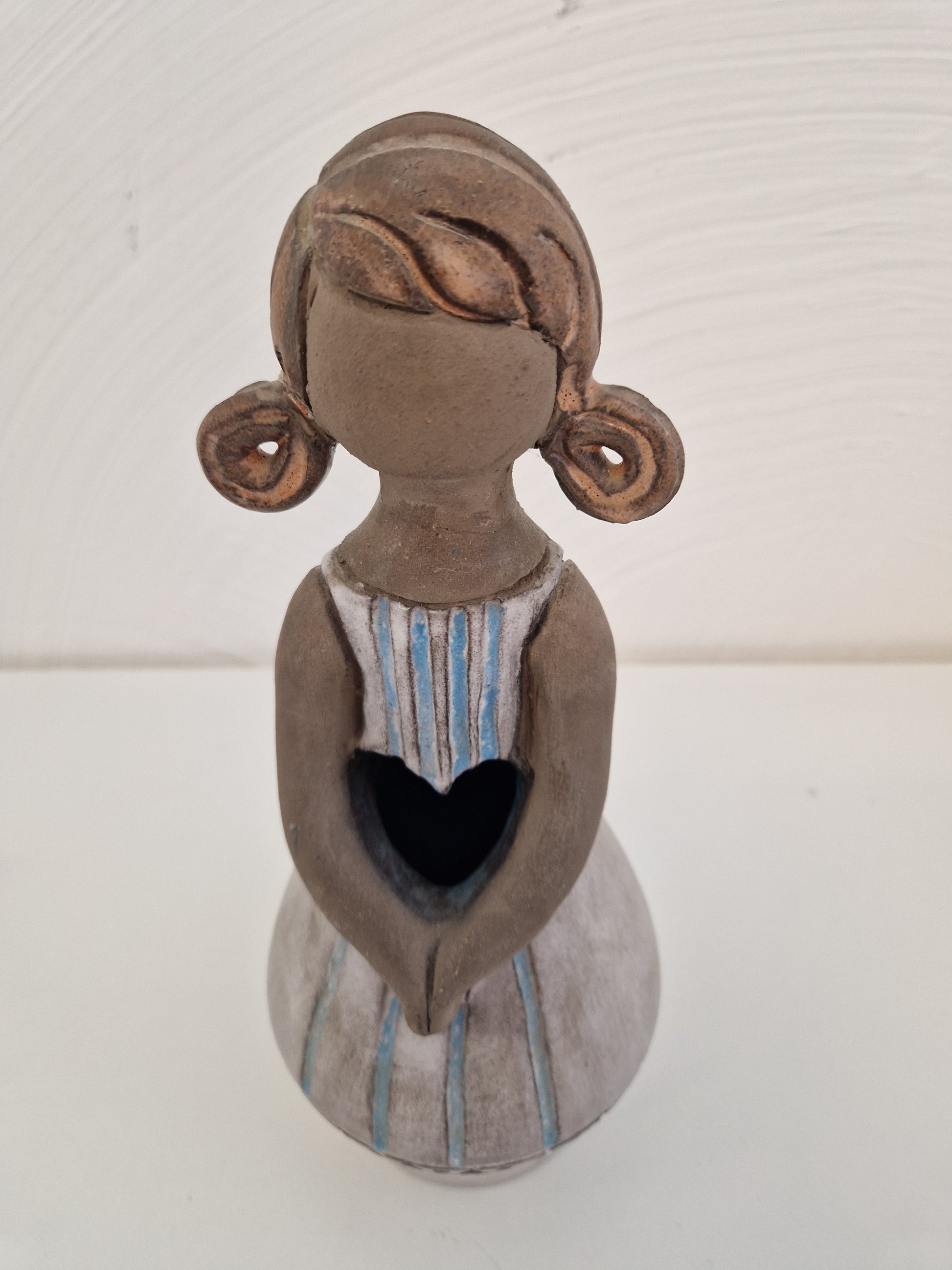 Flicka, höjd ca 27cm, med hål i magen med form av ett hjärta. "Elbogen".