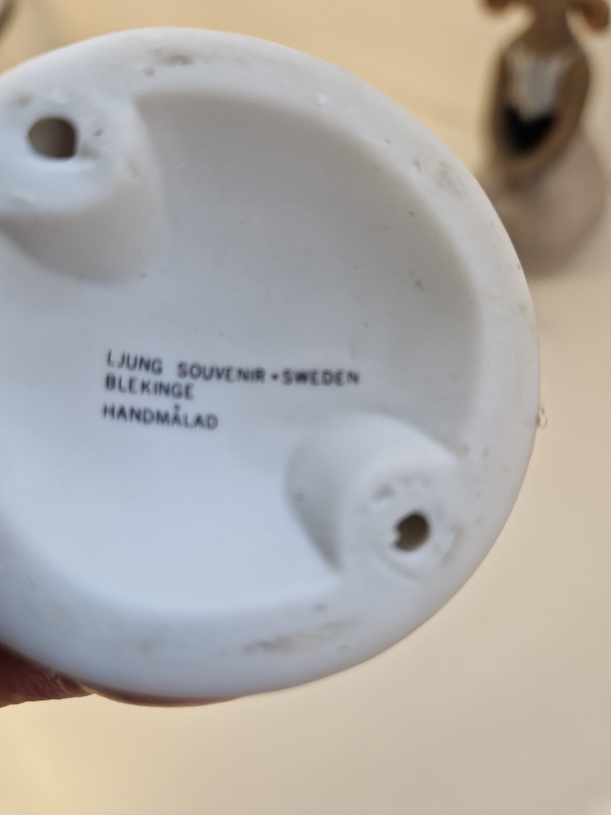 Kvinna & man i par, höjd 14 & 15cm, Ljungby souvenir Blekinge. Handmålade.
