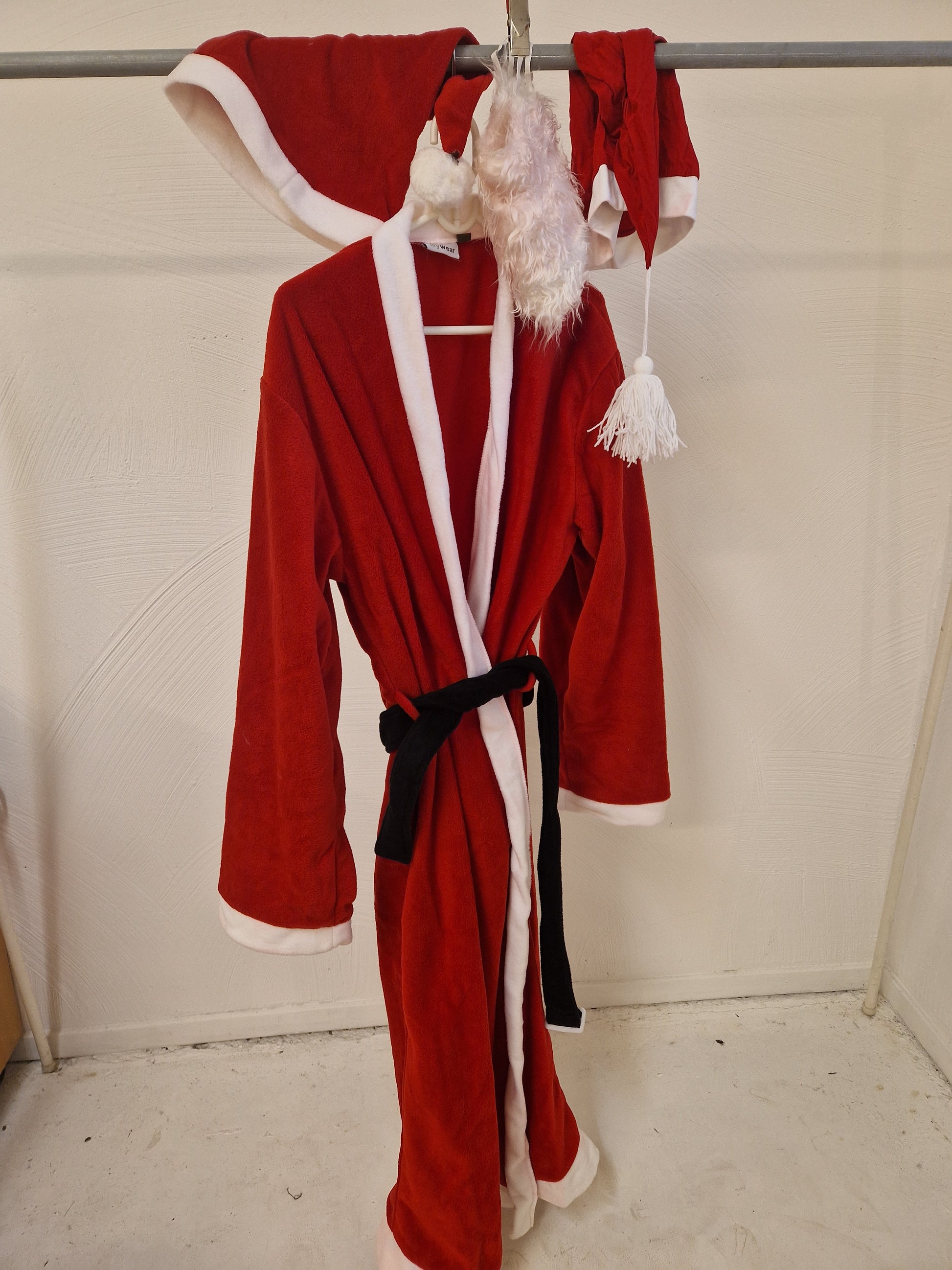 Tomtedräkt med 2 luvor och skägg. Stl. one size, men passar herrar (och damer) upp till medium.
