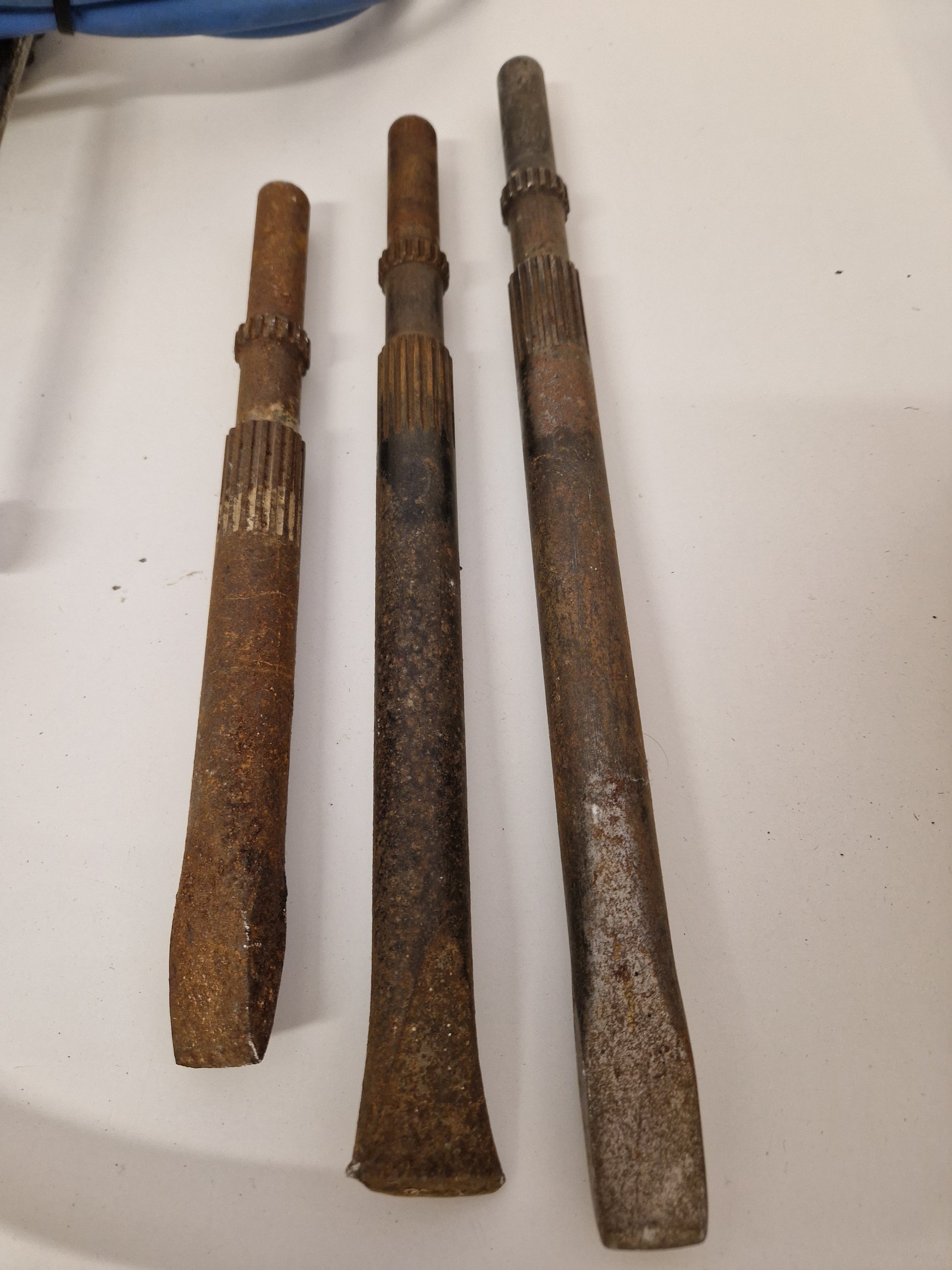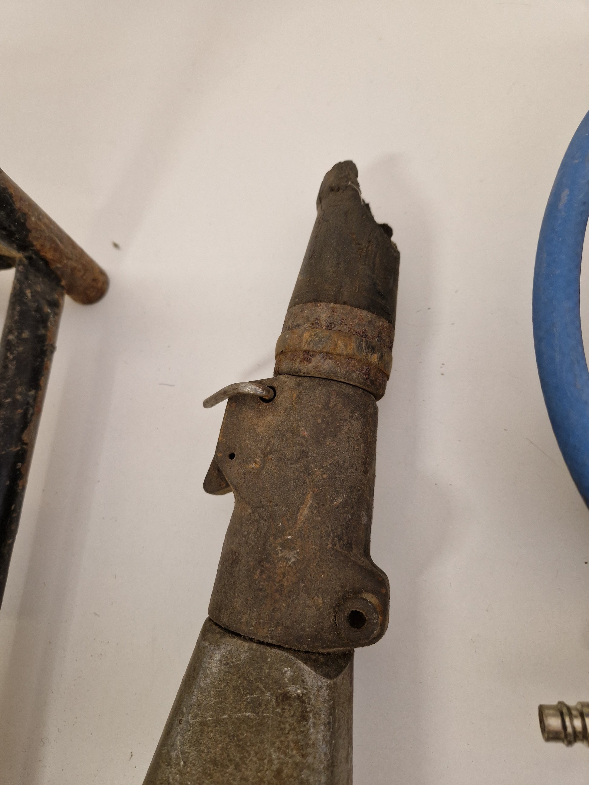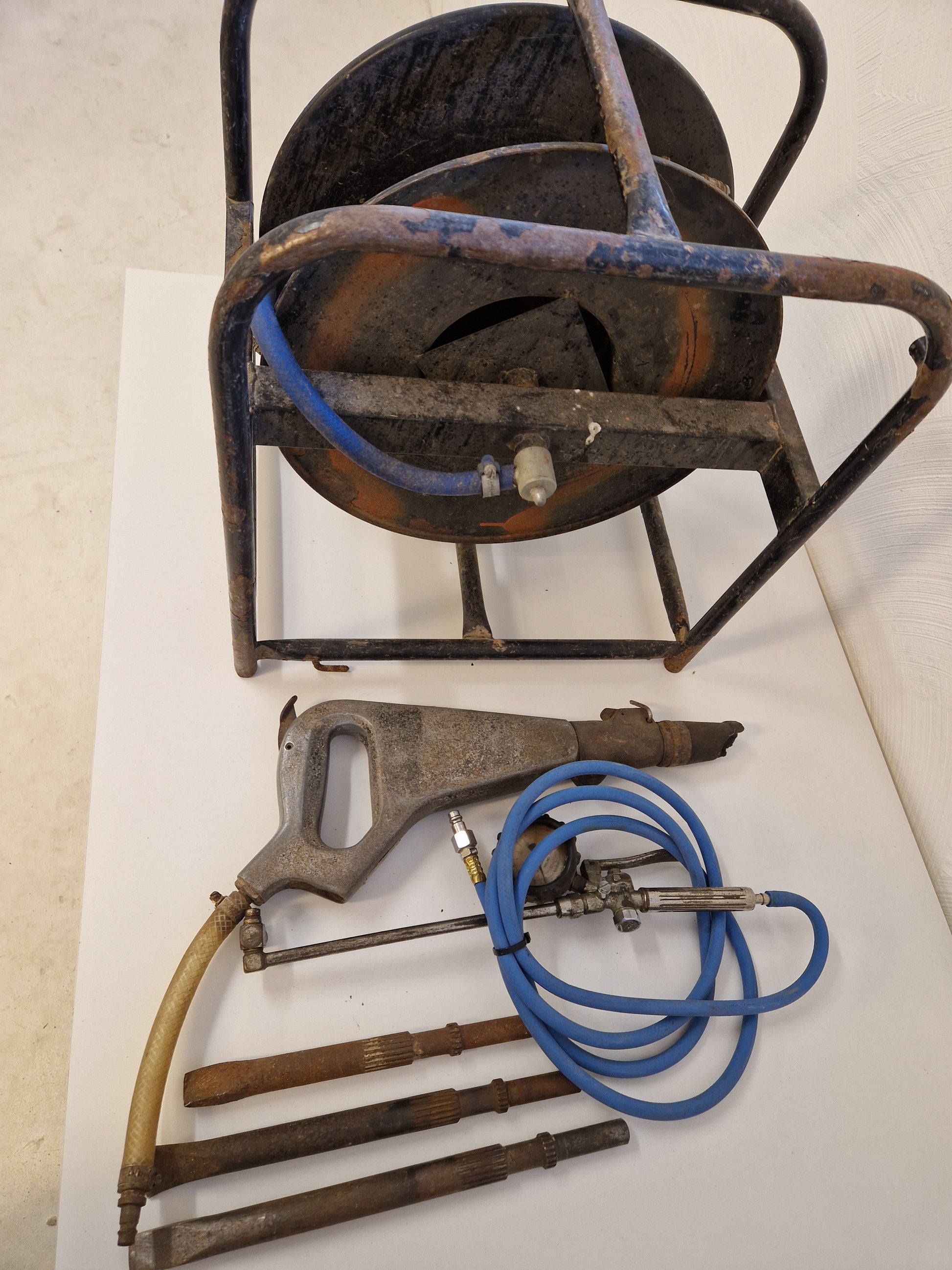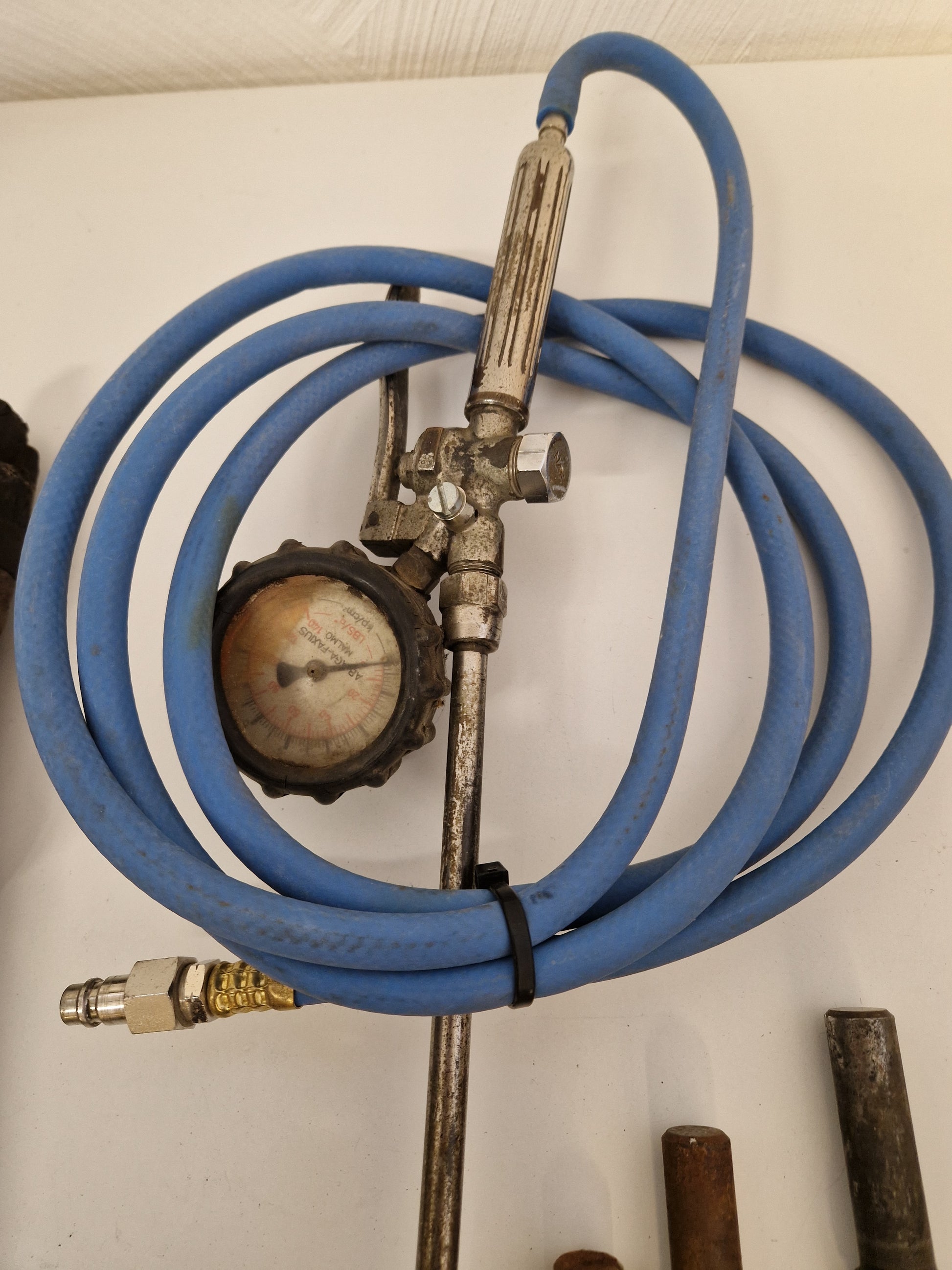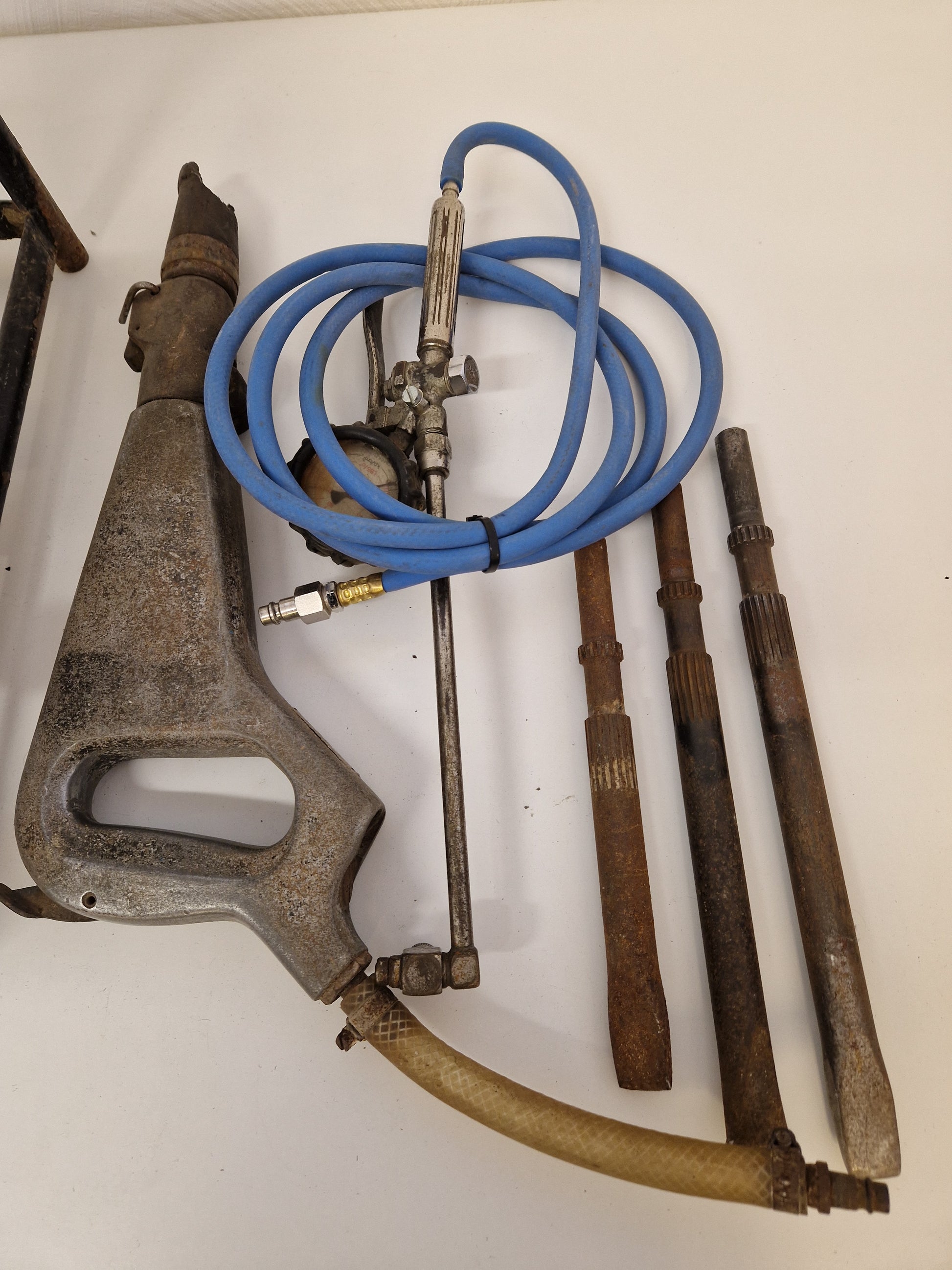Kraftig bilningshammare för tryckluft med 3st flatmejslar. Fungerar vid lättare test.