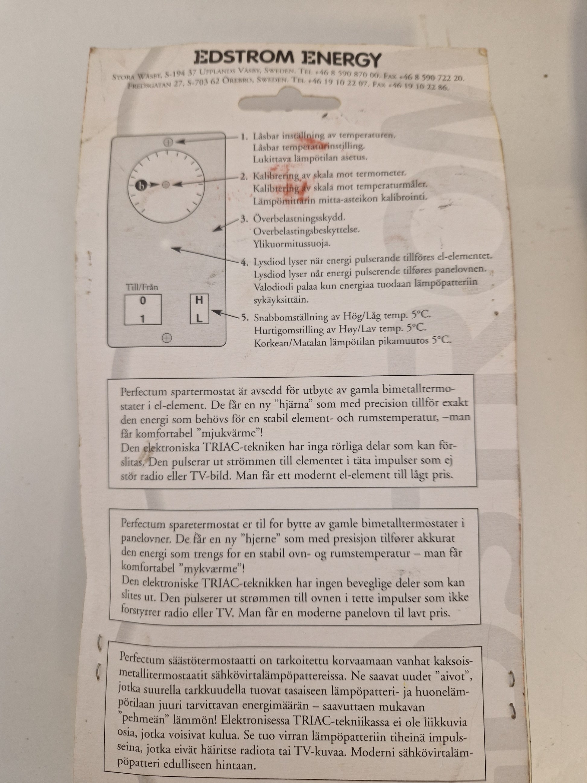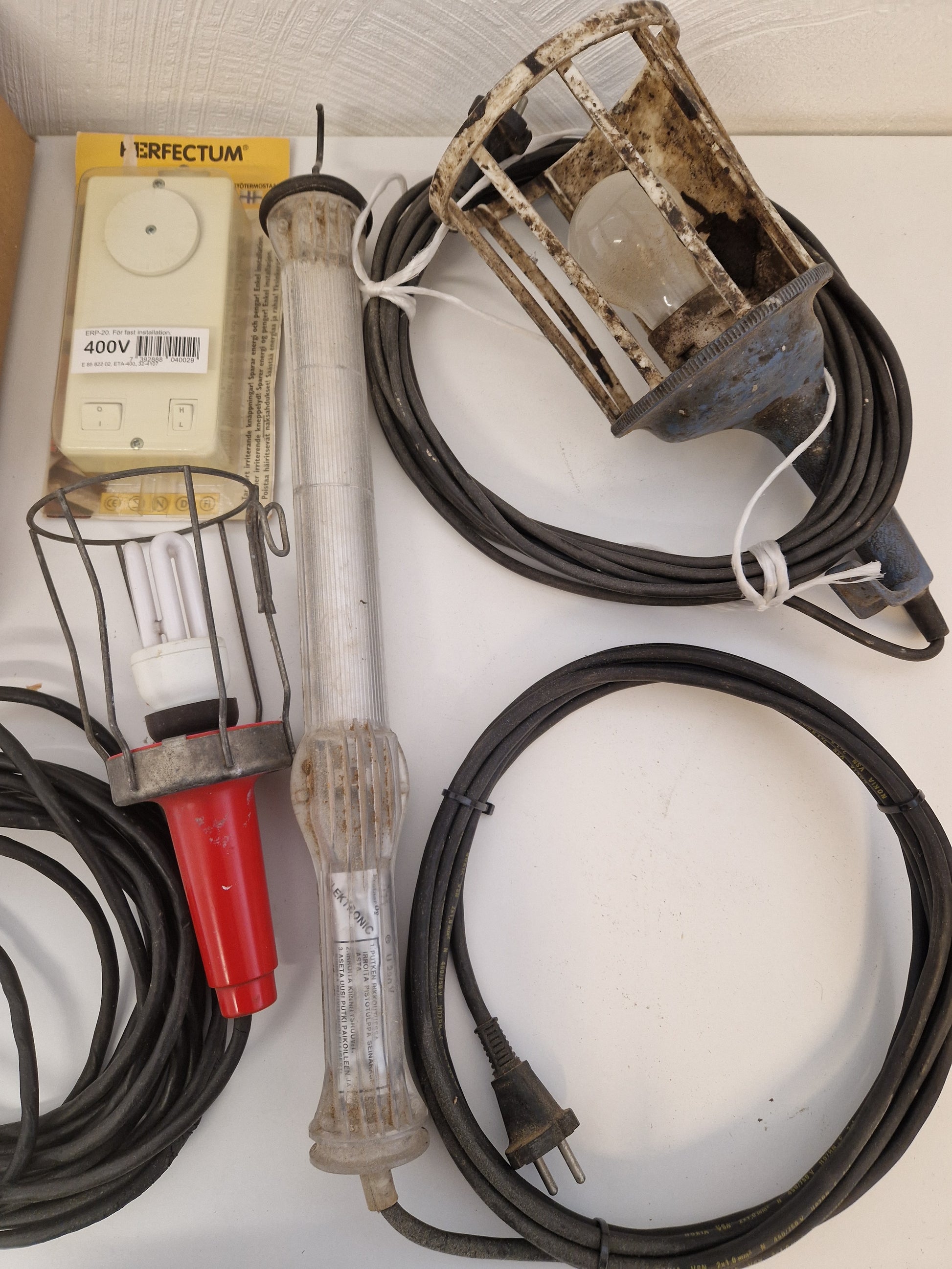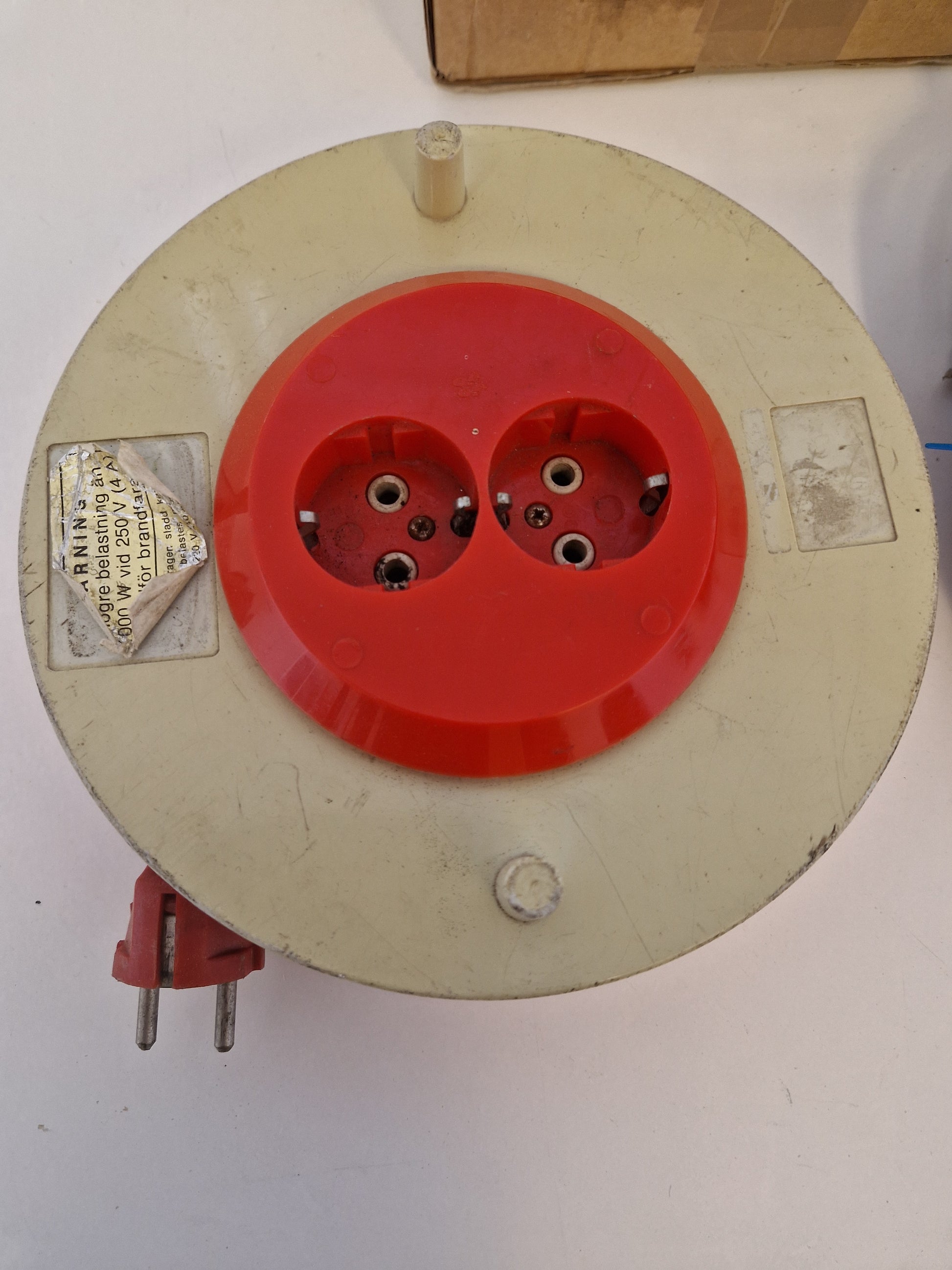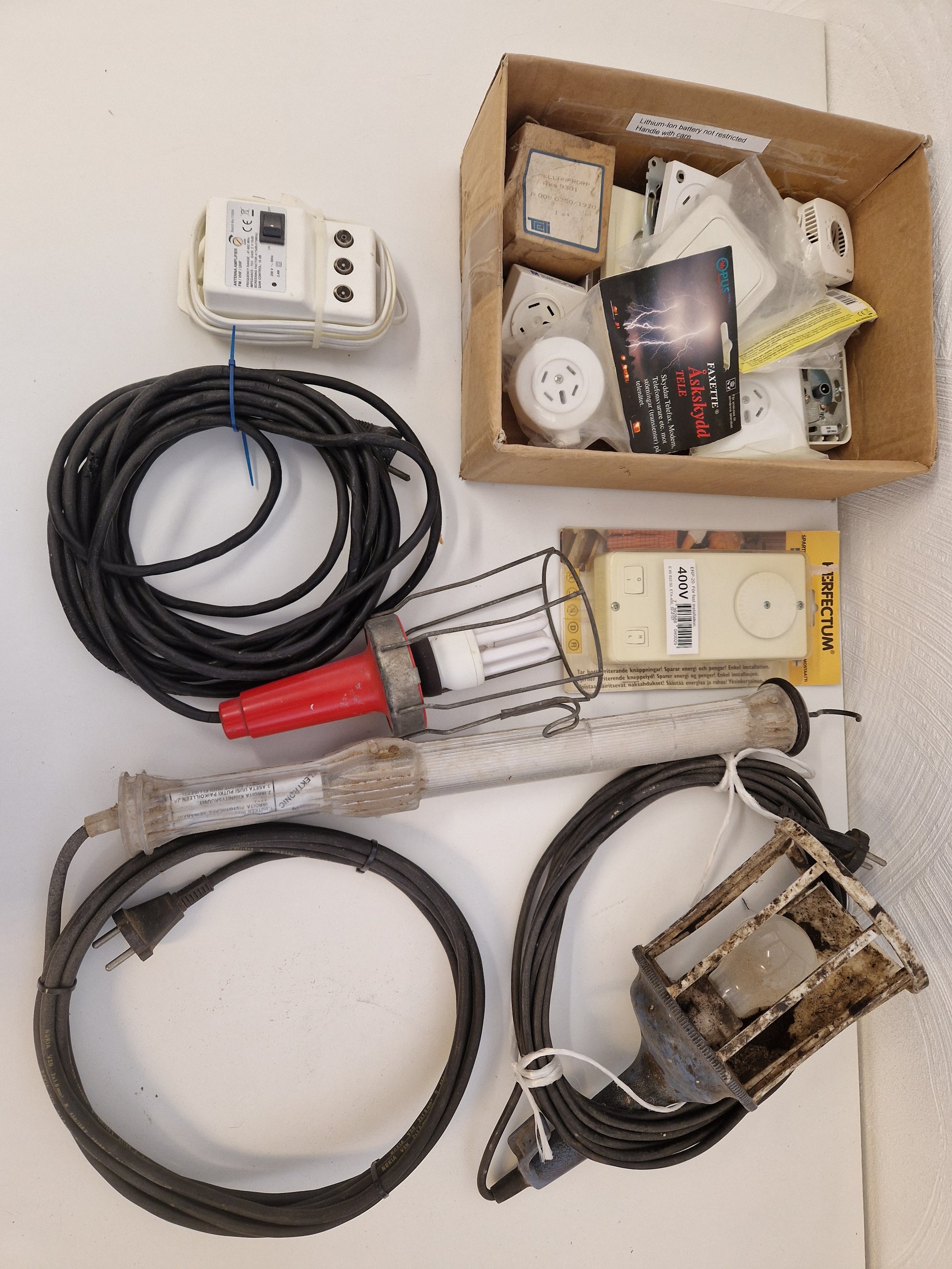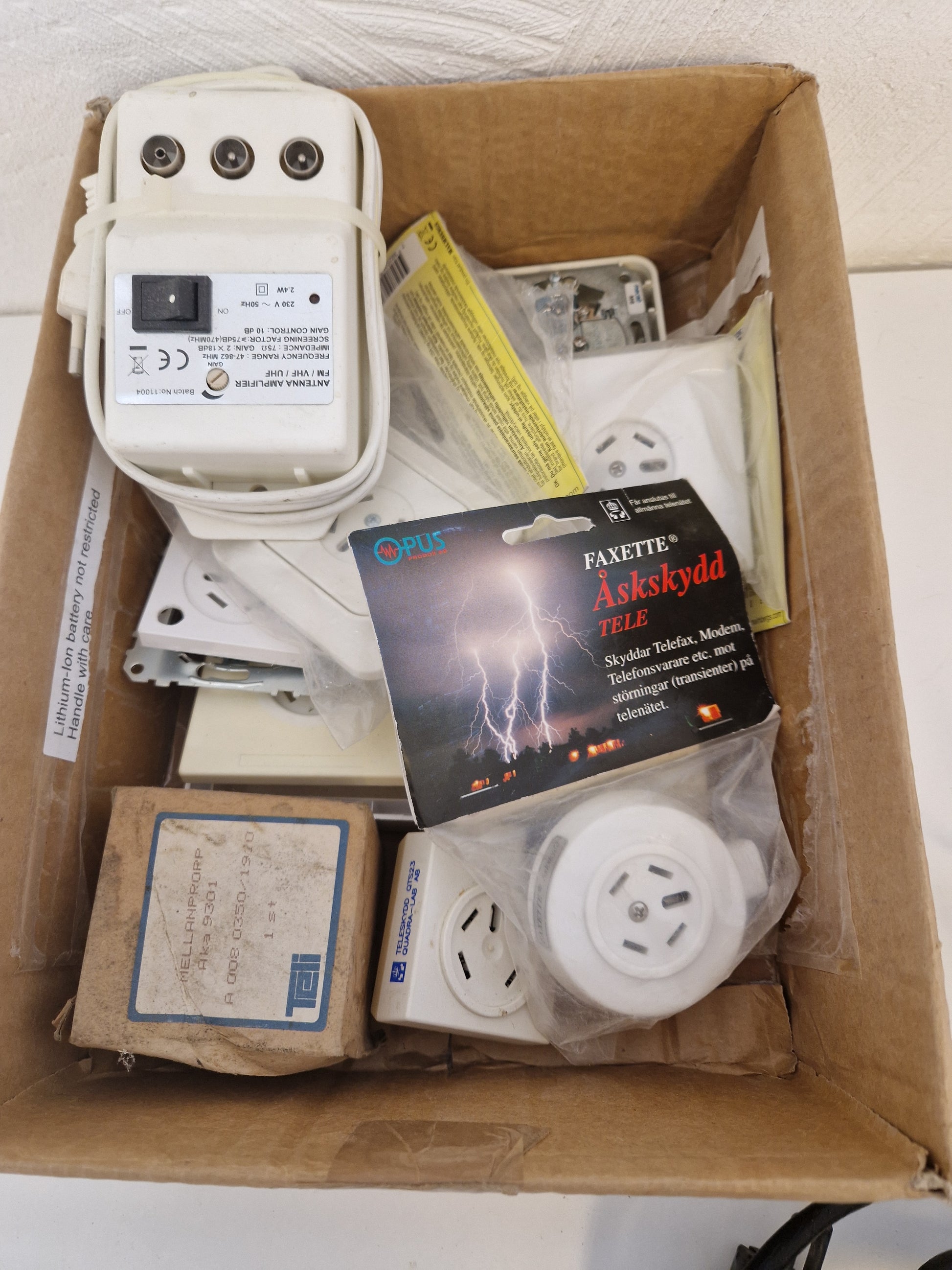 2 fungerande sladdlampor, 1 kabelvinda, åskskydd tele samt div teleuttag, signalförstärkare koax, spartermostat mm.