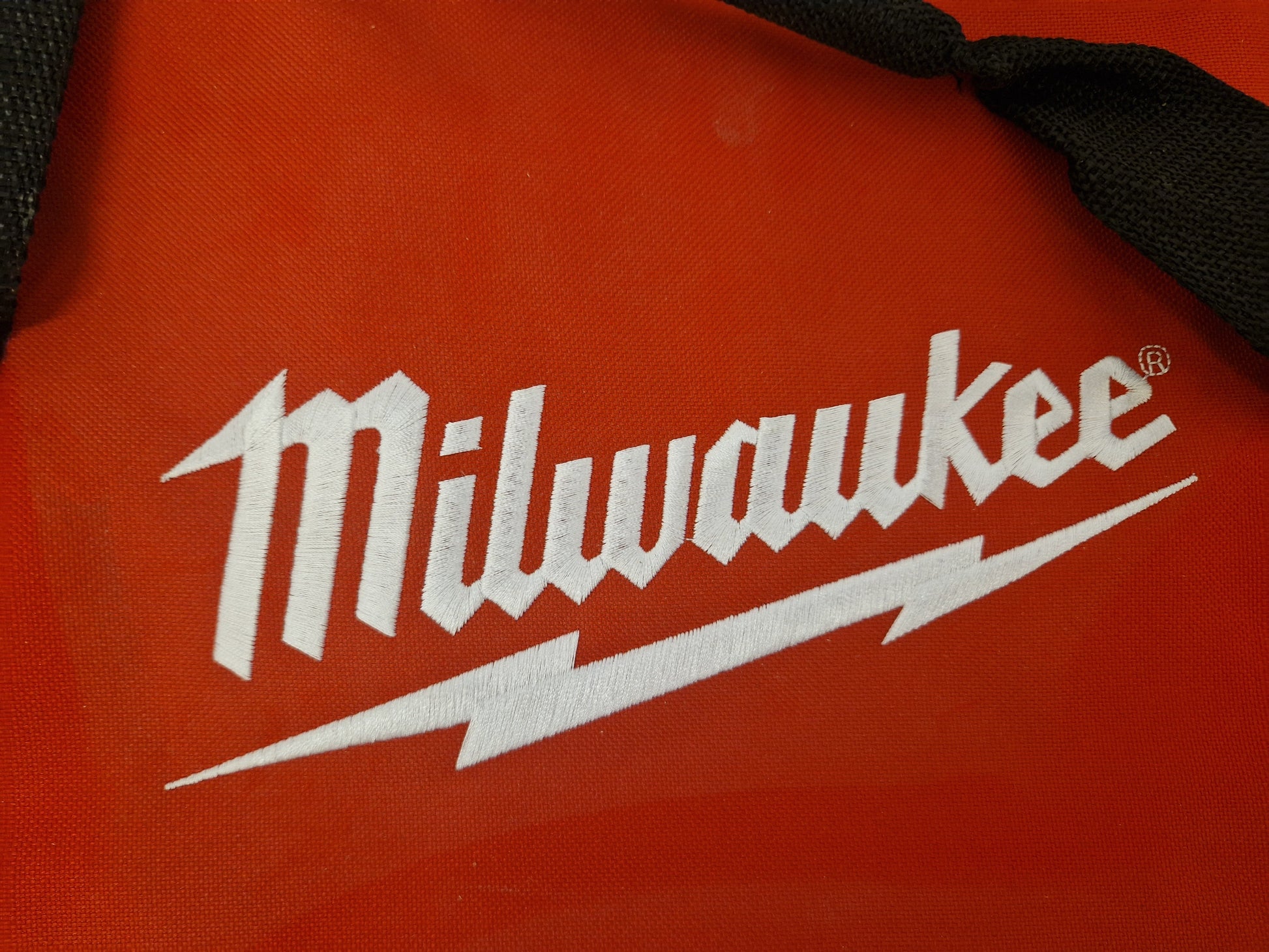 Milwaukee maskin- & verktygsväska i kraftigt canvastyg och medföljande axelrem.