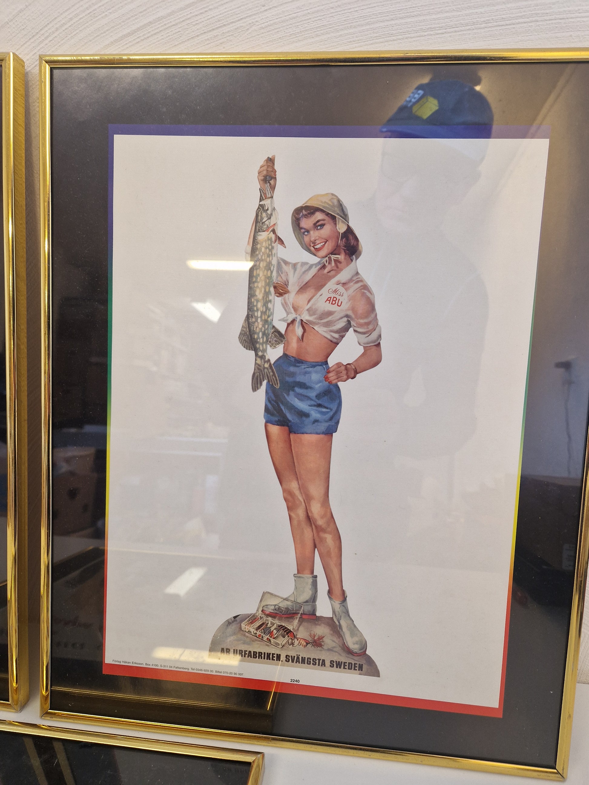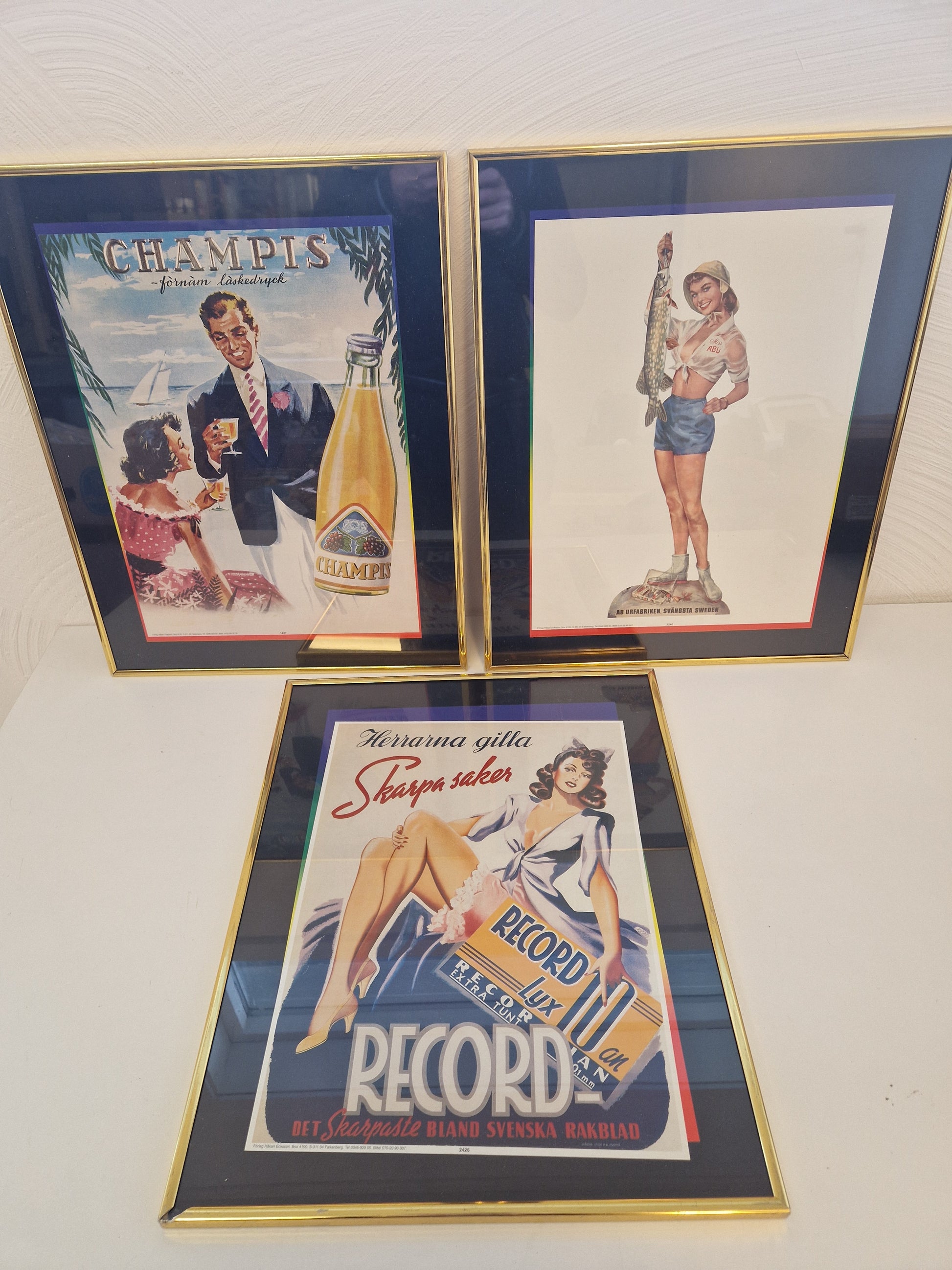 Tavlorna är glasade och ramarna guldfärgade. Tyvärr är den ena ramen skadad i nedre vänstra hörnet. Se bild.