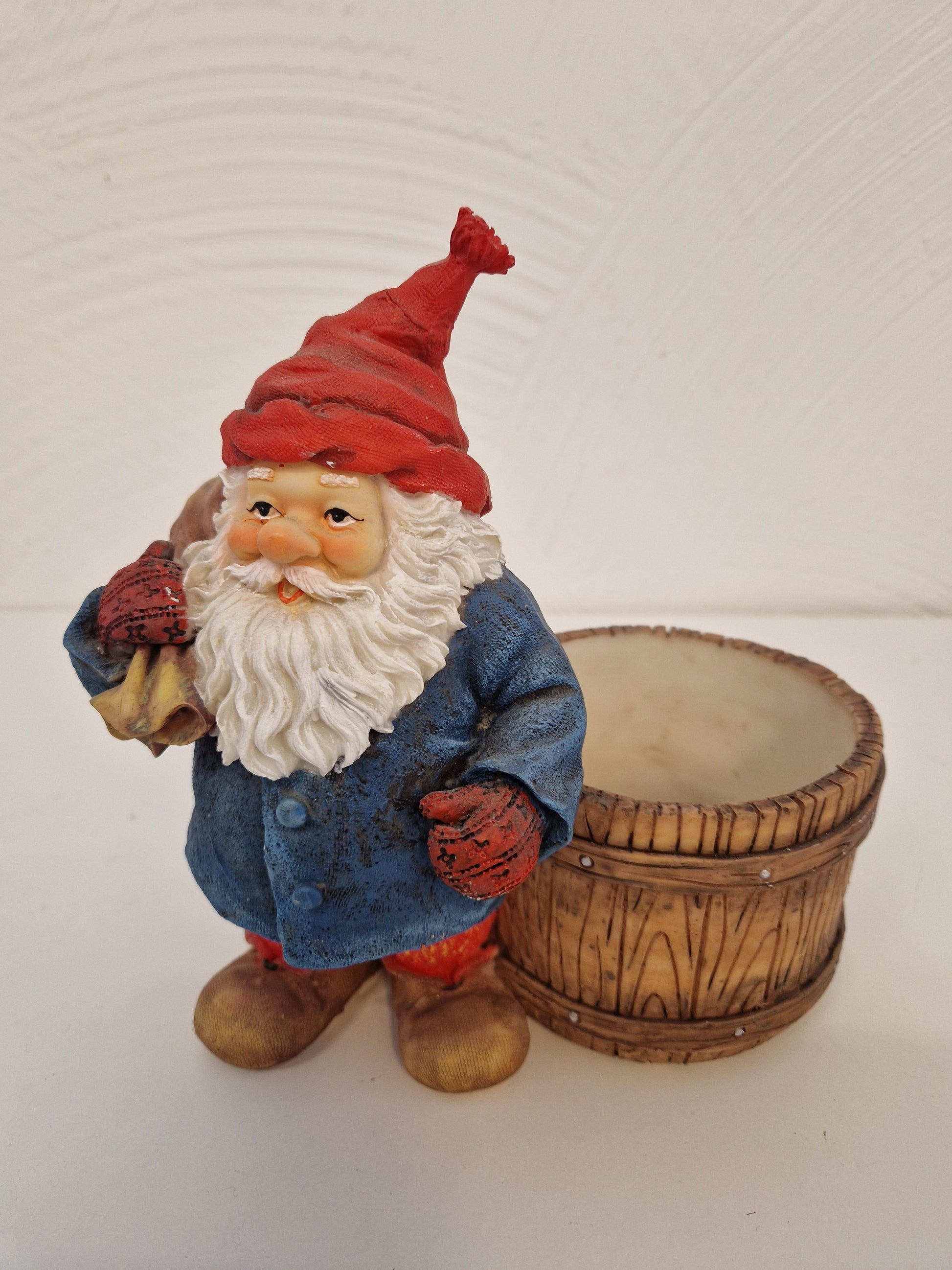 Lilla tomten, från RA-Design, med balja/kruka för t.ex. godis eller blommor, mäter ca 21cm på höjden.