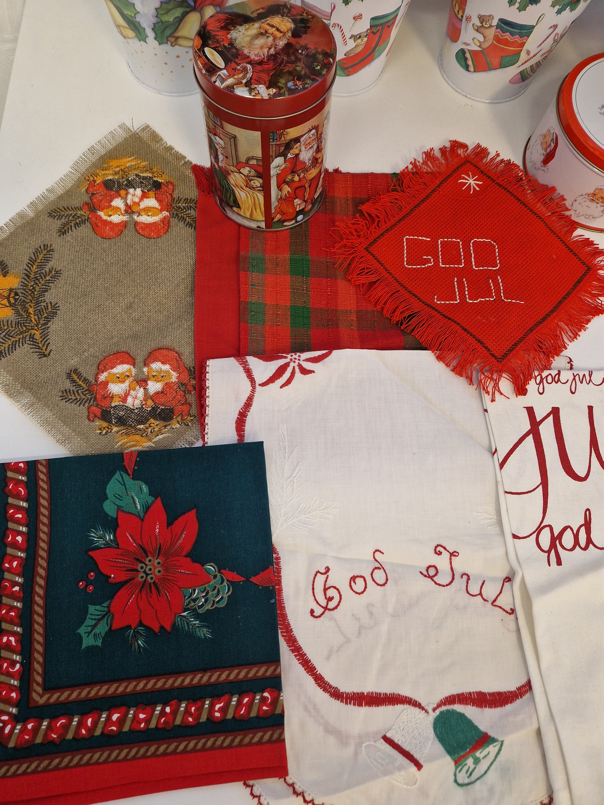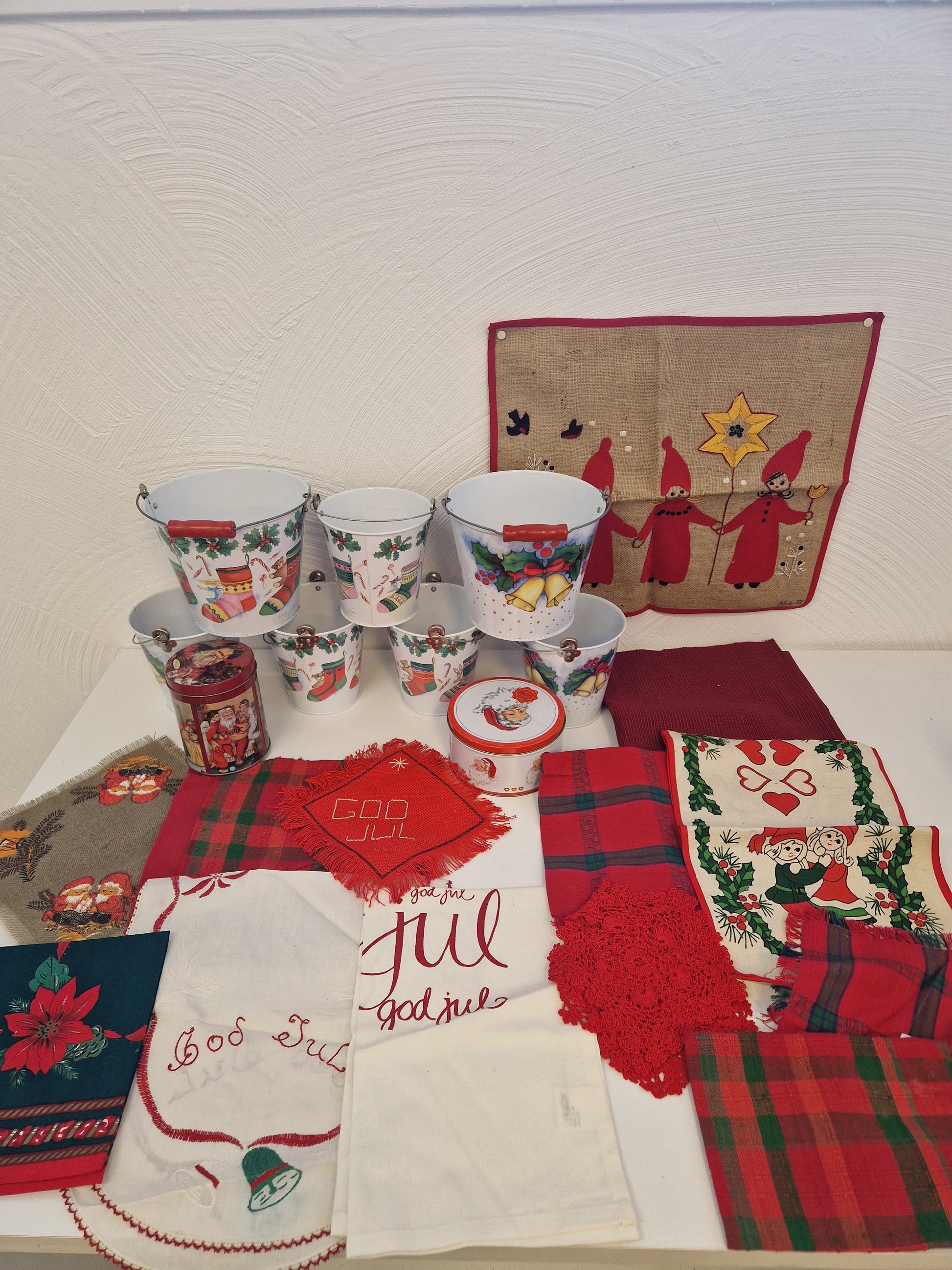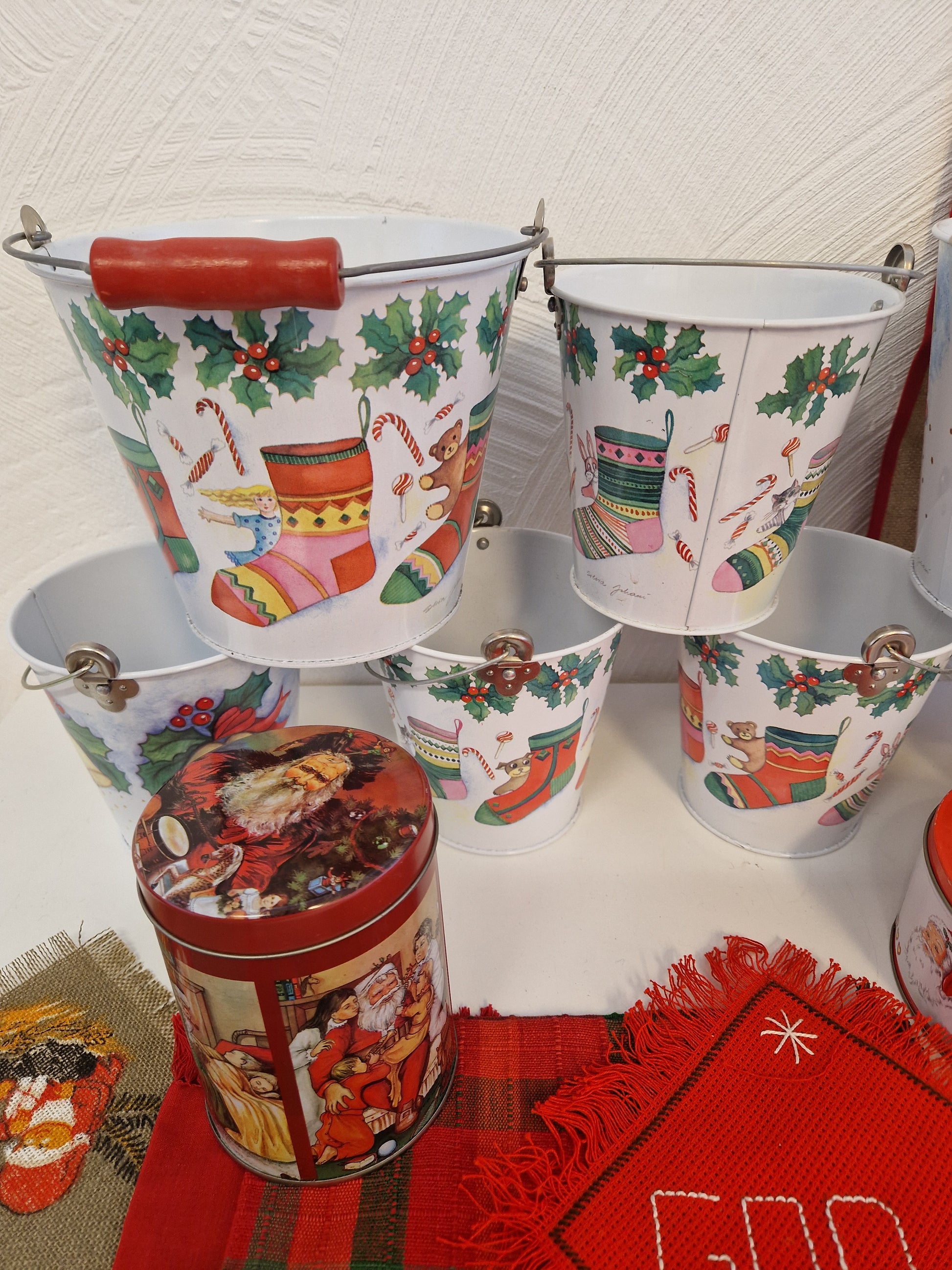 2st hinkar , 17cm höga, 5st som mäter 13cm, samtliga med julmotiv.