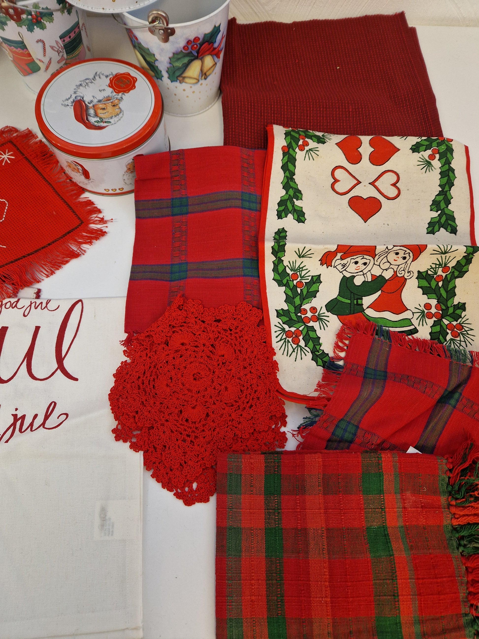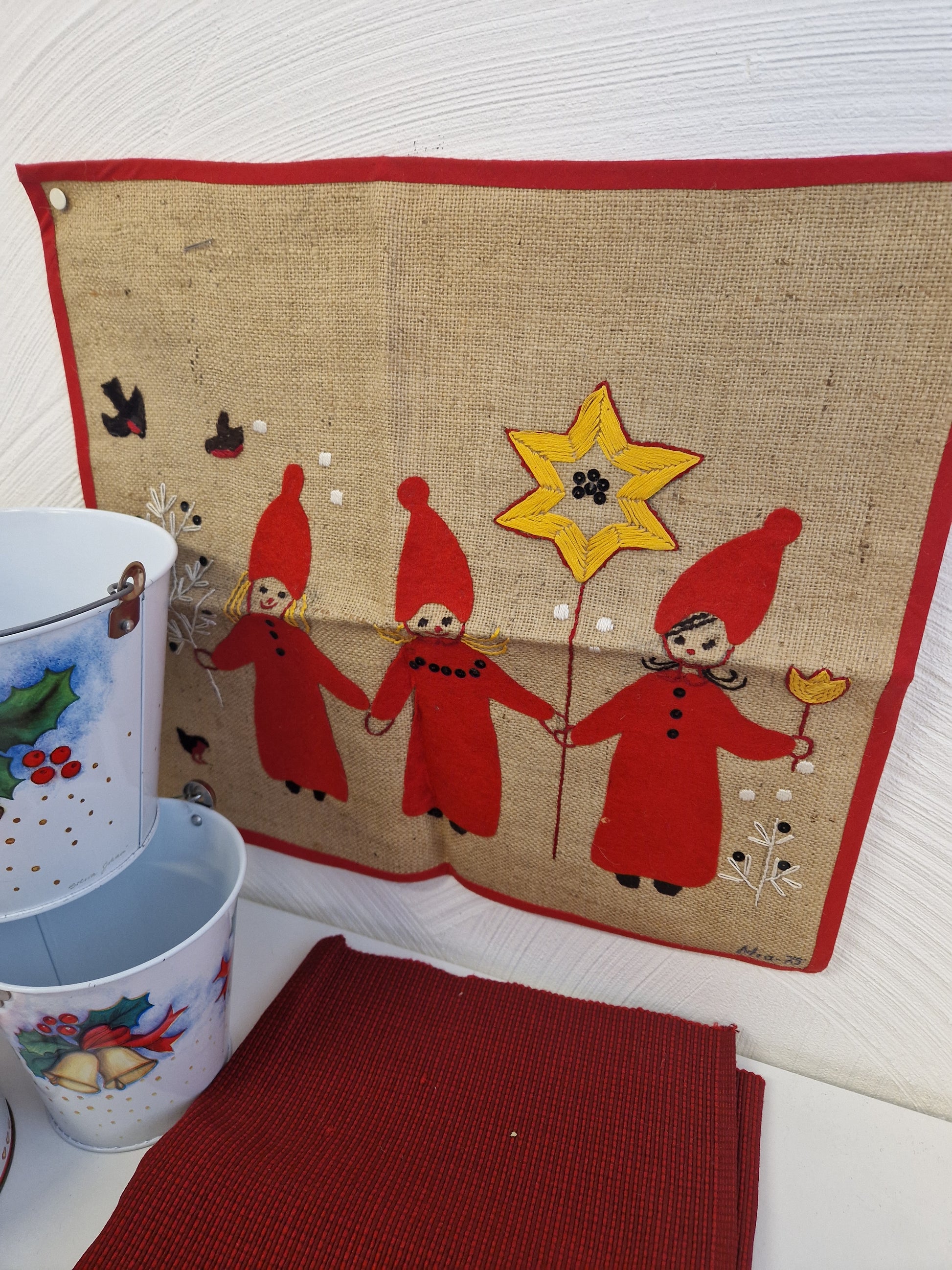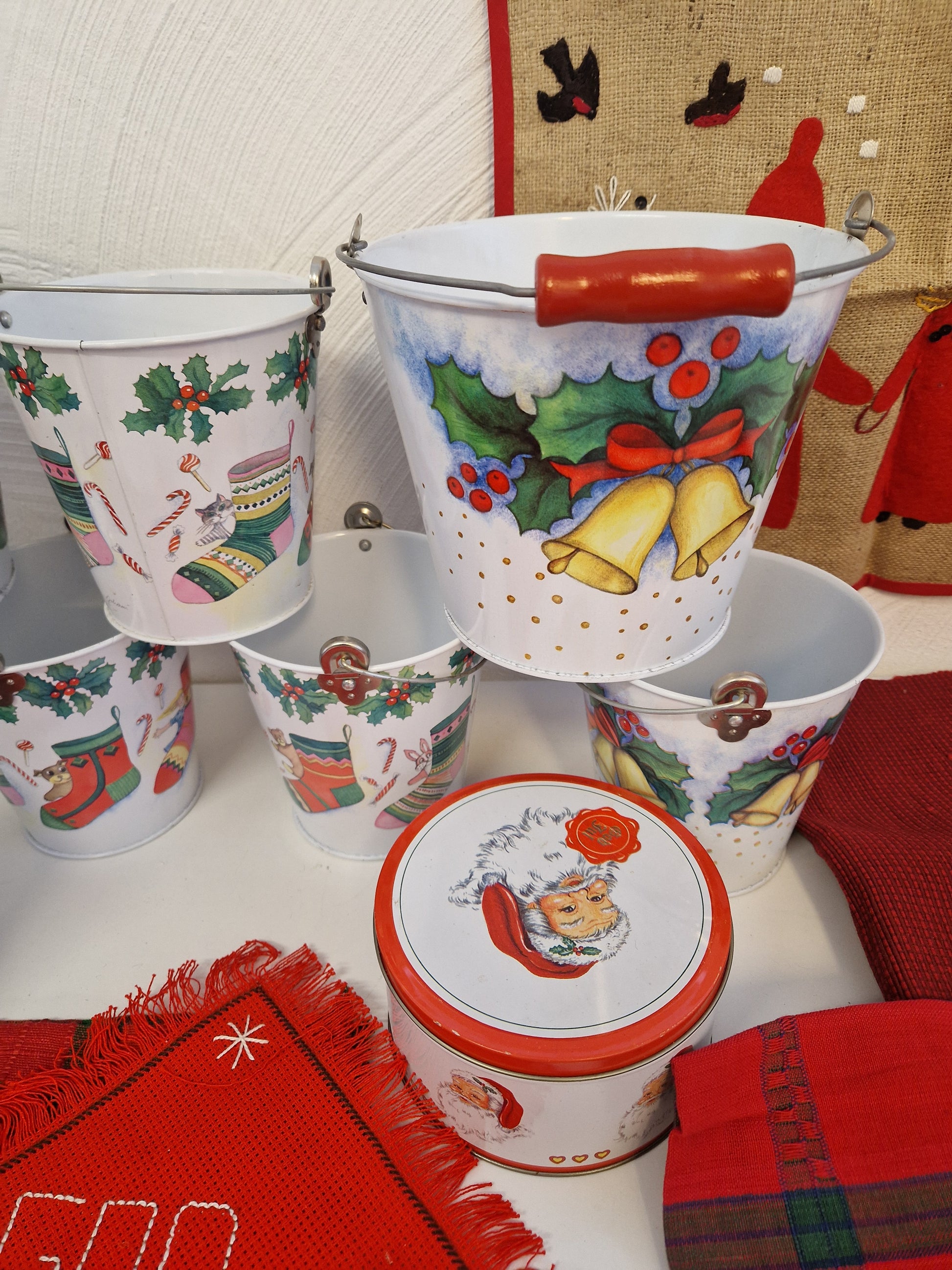 2st hinkar , 17cm höga, 5st som mäter 13cm, samtliga med julmotiv.
