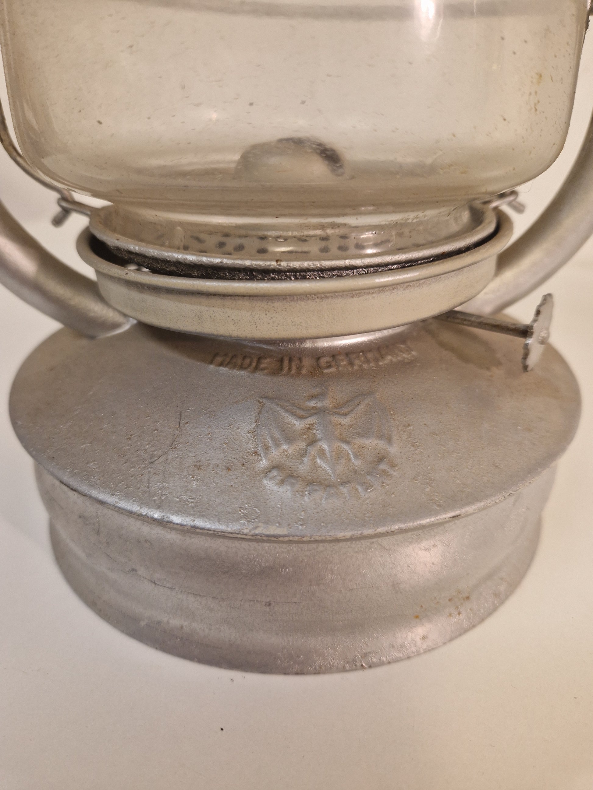 1 stormlykta, förmodligen målad med silverspray. Feuerhand? Made in Germany. Höjd ca 38cm.