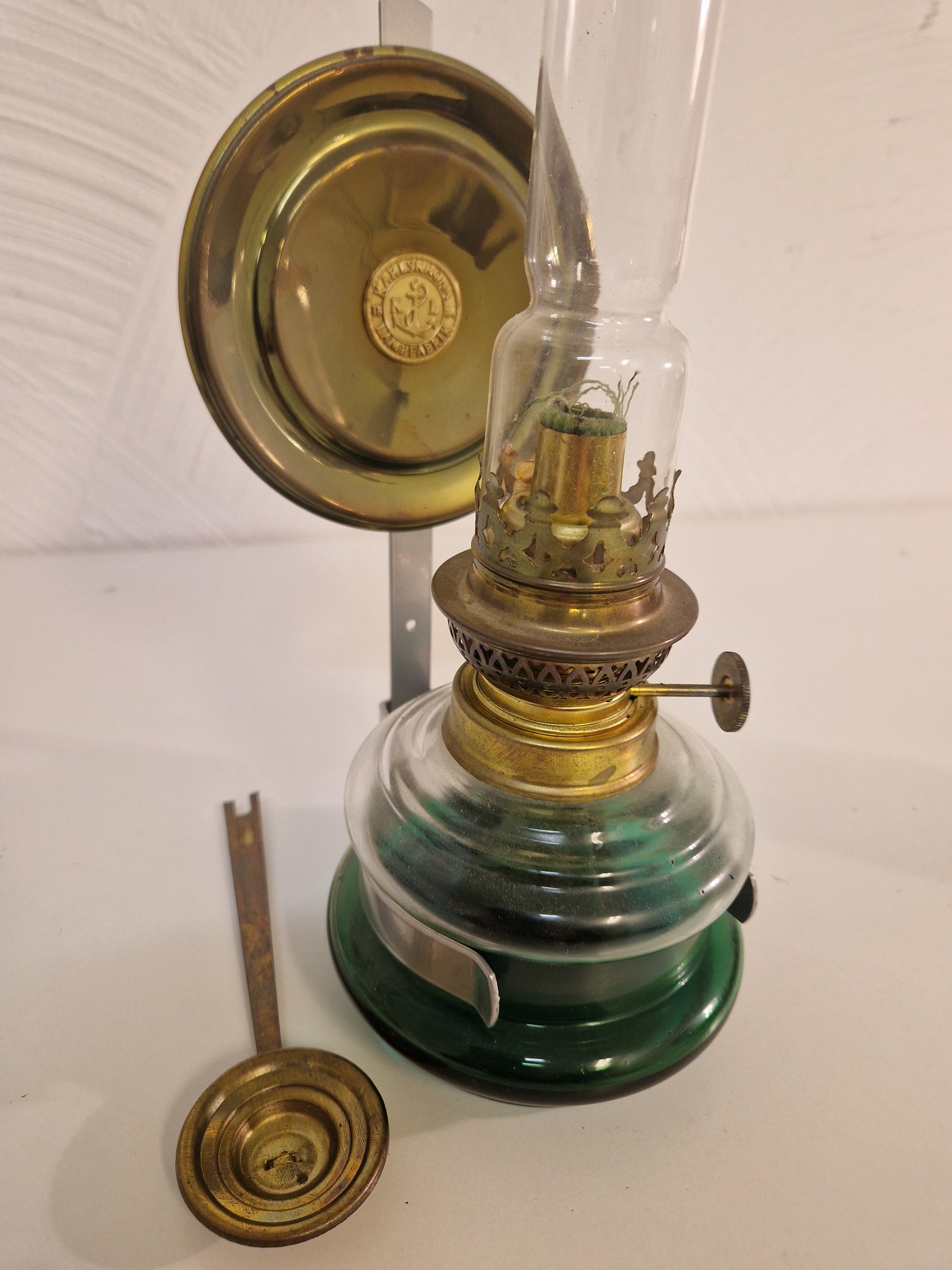 1 vägglykta från Karlskrona Lampfabrik. 1884. Höjd ca 38cm och i gott skick.