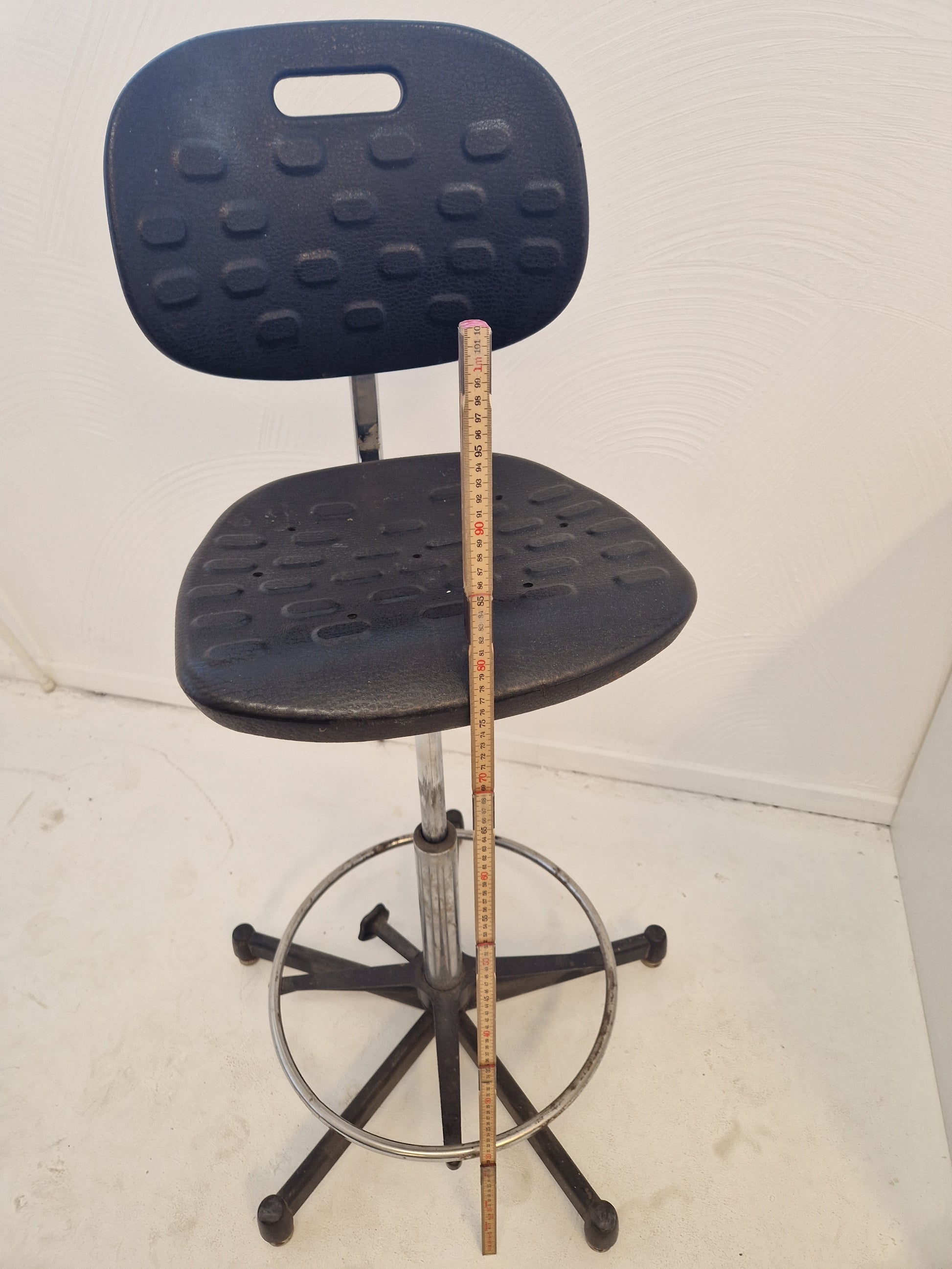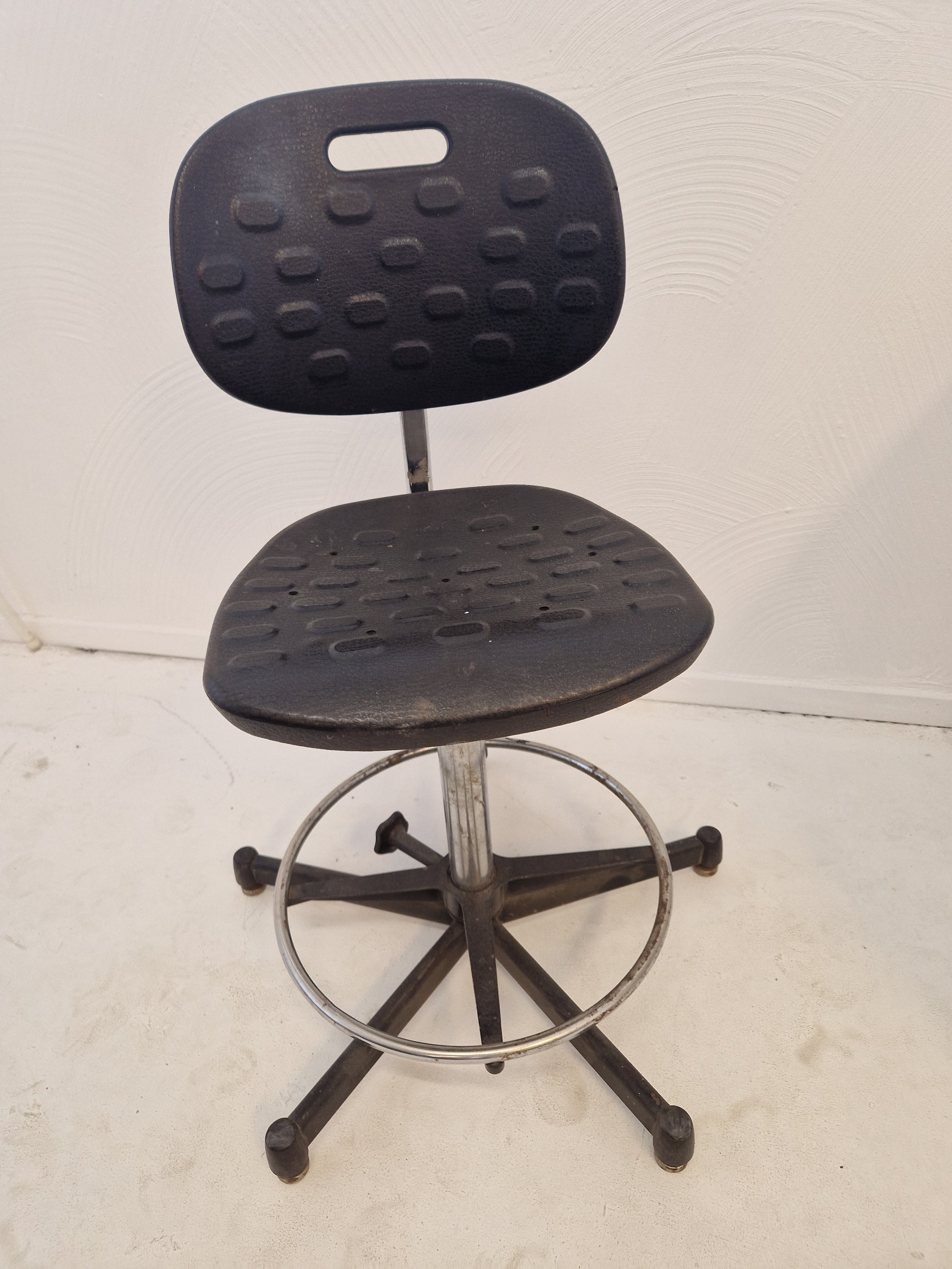 Stabil verkstadsstol som har lägsta sitthöjd på ca 55cm och högsta sitthöjd på ca 80cm. Steglöst justerbar däremellan.